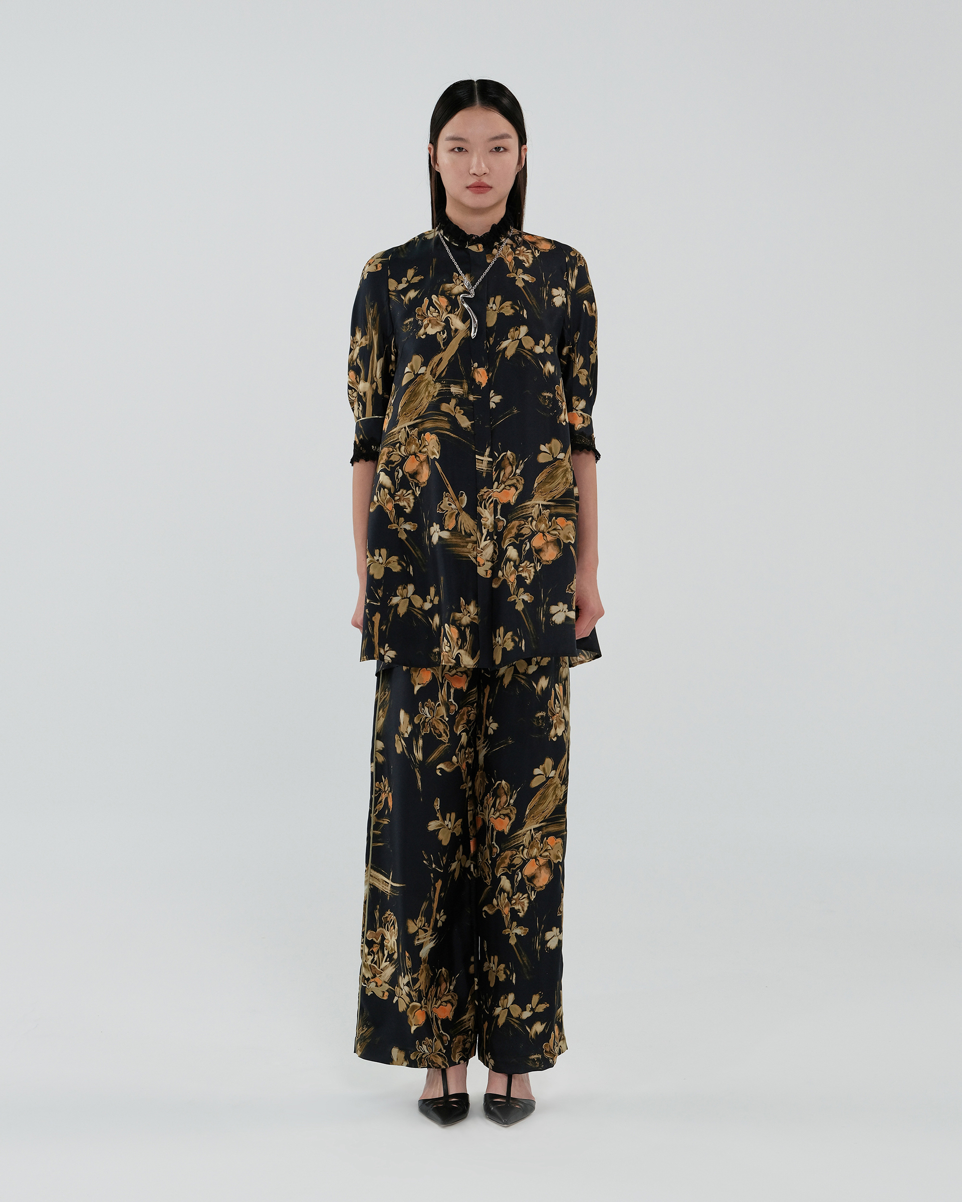 Crafted from 100% mulberry silk, this piece features the season's opening print with a floral imagery. Pair it with the top from the same collection for daily styling.