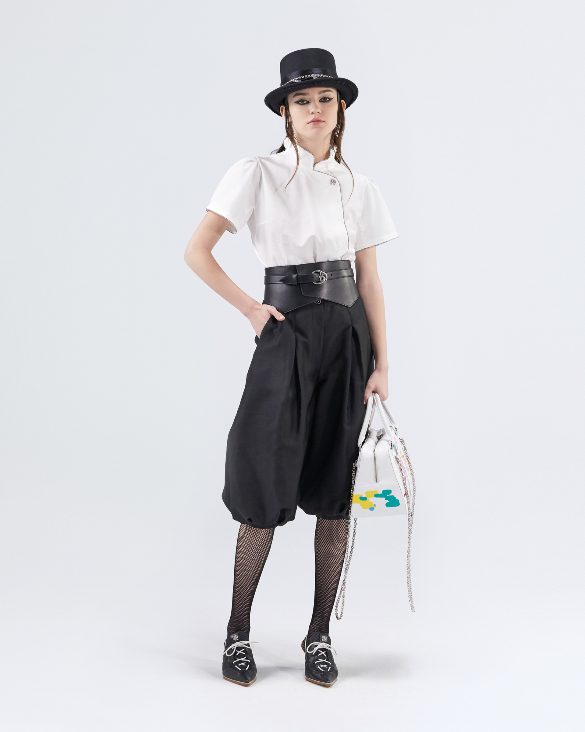 These bloomers are made of jacquard fabric, and the special bloomers not only faithfully present the circus atmosphere of this season, but also have a shrunken fit and eight-point length to define the leg line, making them a good match for spring and summer.