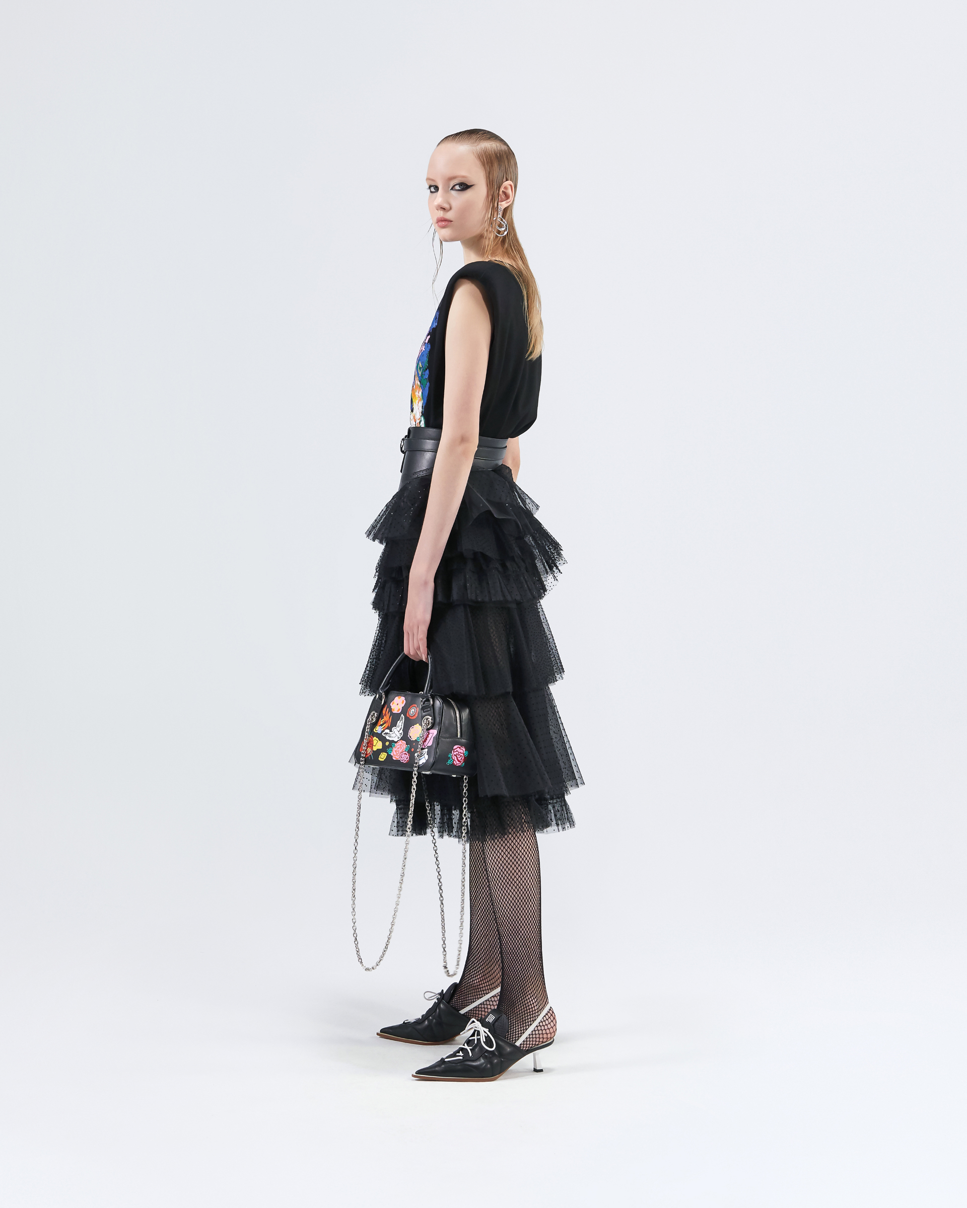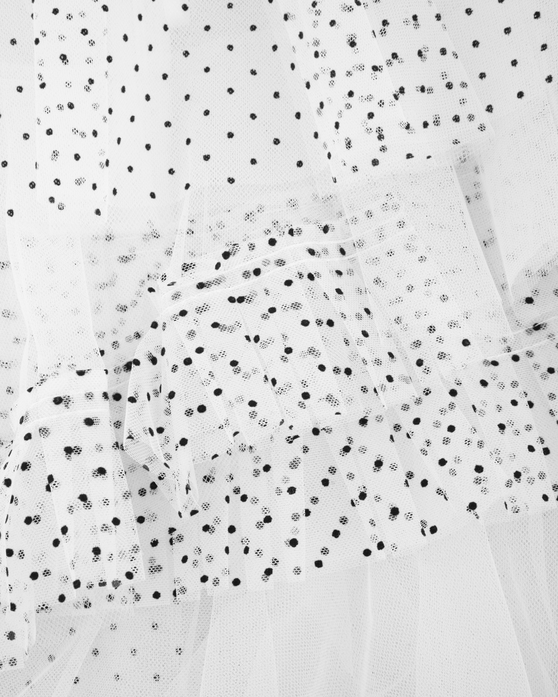 This polka dot irregular multi-level gauze skirt is presented in a classic A-line fit and black gray two-tone combination, in addition to showing the beautiful figure of women, it also has the self-personality that modern consumers pursue, and in addition to showing this season's 'playful' theme, it also brings a modern and practical look.