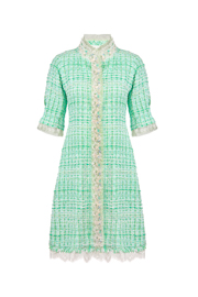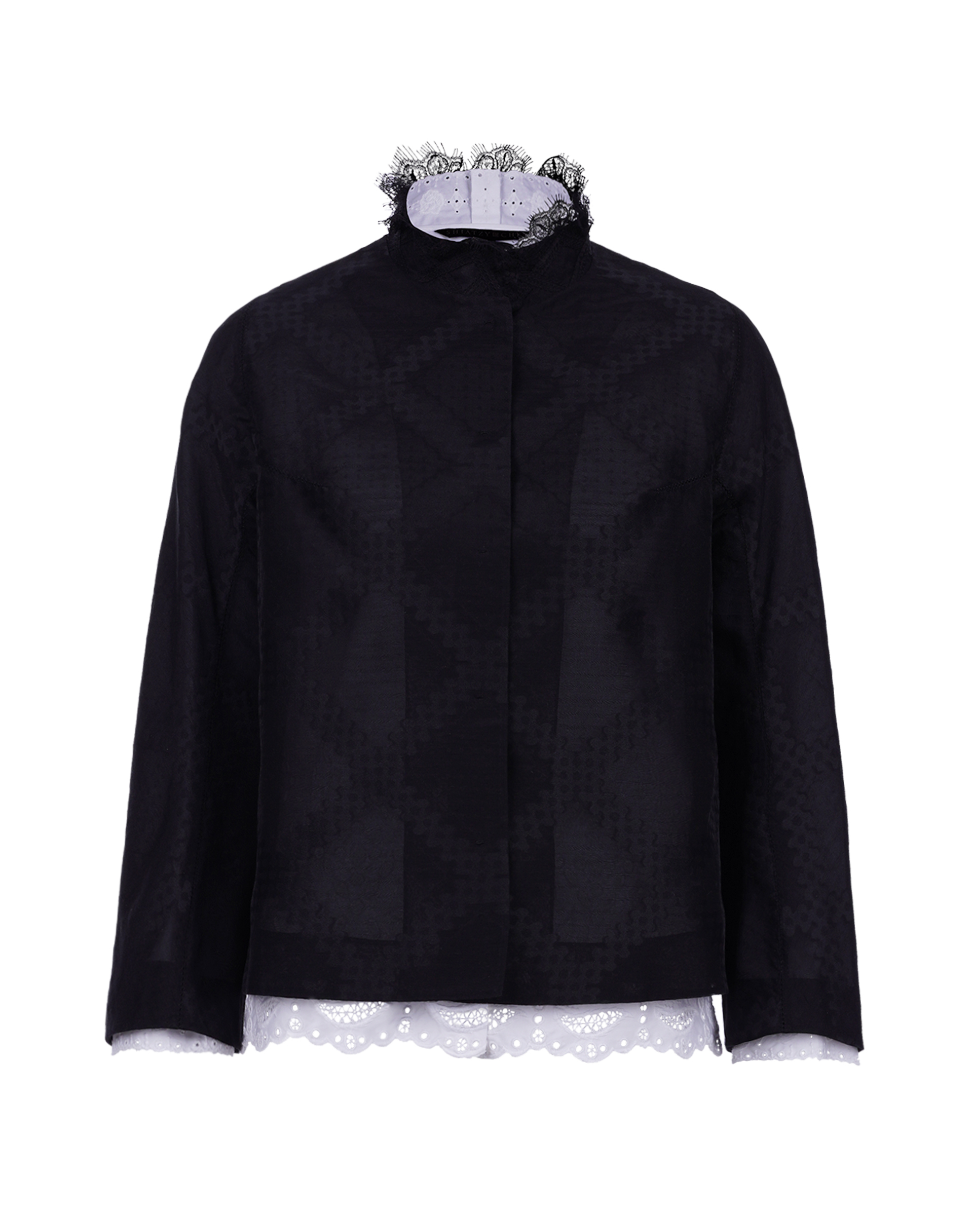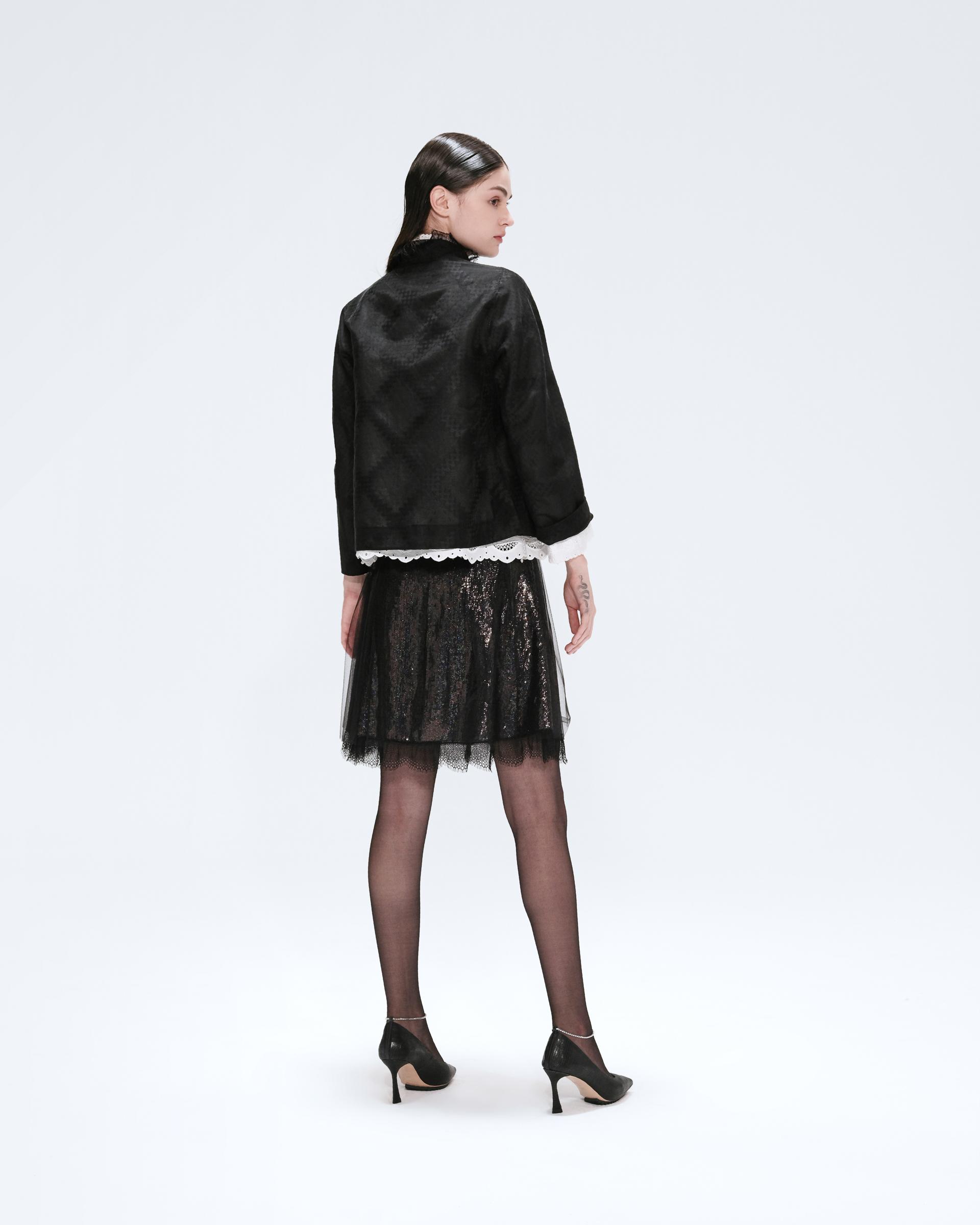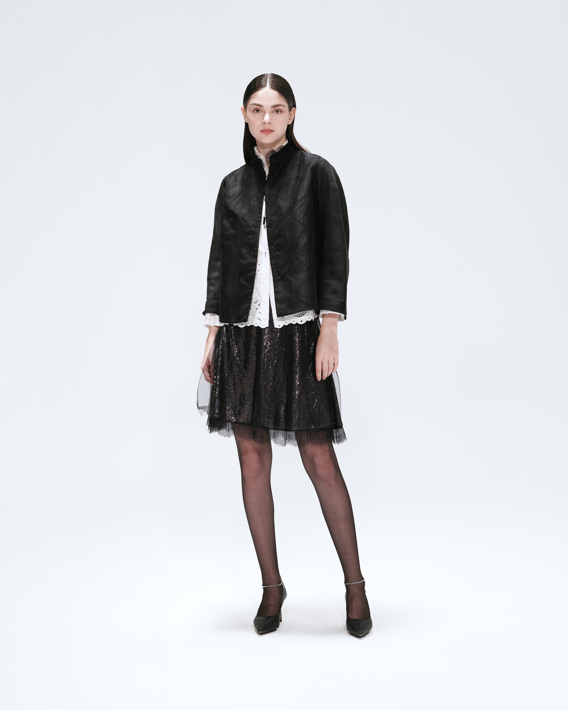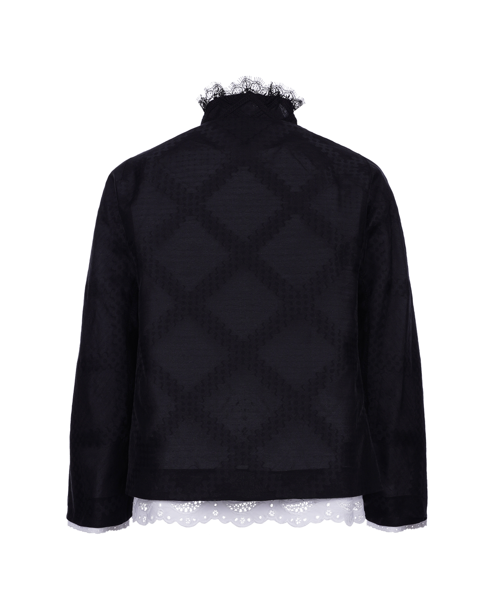 This jacket set is made with cotton blend technology, the design of lace collar again with classic mandarin style fabric, the exquisite craft that mandarin and western union combines, it is the good choice in early autumn collocation.