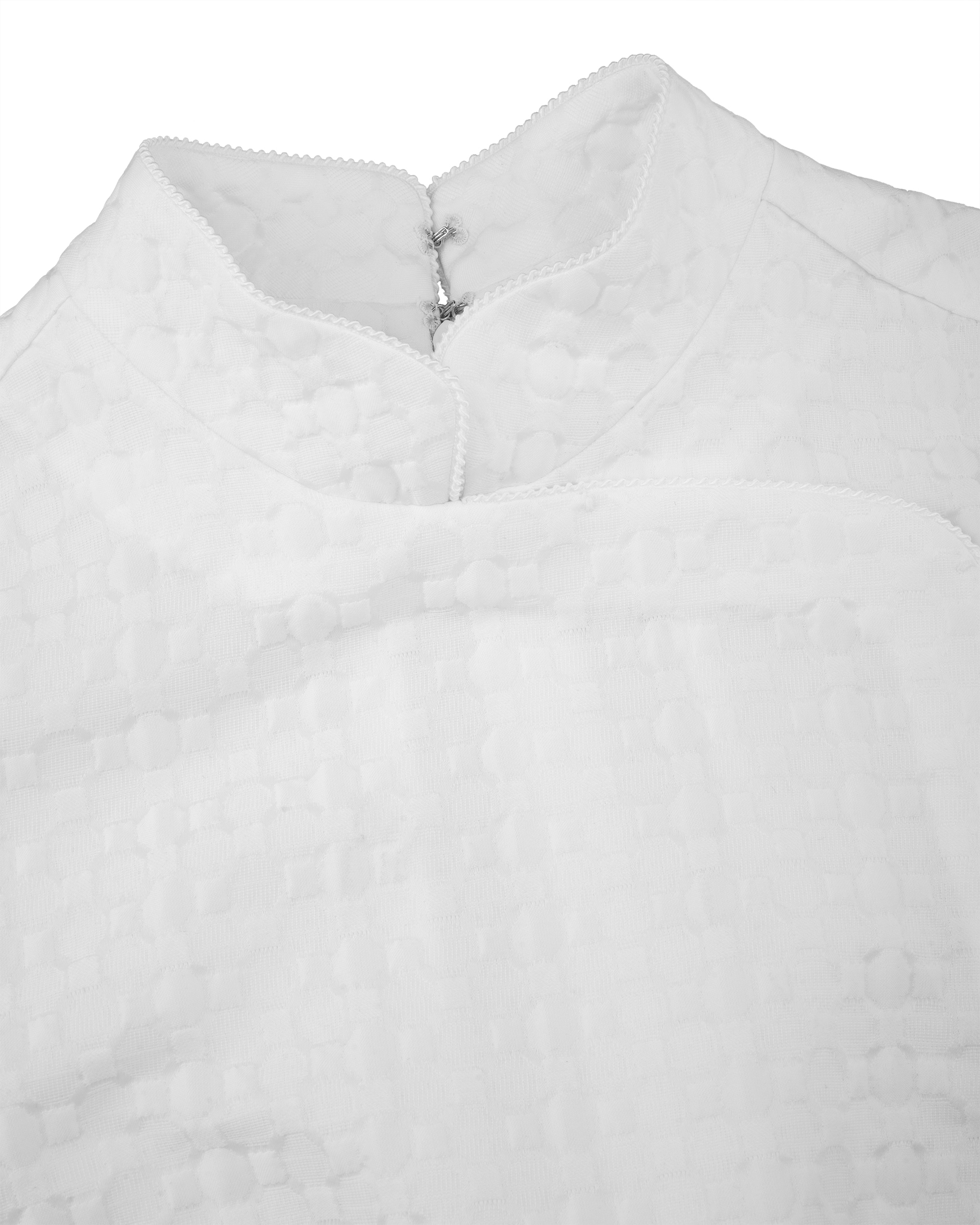 This dress is from the 22PF reminscence collection. The classic mandarin stand collar is paired with a slim A-line version, without too many pendants, and it is simple and self-cultivating. It is a simple and versatile item in the wardrobe.