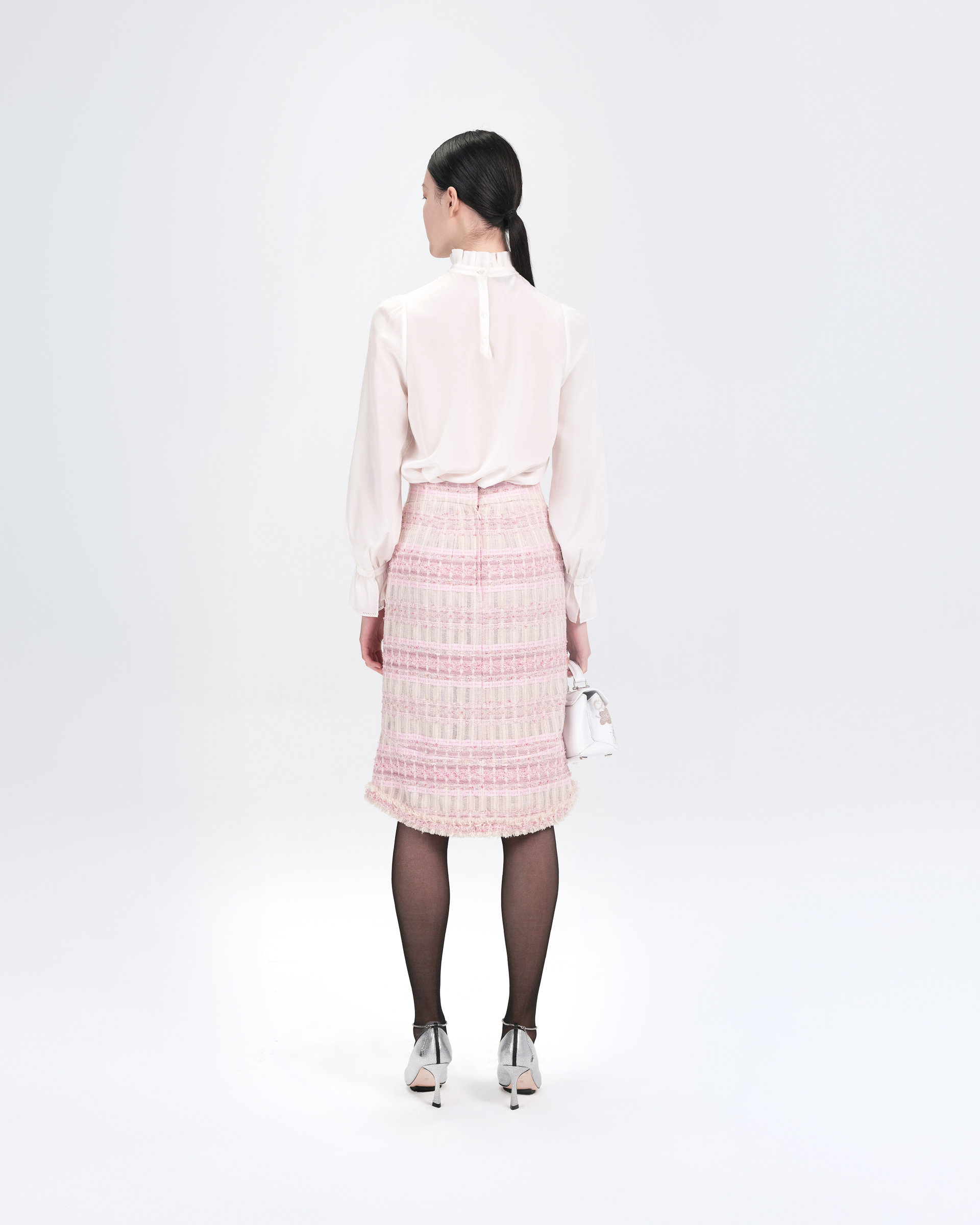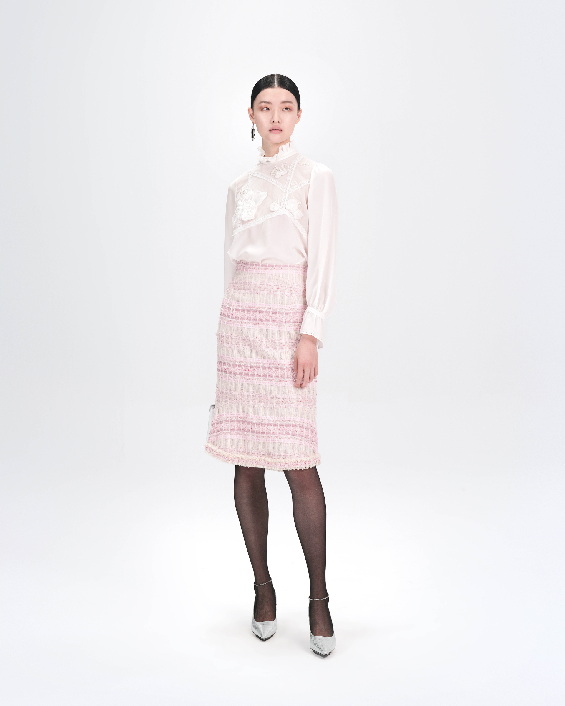 With the body as the carrier, it shows the pluralism of modern fashion by freely changing the personal temperament of clothing. In this series, the mixed yarn single with tannic appearance, in which the sexual design is all under the other feminine materials to show the elegant with a strange temperament, brings another style to the whole series. It is recommended to pair with the same coat in this series to present a neat female style.