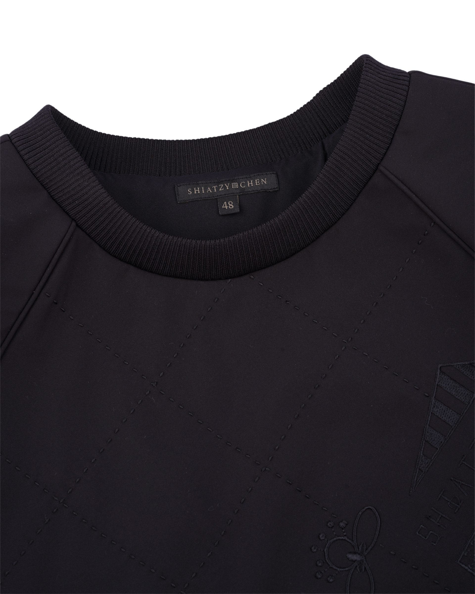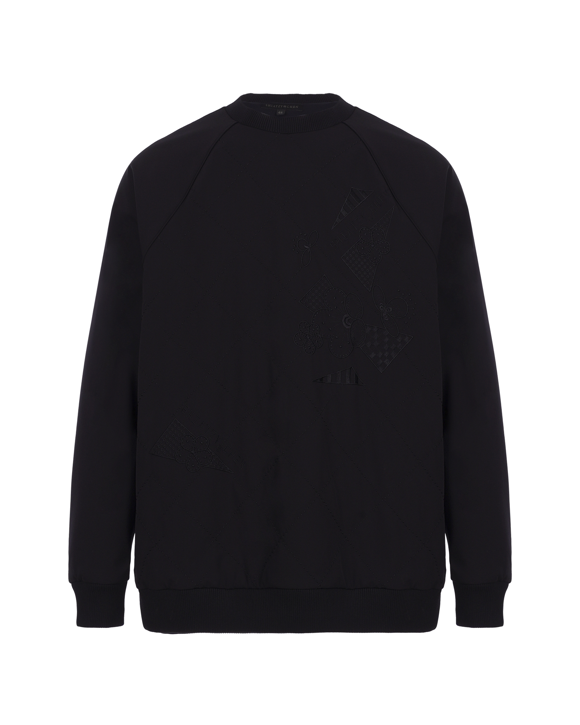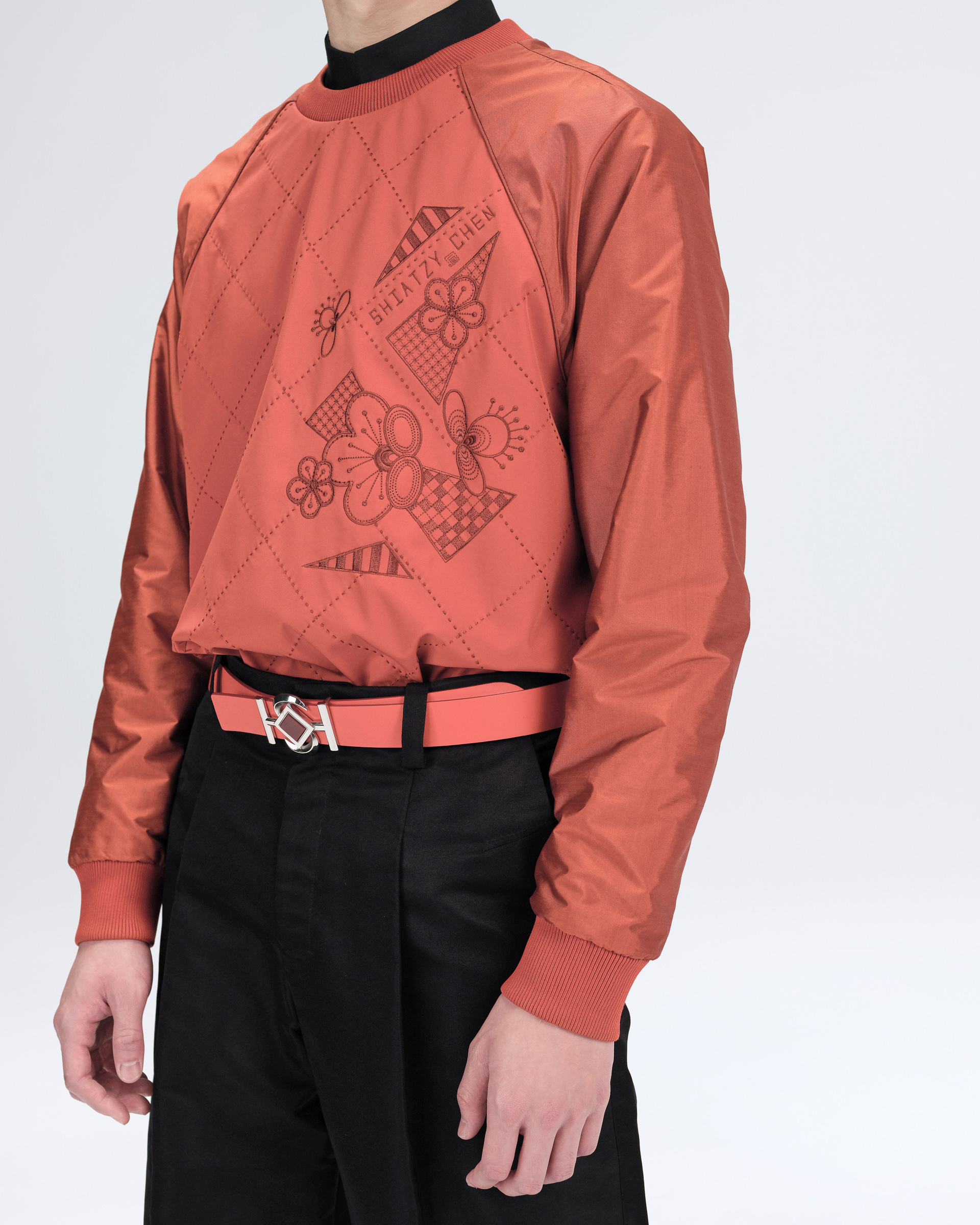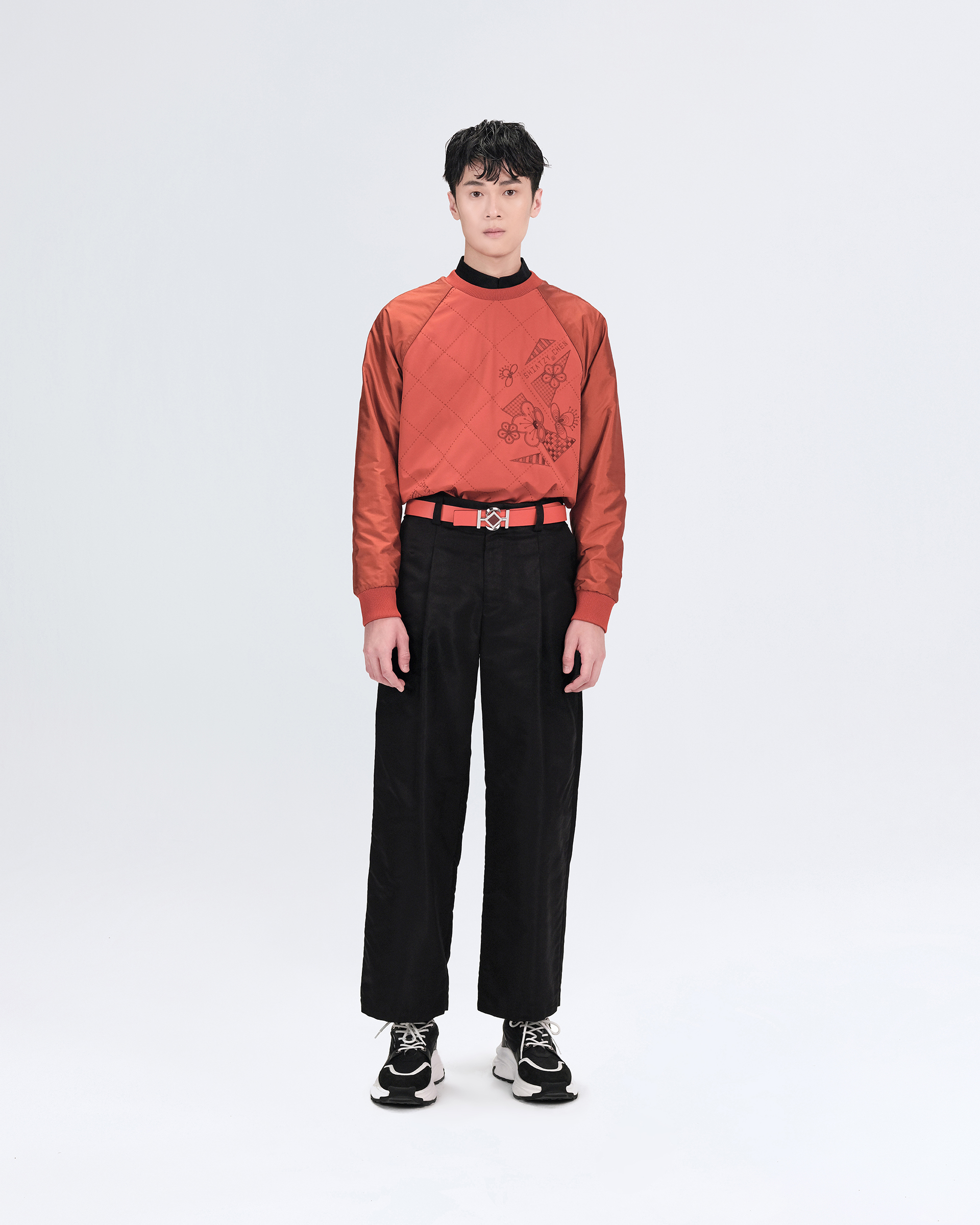 This hoody is one of the men's individual street collection this season. The collocation of different materials, the use of totems, the overall proportion and the contrast of light and dark under the straight cylinder contour of real wear show the street vitality stirring under the temperament of literati. Made in soft cotton and knit jacquard, this hoodie is recommended with black satin cotton trousers for an indefinable cross between classic and modern.
