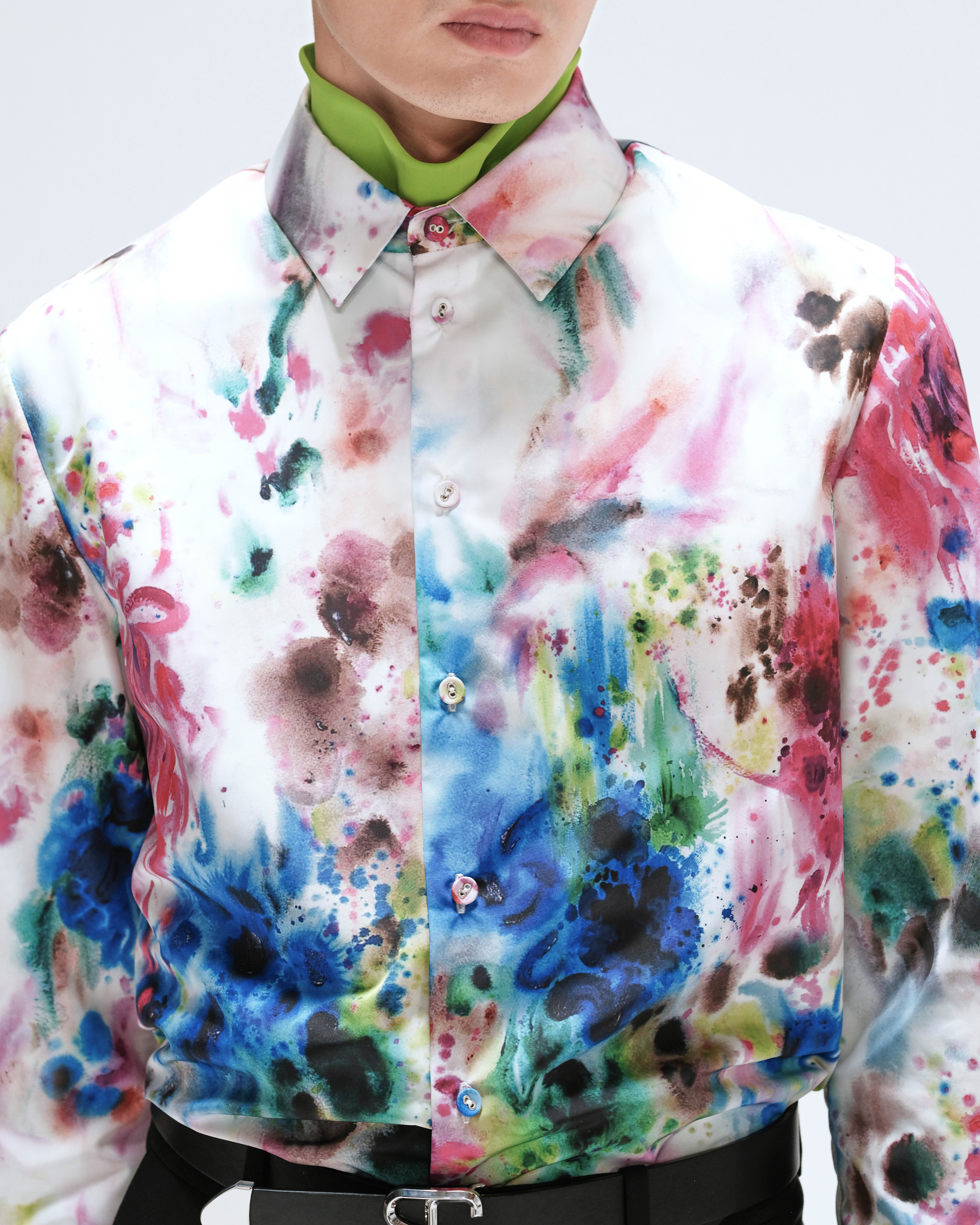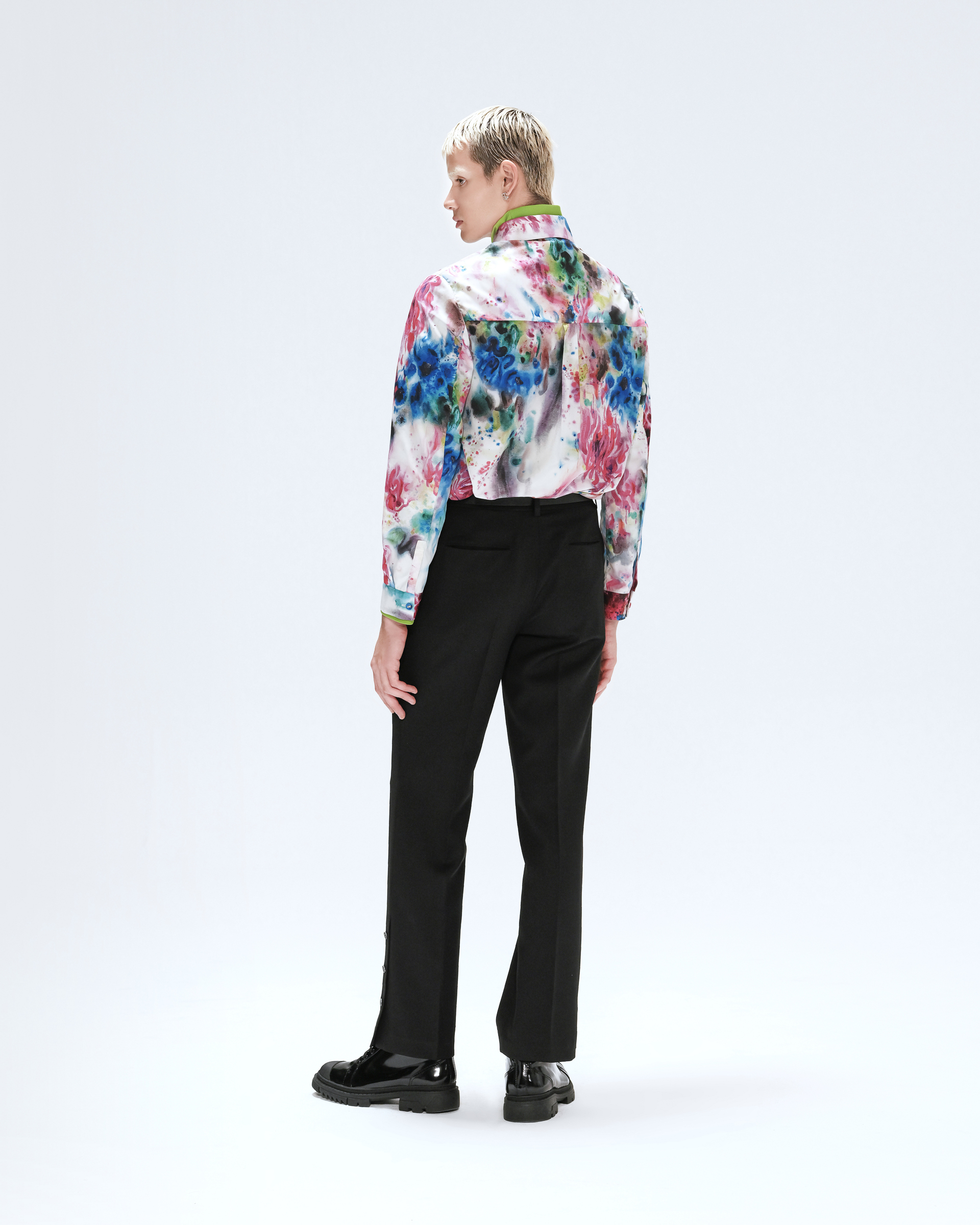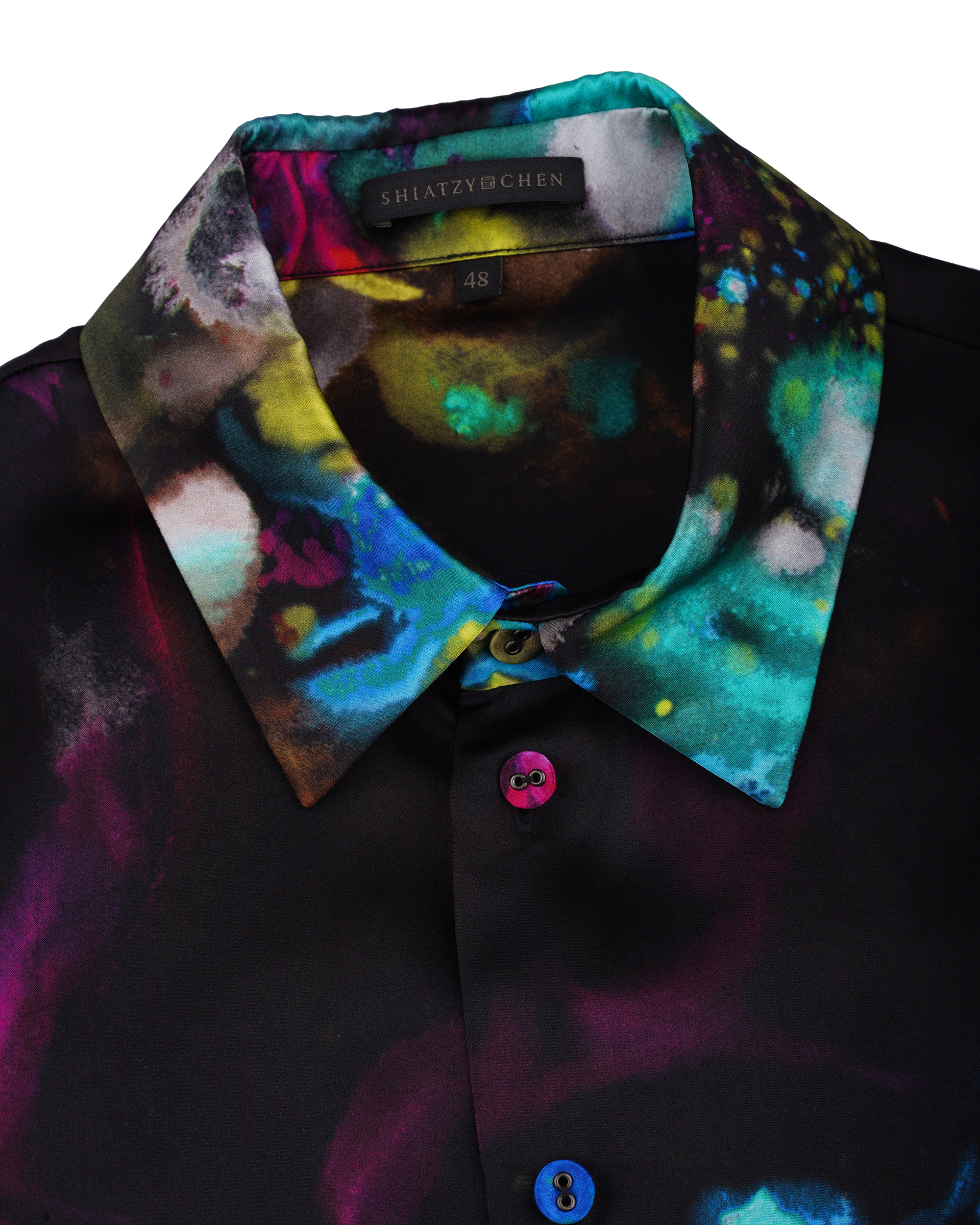 The centerpiece of this season's 'GENISIS' theme is to continue the past, connect the future and create the present. The idea is to use classic shapes and special fabrics to create well-designed pieces for the modern man's wardrobe. The SHIATZYCHEN's signature sleeve version combined with a stiff fabric, create a sense of moist, and do not lose a sharp straight cylinder outline. This silk shirt is designed with an open layout and full print, which breaks through the inherent literati style of the brand and brings a youthful atmosphere like a strong color explosion.