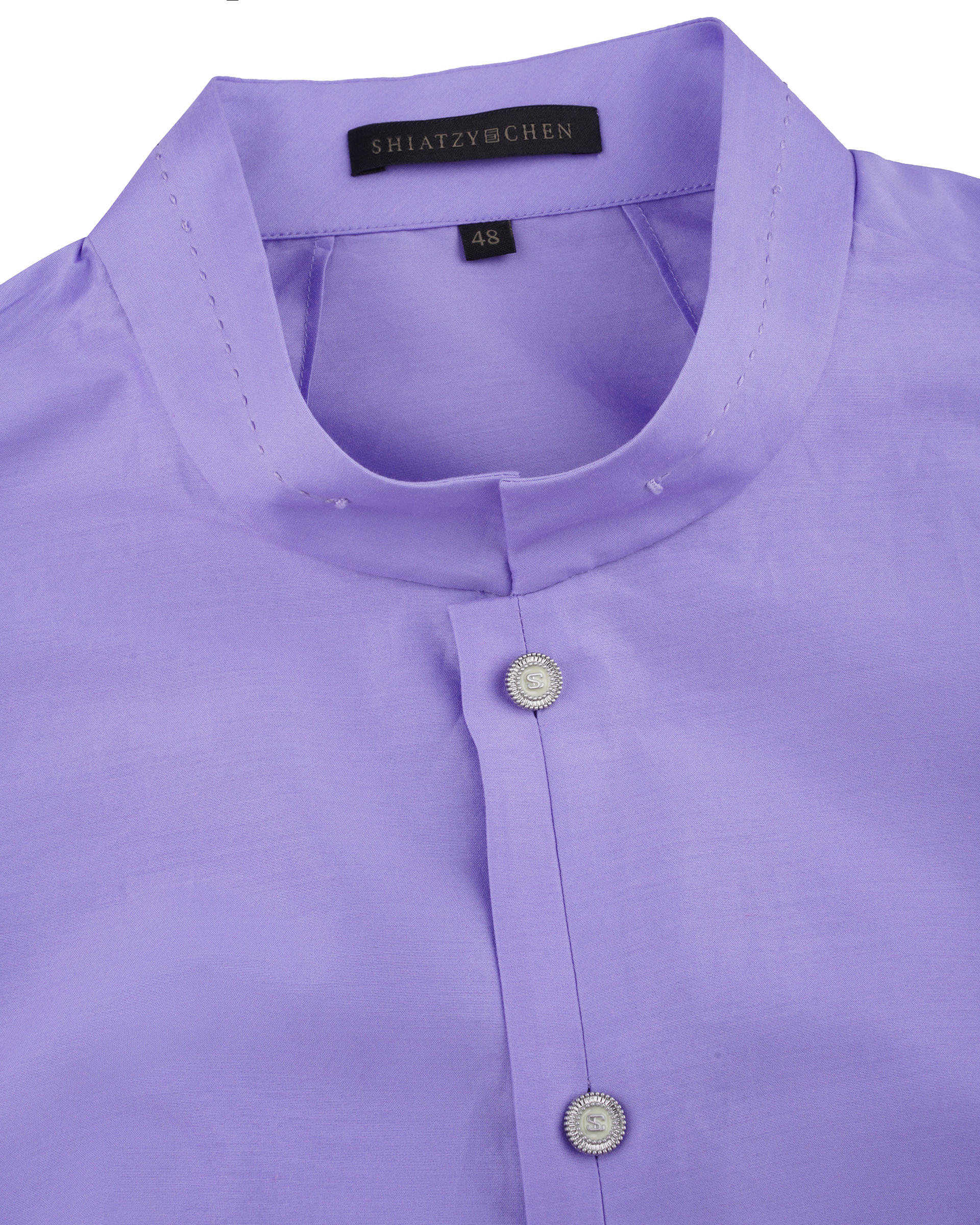This shirt with the classic mandarin collar design and simple appearance modeling, in the vision to create a mature and capable feeling. 100% cotton fabric makes comfortable to wear,is the wardrobe of the four seasons to match the single item. The shirt is available in black, purple and khaki.