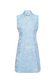 This jacket is made of classic multicolor woolen fabric, embellished with tiny silver sequins, and layered lace instead of heavy collar pieces. It can be matched with the same series of bottom clothes to create a simple commuting spring style.