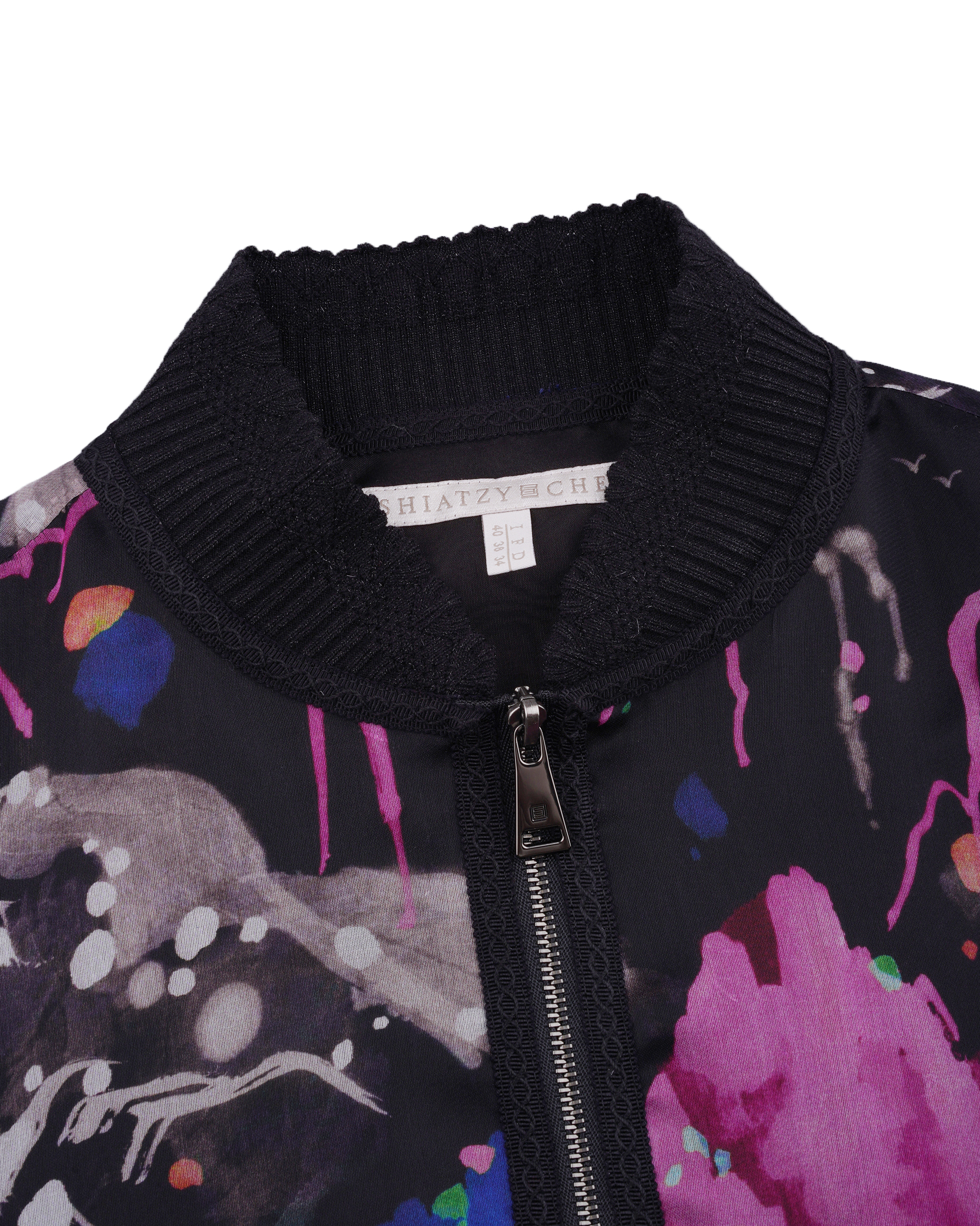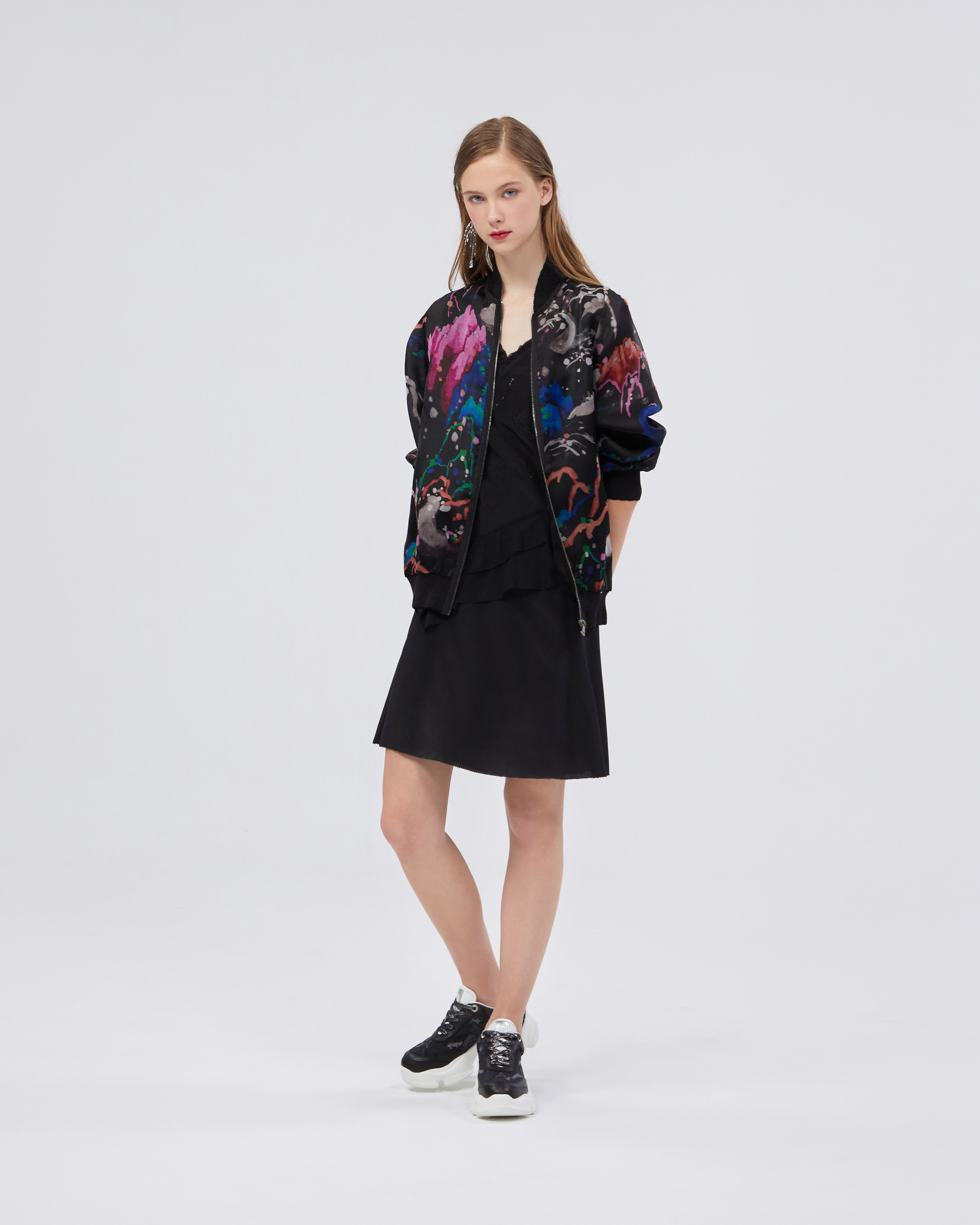 This jacket is made of 100% silk fabric, a cozy and soft fabric paired with this season's open-print pattern, presenting a literati ethos in a lively way. The color print is paired with the straight cut for a casual silhouette.