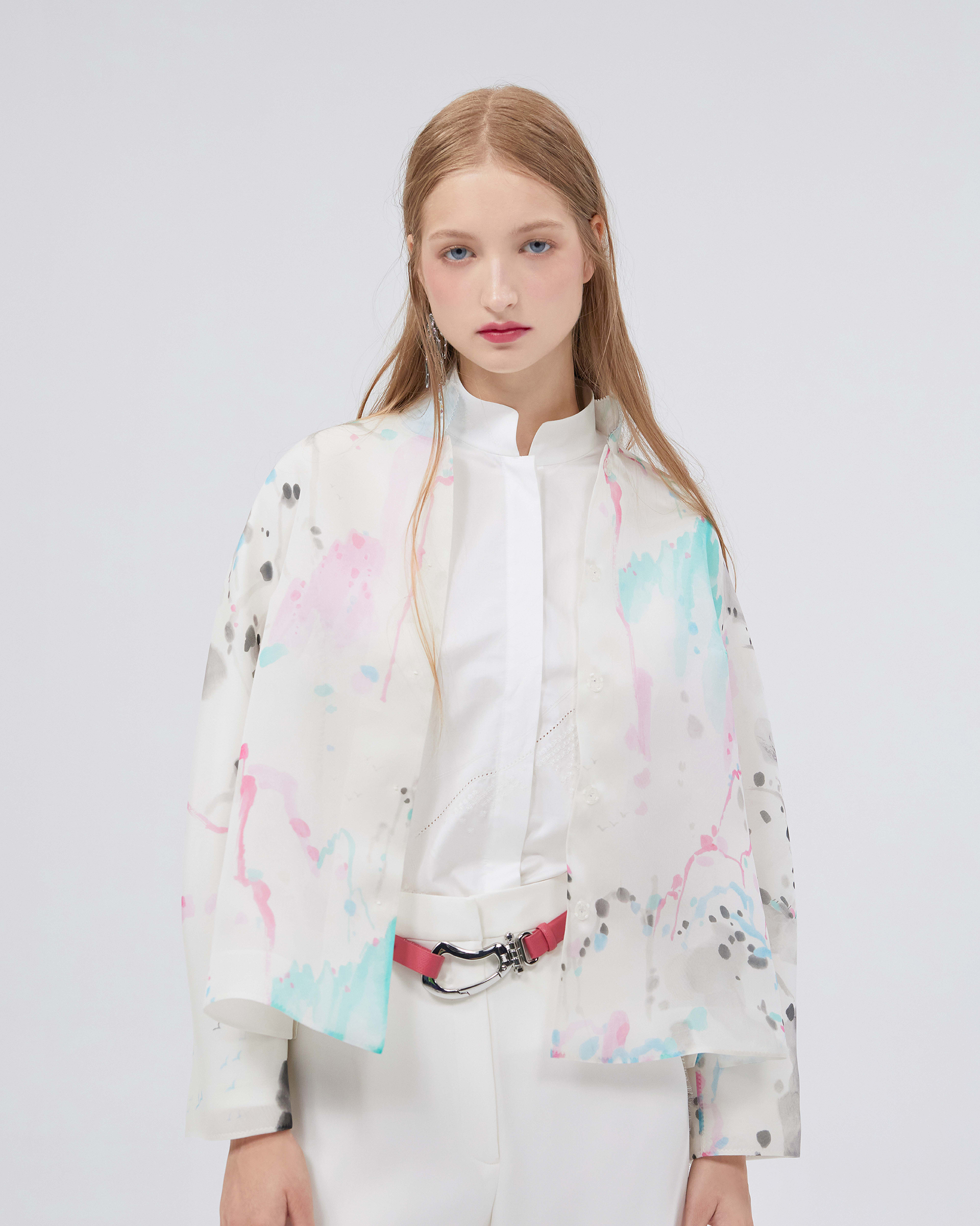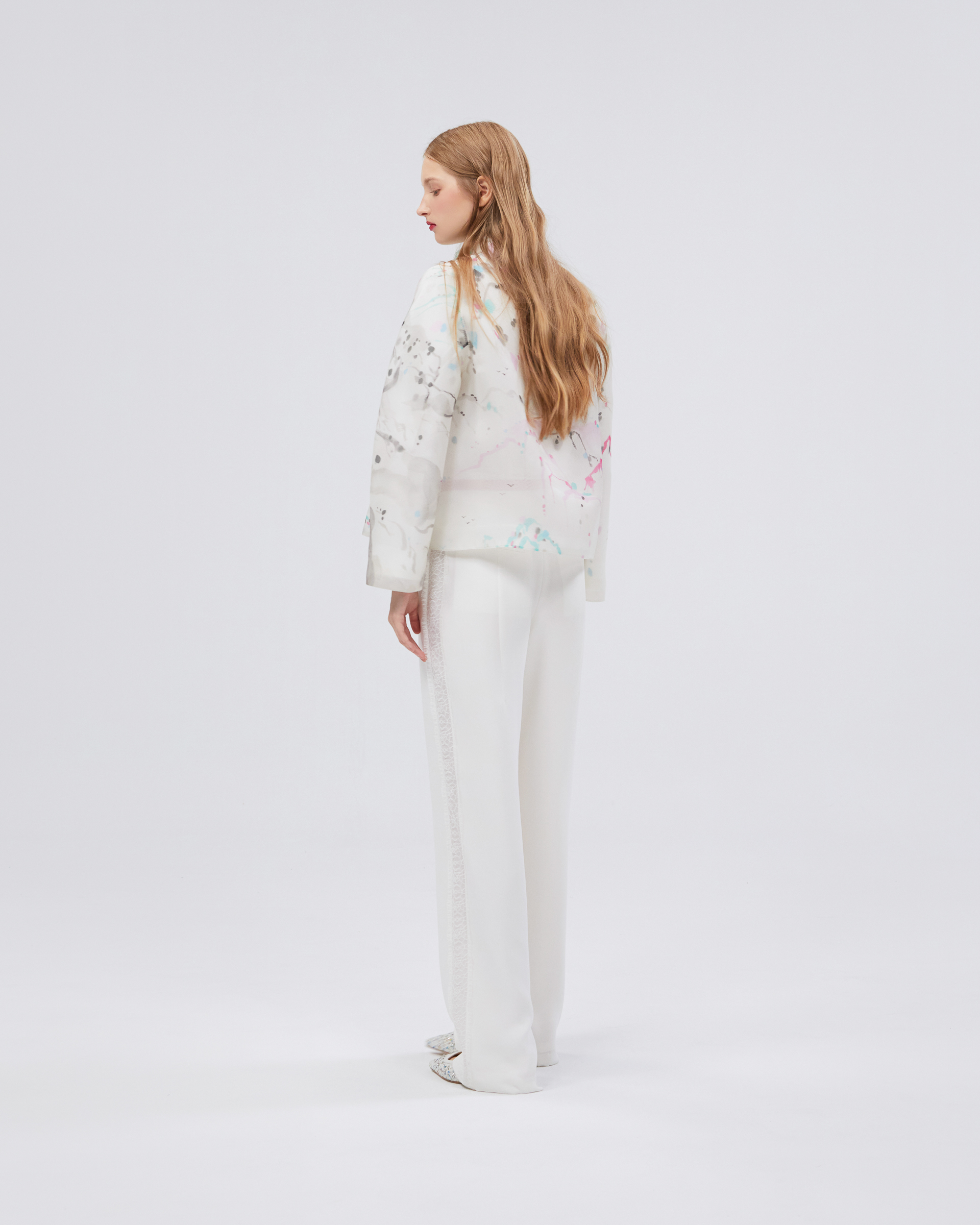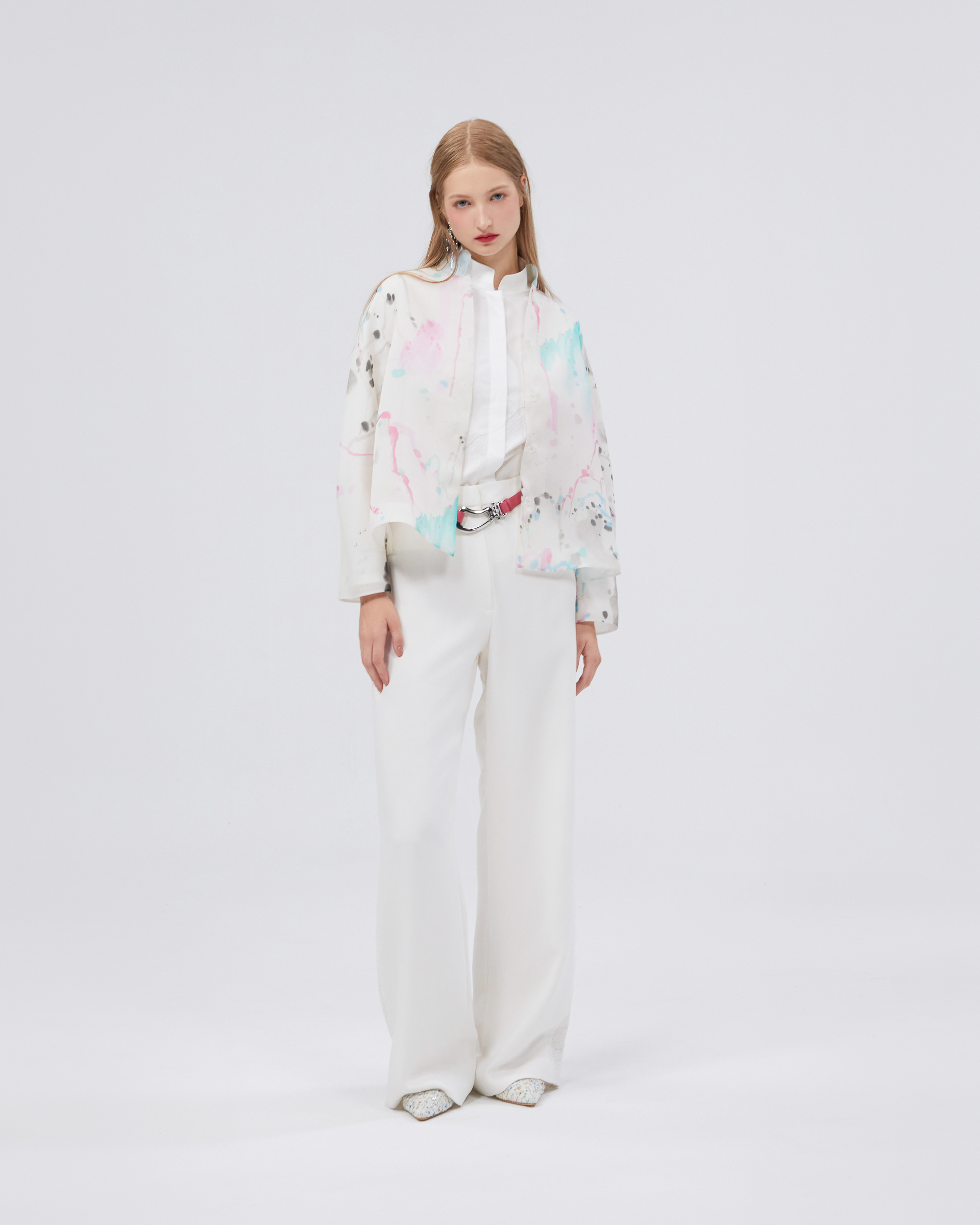 The jacket of this set is made of 100% silk fabric, a cozy and soft fabric paired with this season's open-print pattern, presenting a literati ethos in a lively way. The color print is paired with the straight cut for a casual silhouette.