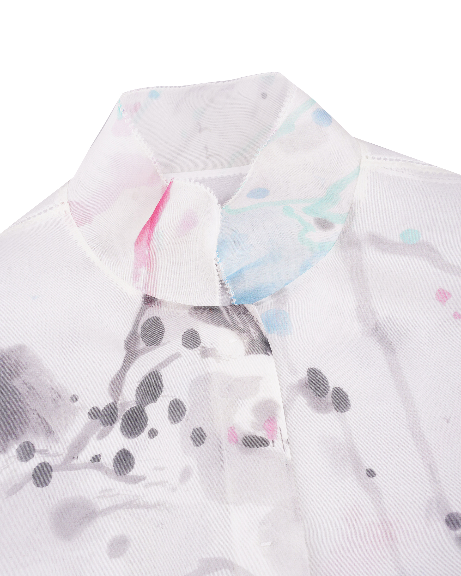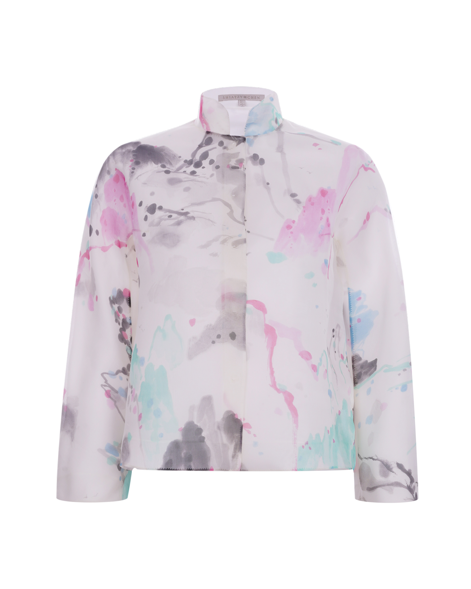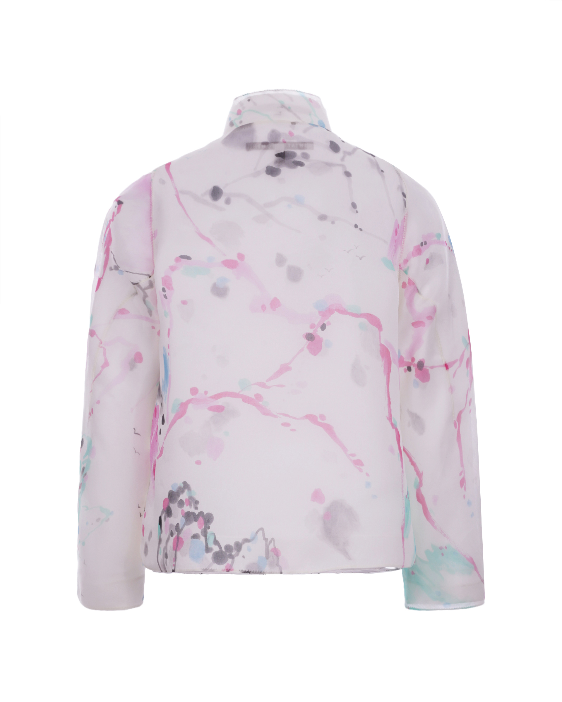 The jacket of this set is made of 100% silk fabric, a cozy and soft fabric paired with this season's open-print pattern, presenting a literati ethos in a lively way. The color print is paired with the straight cut for a casual silhouette.