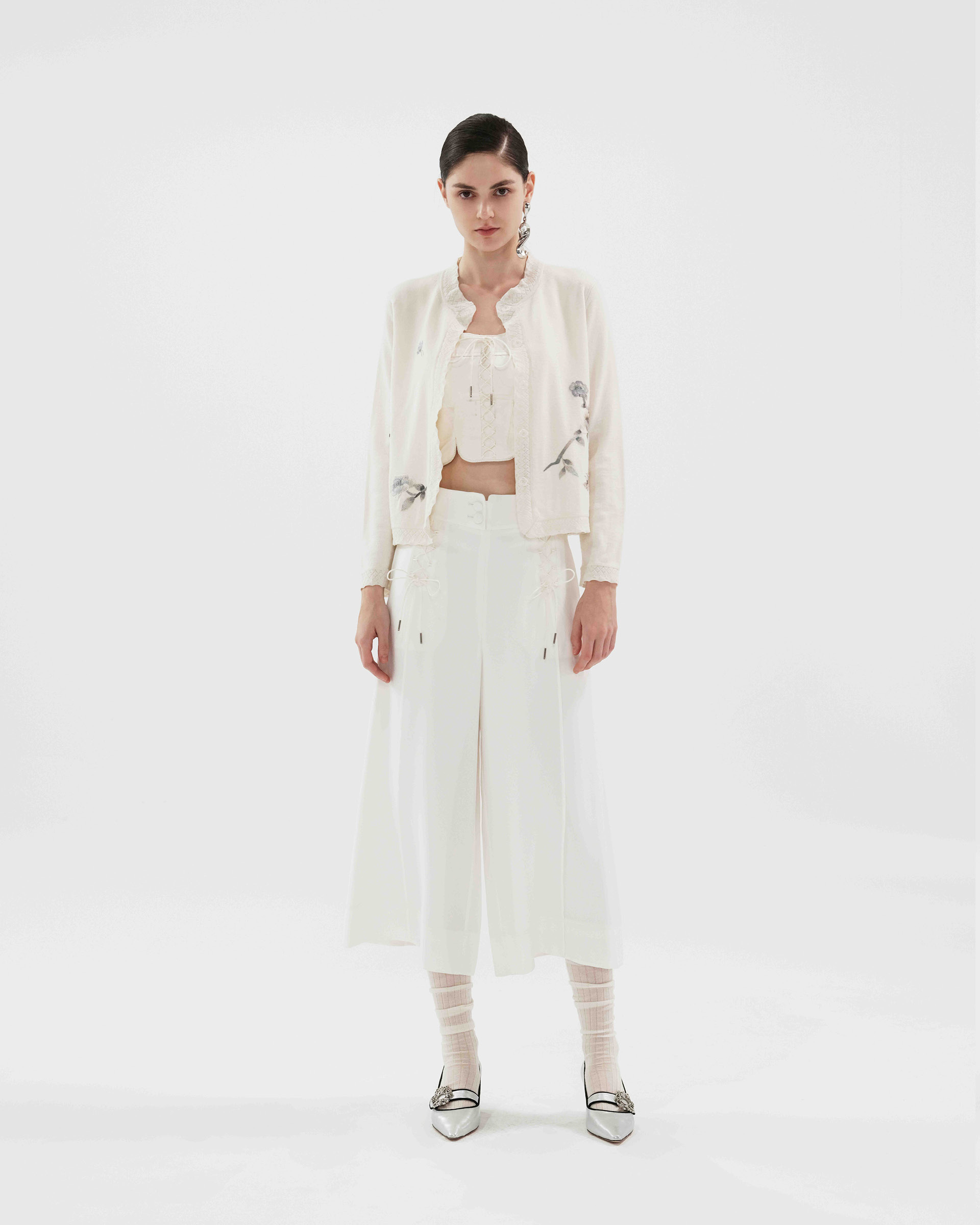 Made from a wool-blend fabric, these wide-leg pants are elegant with a smooth cut combined with lace-up details on both sides. The comfortable fabric is perfect for early fall wear and can be paired with all tops for a flawless look.