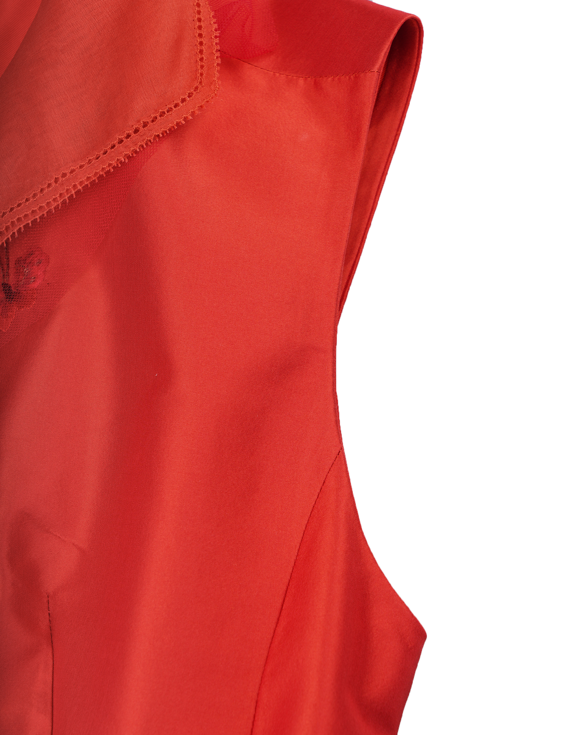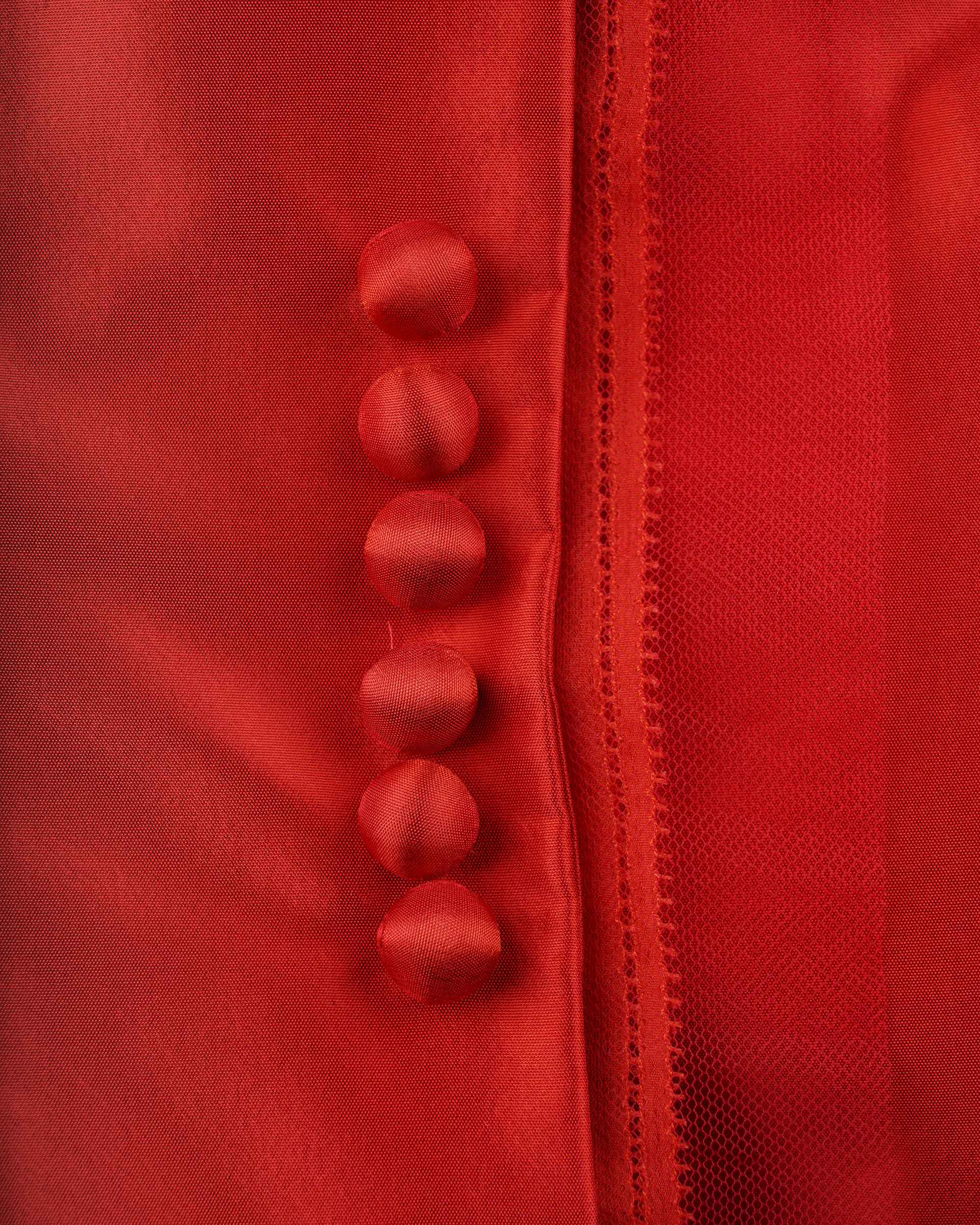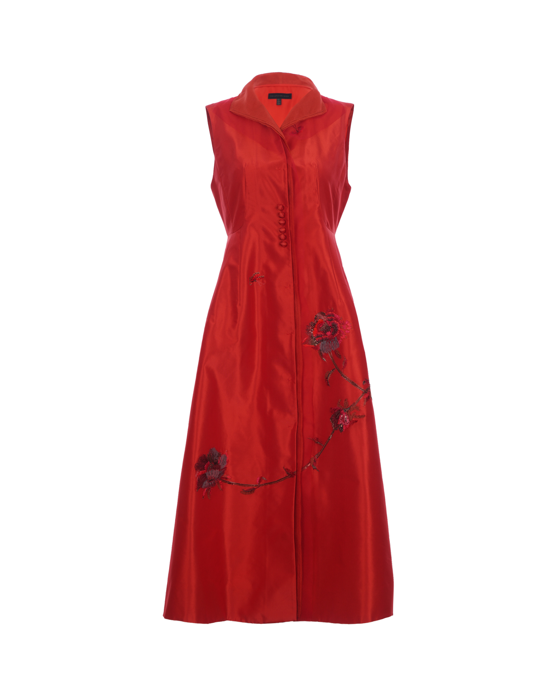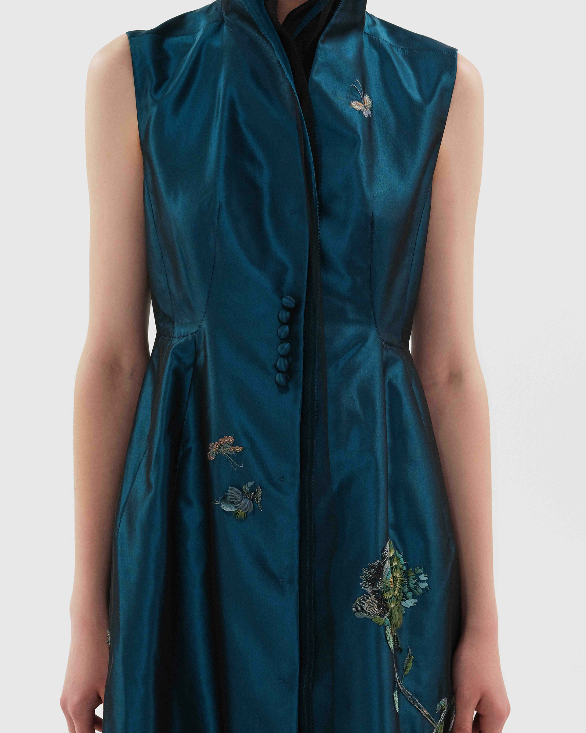 This piece is made of 100% silk, and the hand-embroidered satin series continues the fusion style of SHIATZYCHEN. In embroidery techniques, traditional flat Suzhou embroidery and French three-dimensional techniques are interleaved. In tailoring, organza and lace are used to create multi-level rich texture, creating a beautiful and elegant image.