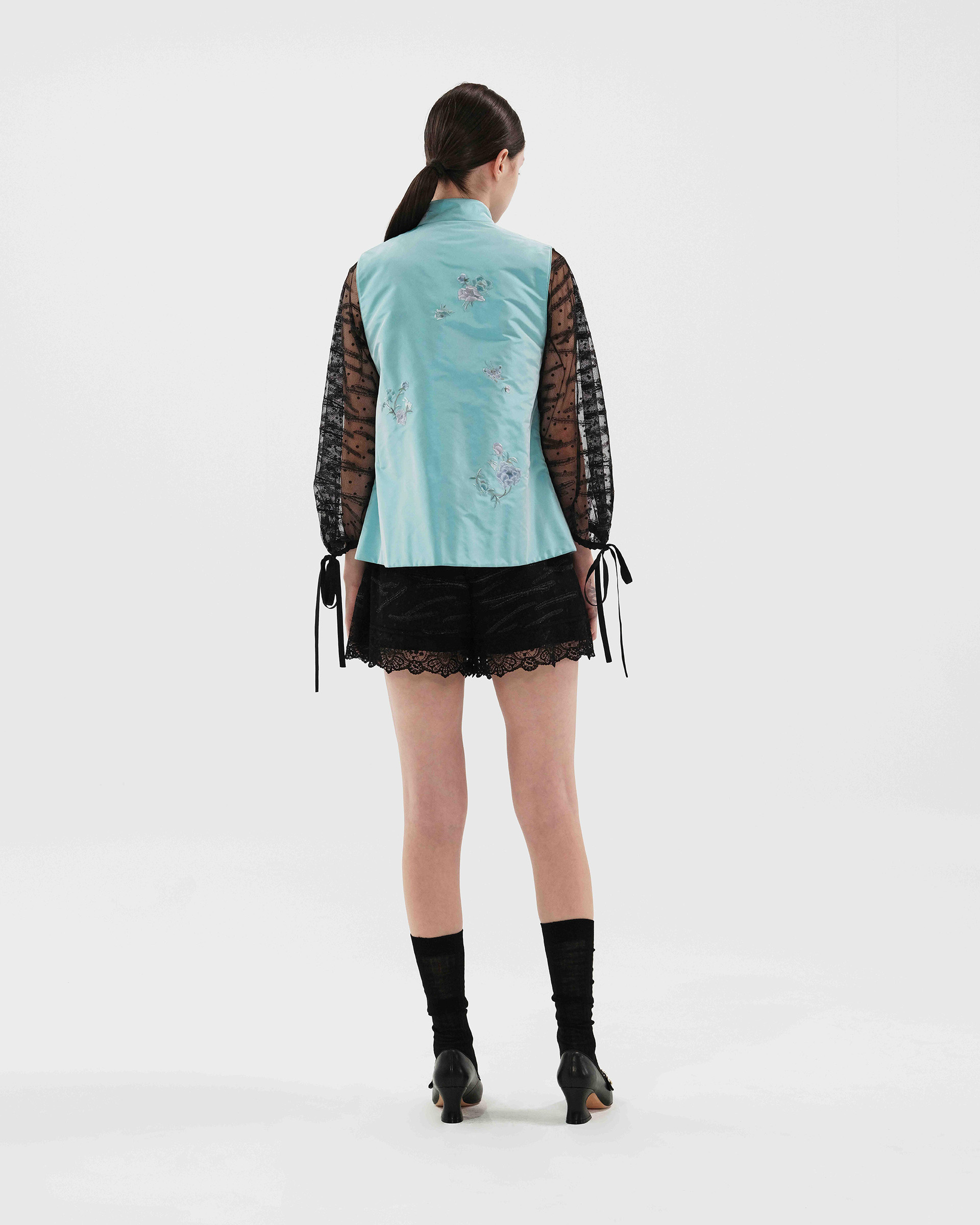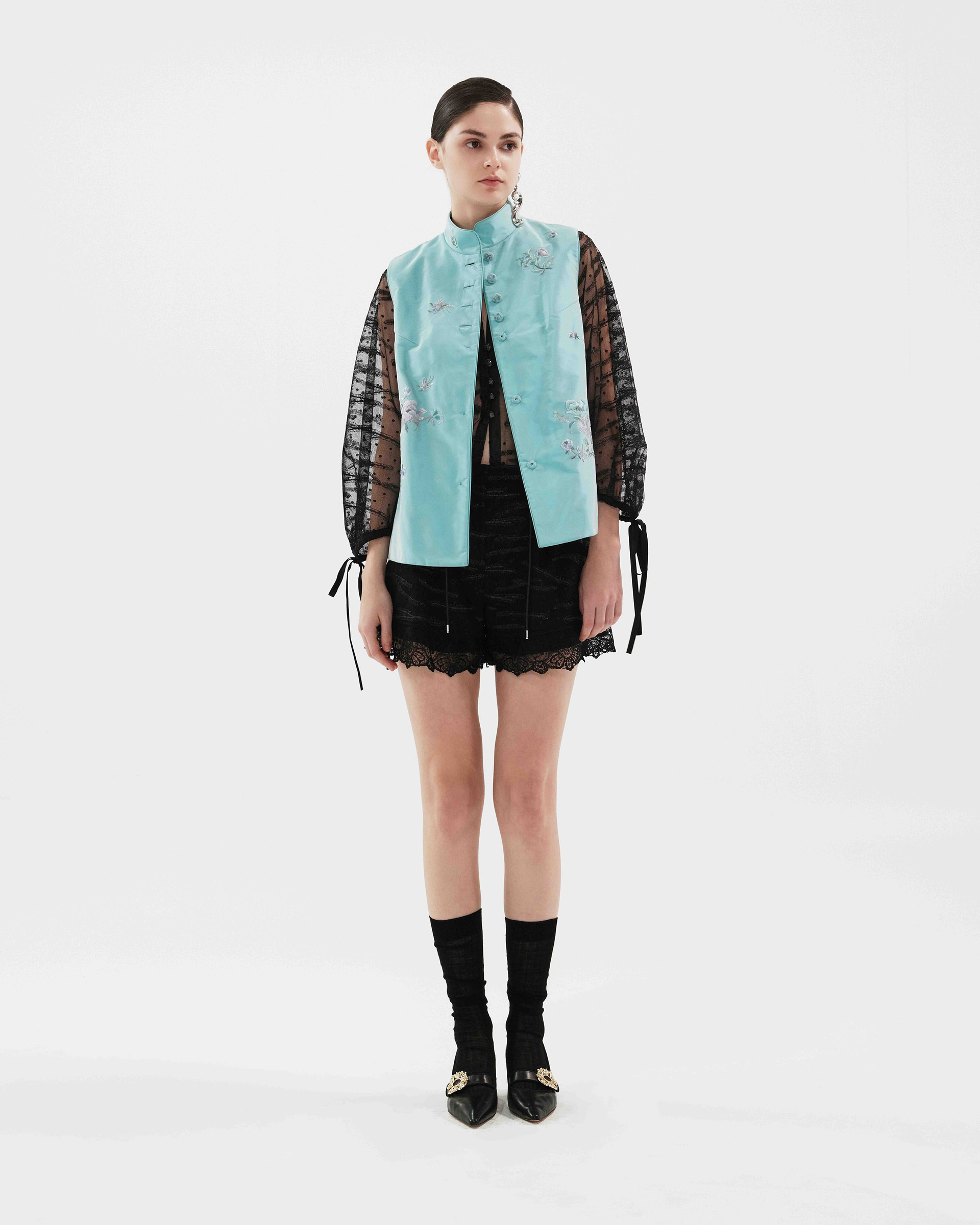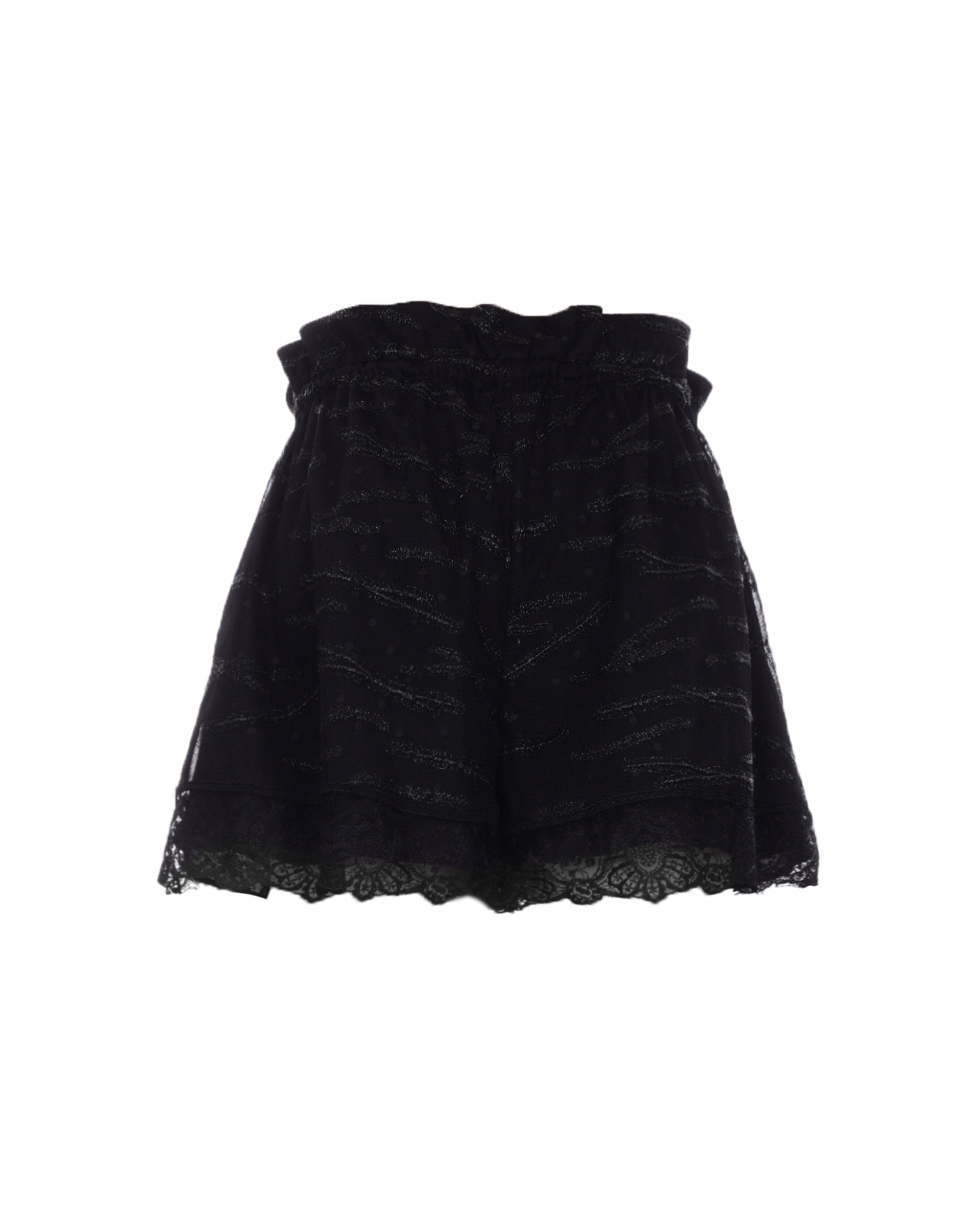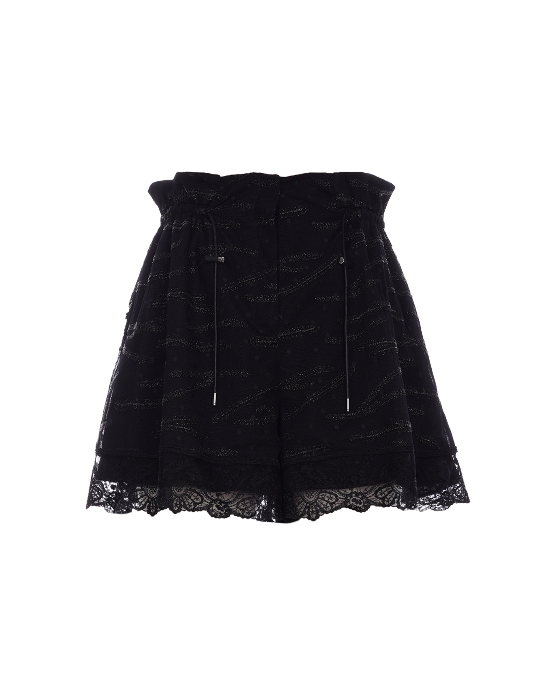 This shorts is tailored from lace. The circular finished hemline is full of feminine sense,toghther with the soft texture. This piece could add a girly flair on your late summer look.