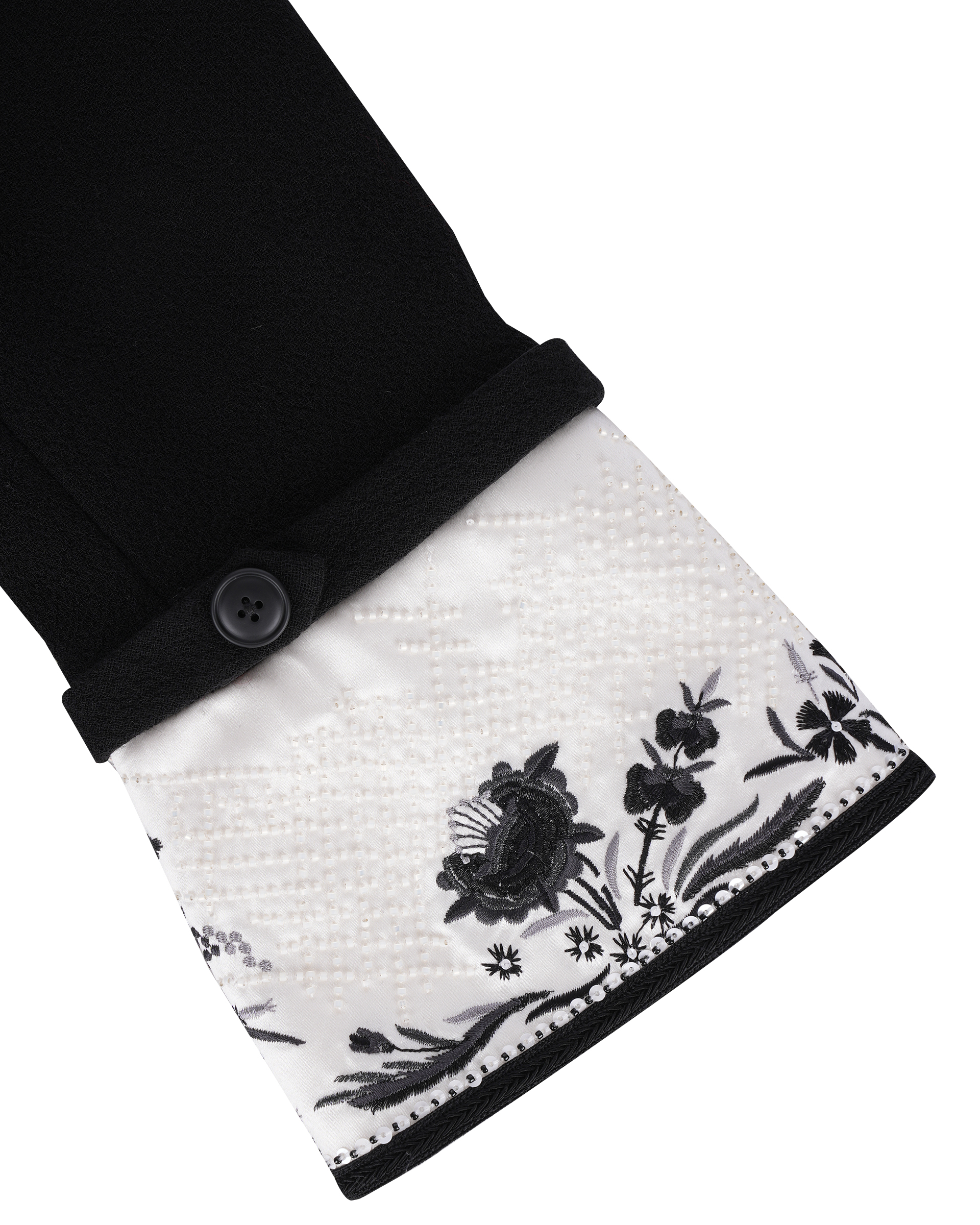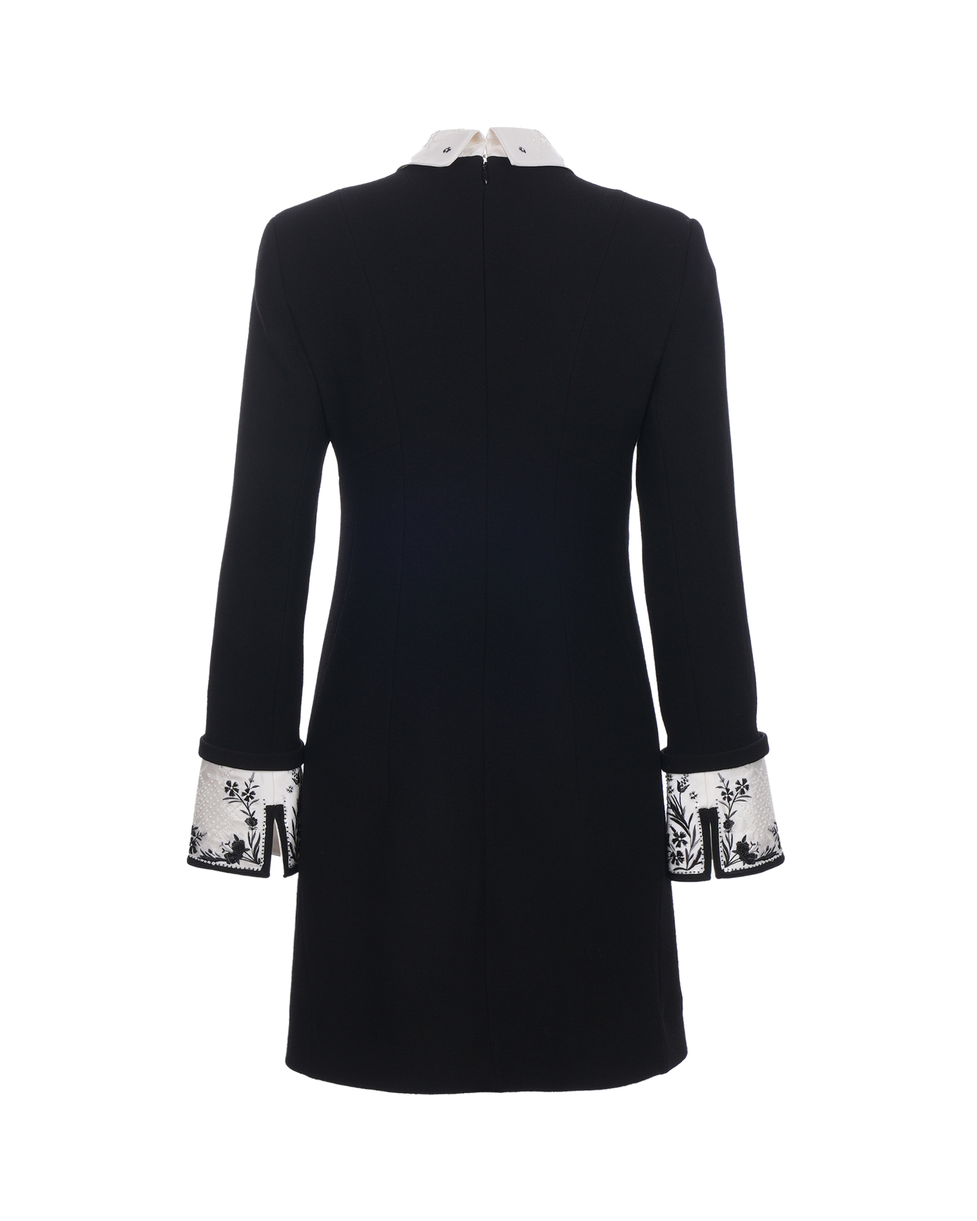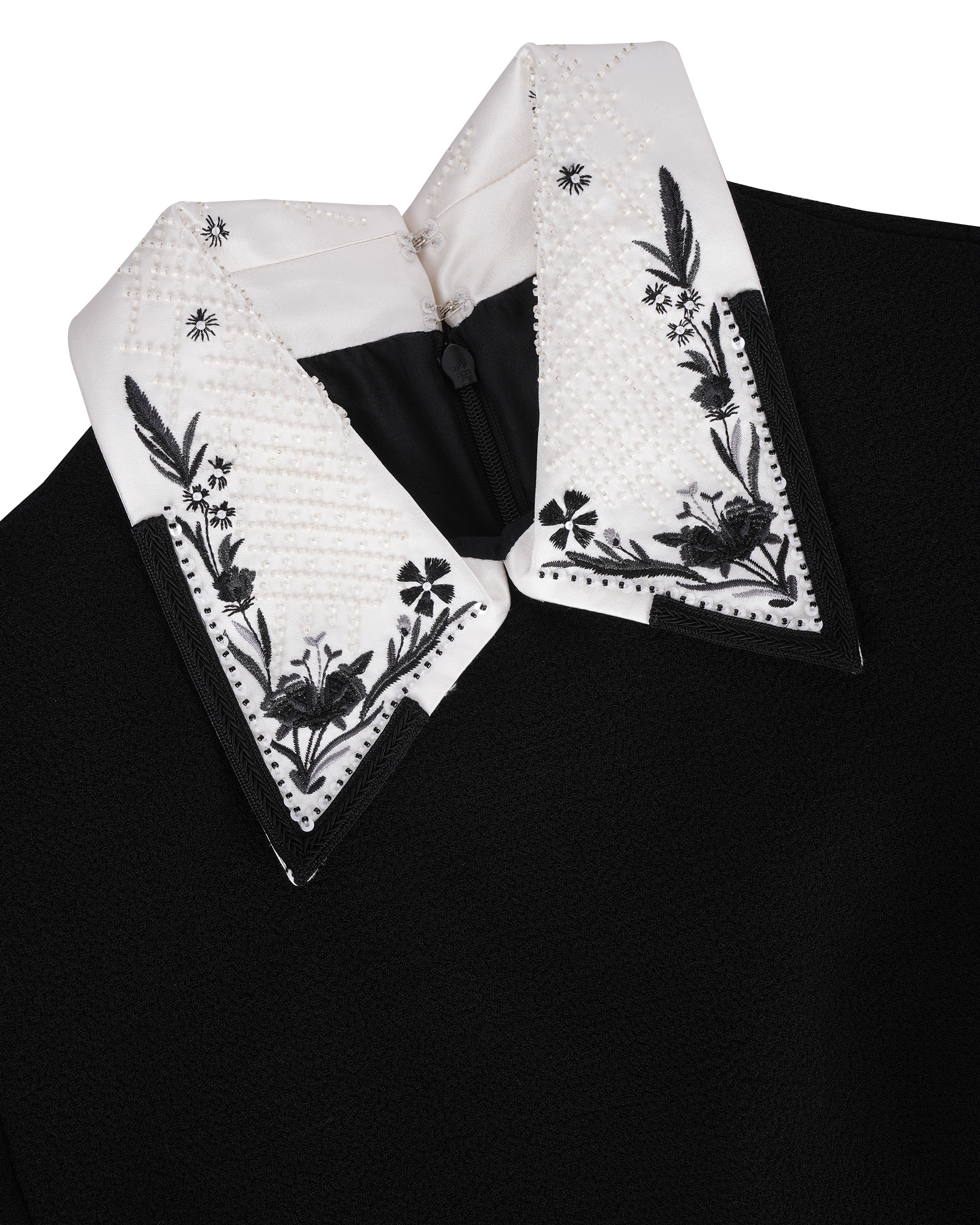 This piece is made of 100% sheep wool, the sleek silhouette presents a beautiful image, it is decorated with fine flower embroidery and three-dimensional beading, European elements and crafts combined with a nostalgic style of modern fashion.