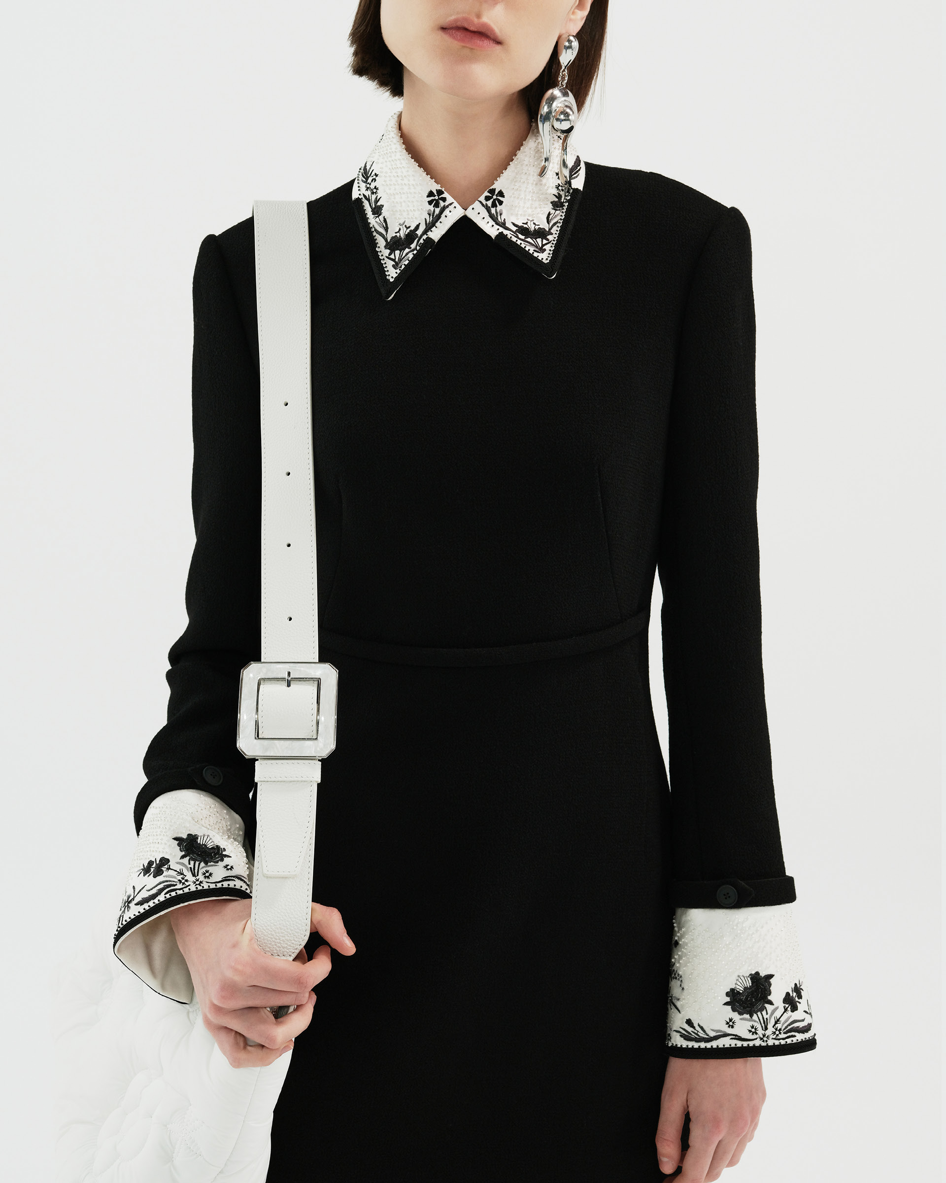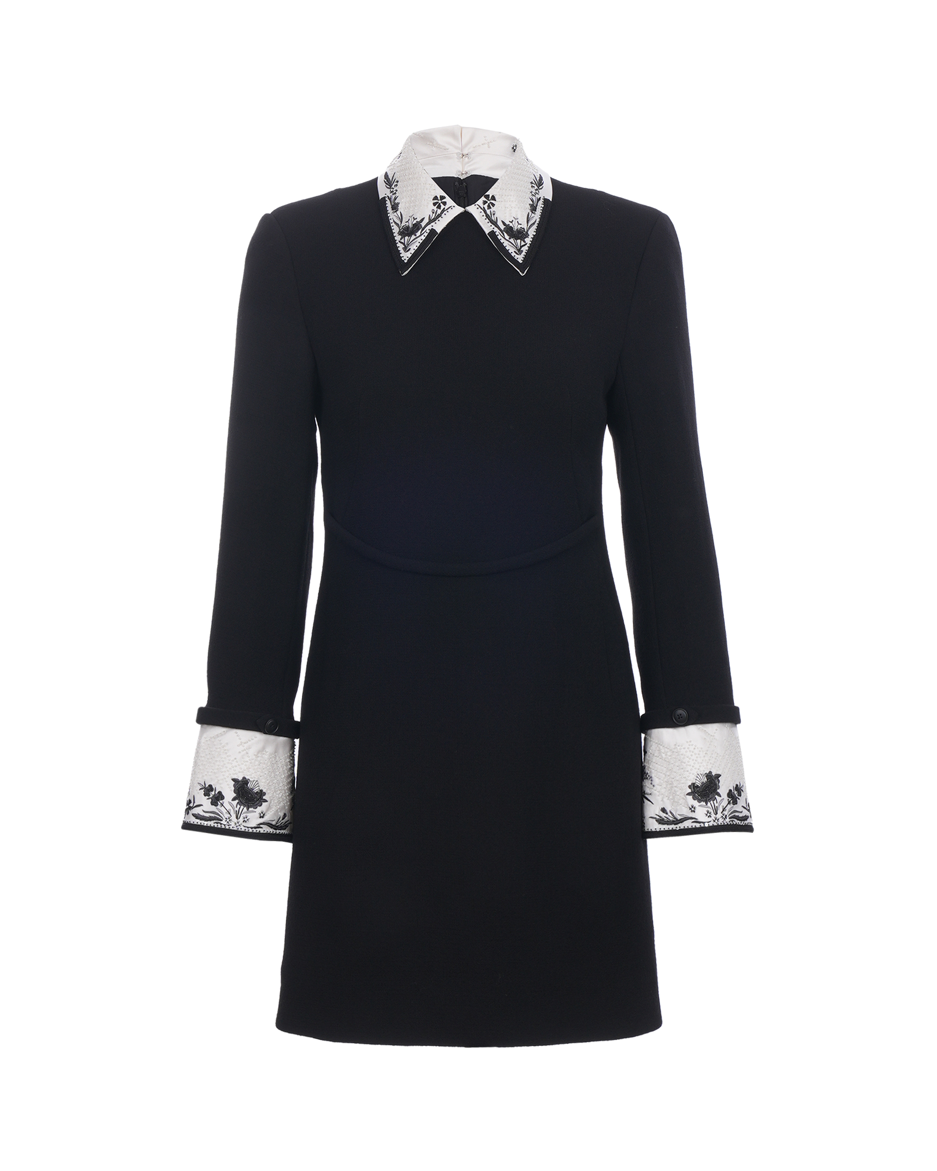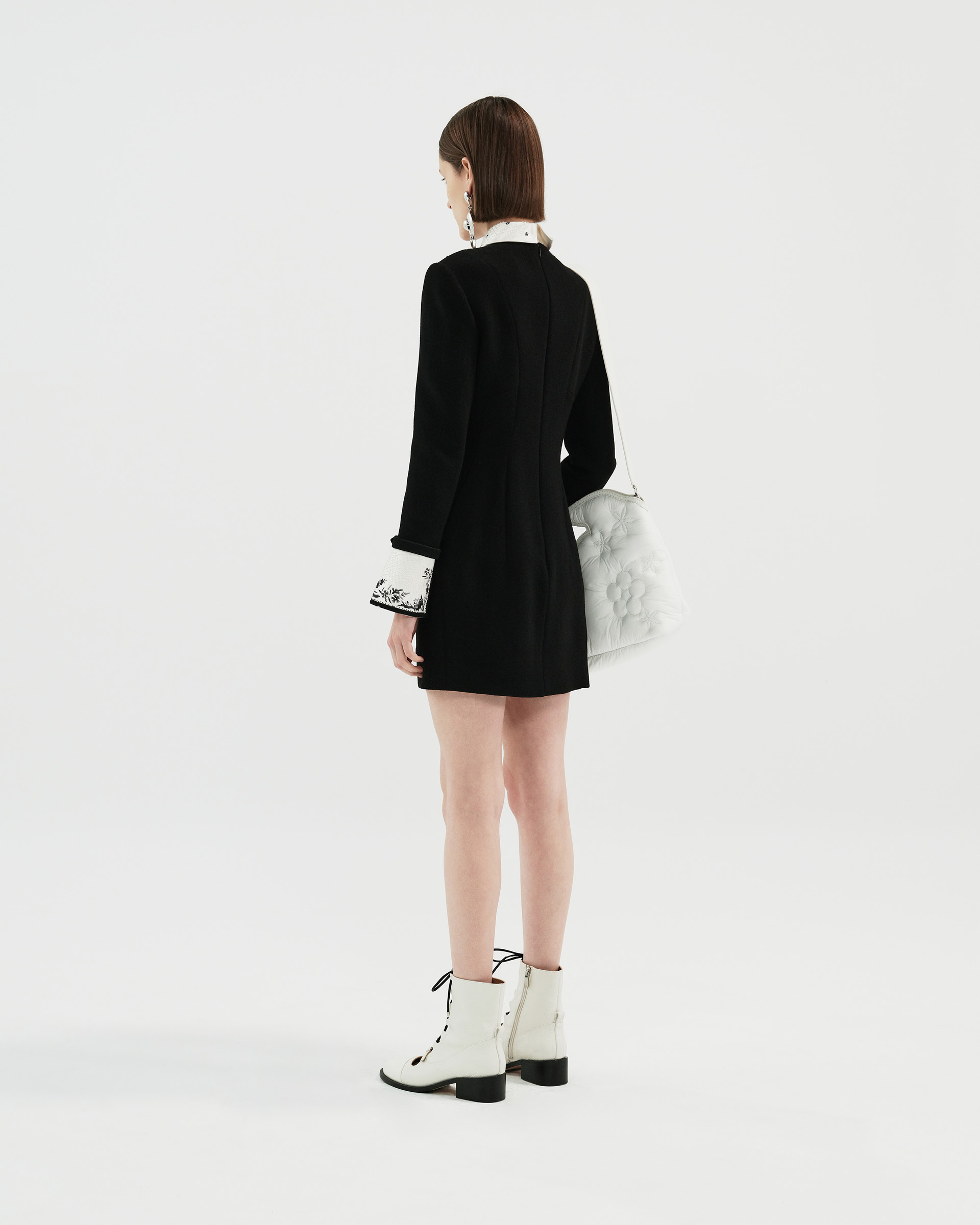 This piece is made of 100% sheep wool, the sleek silhouette presents a beautiful image, it is decorated with fine flower embroidery and three-dimensional beading, European elements and crafts combined with a nostalgic style of modern fashion.