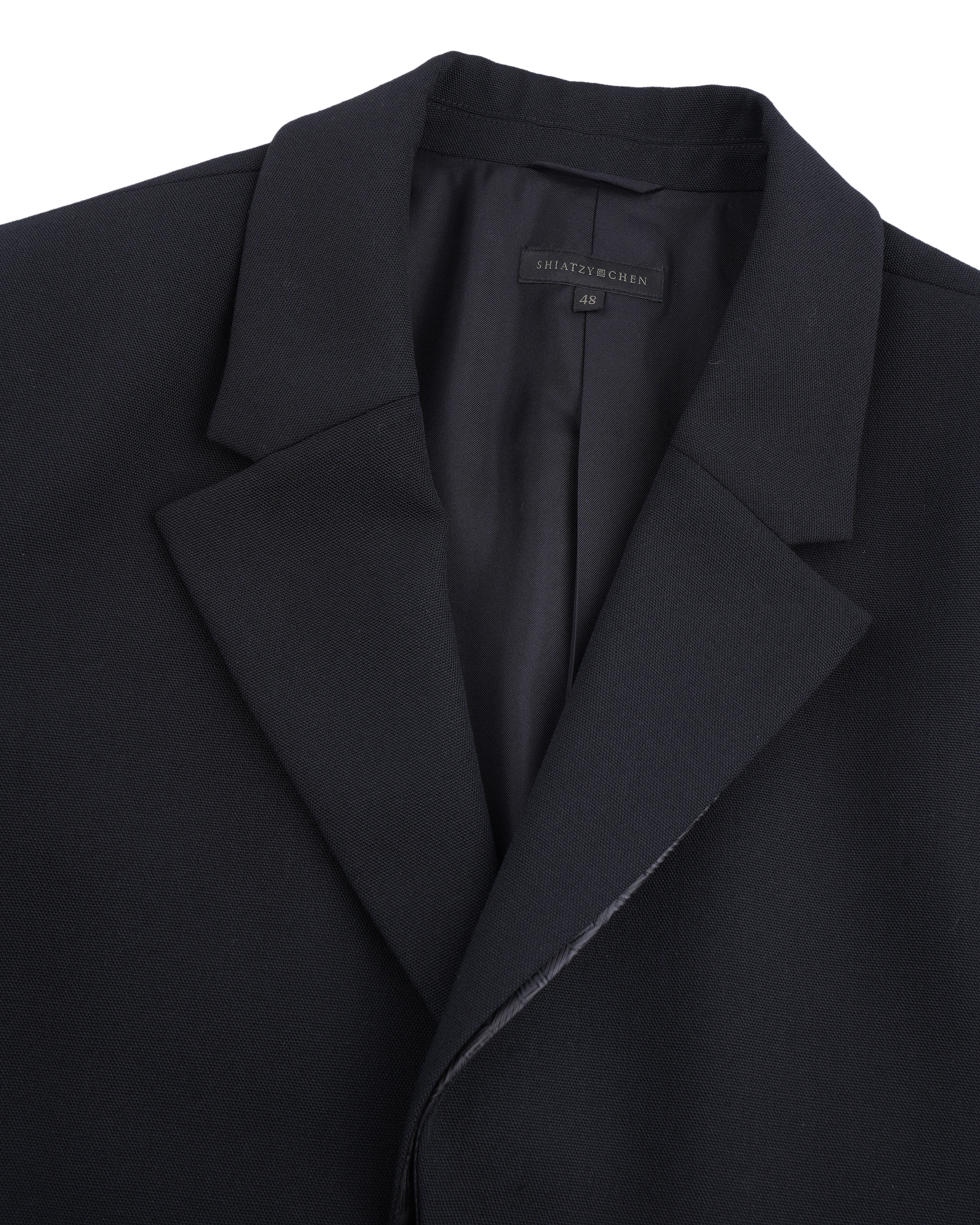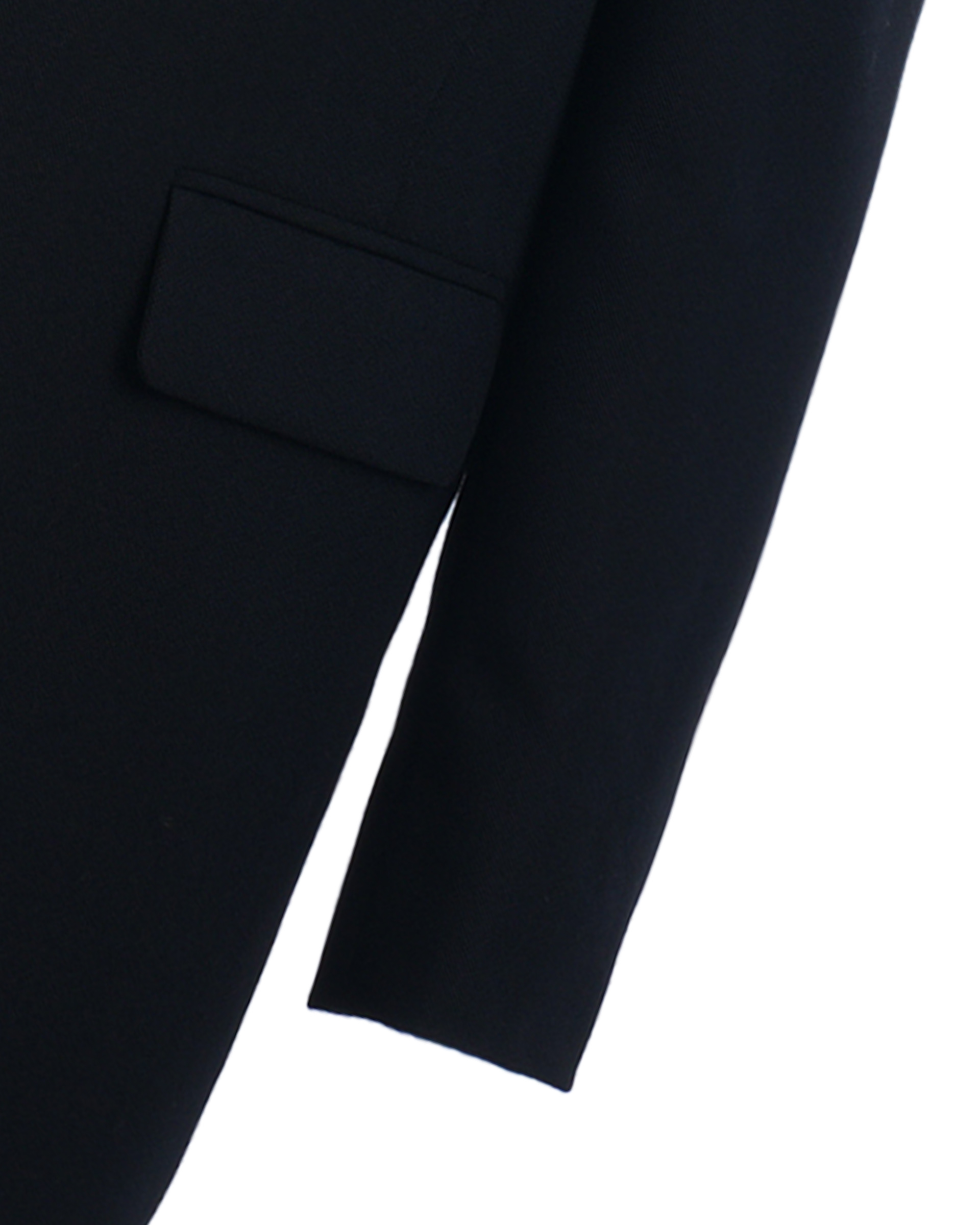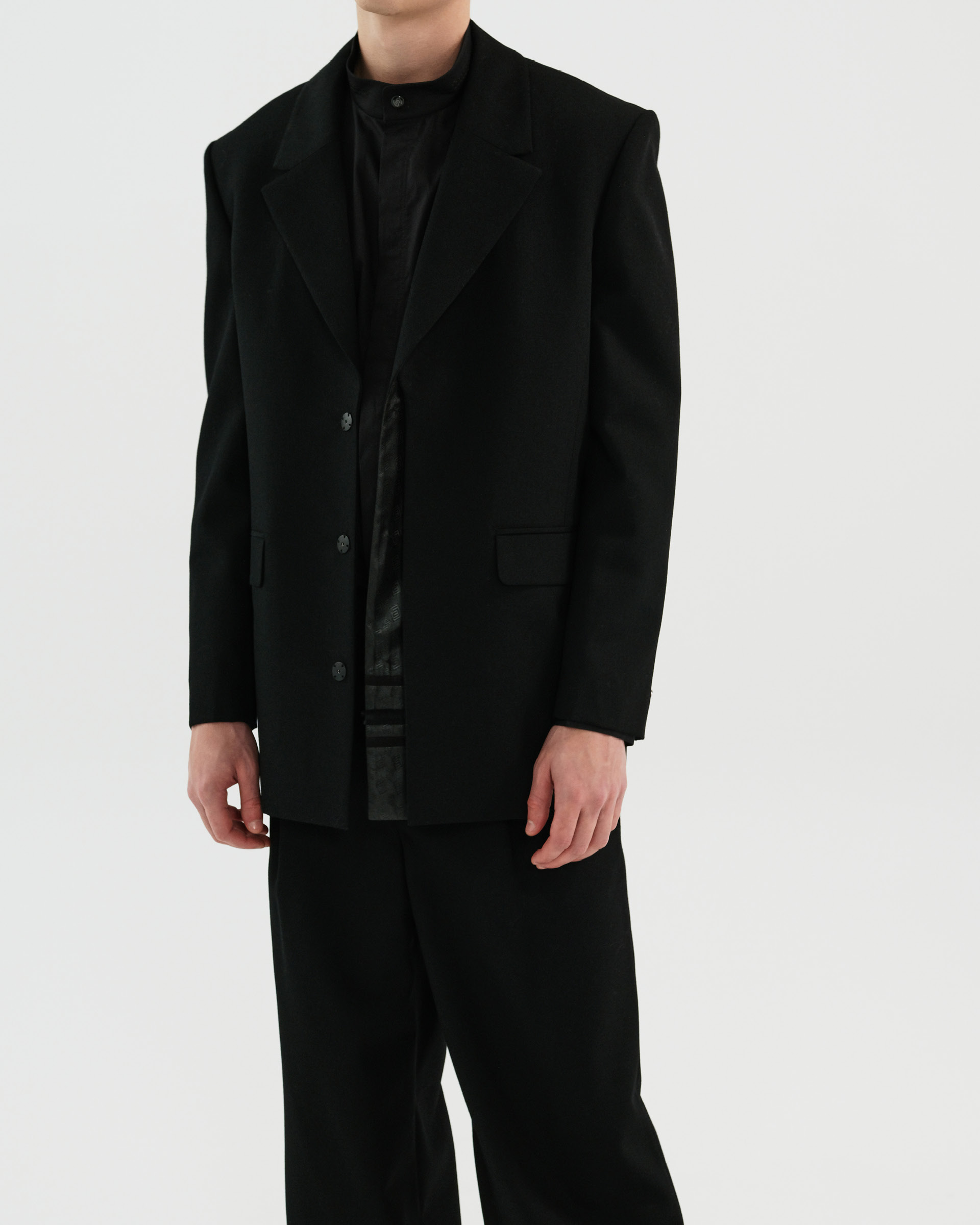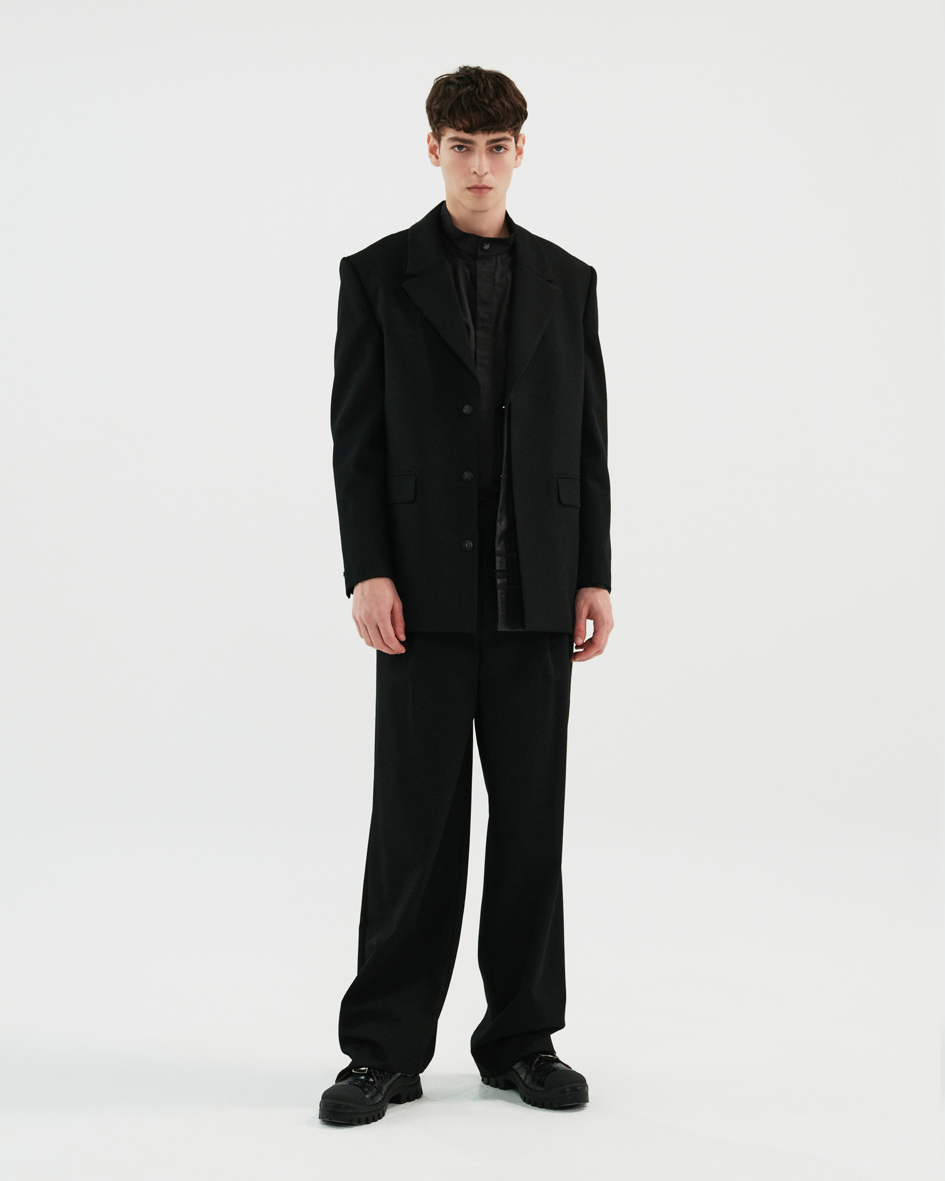 This piece is made of 100% wool, and its three-dimensional silhouette exudes a sense of strength. The double-front design creates a formal Western-style coat that exudes a dignified temperament while adding layers to the design.