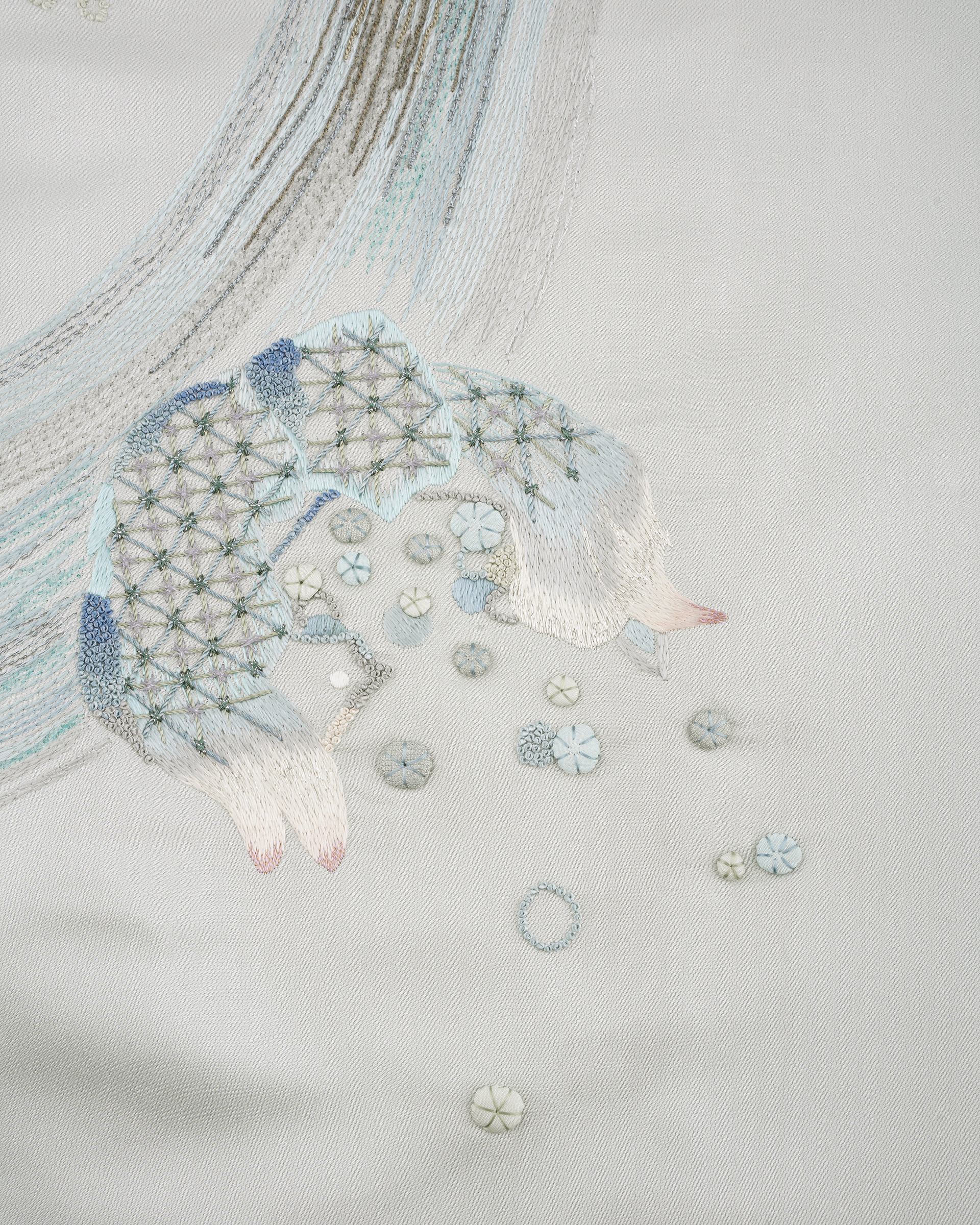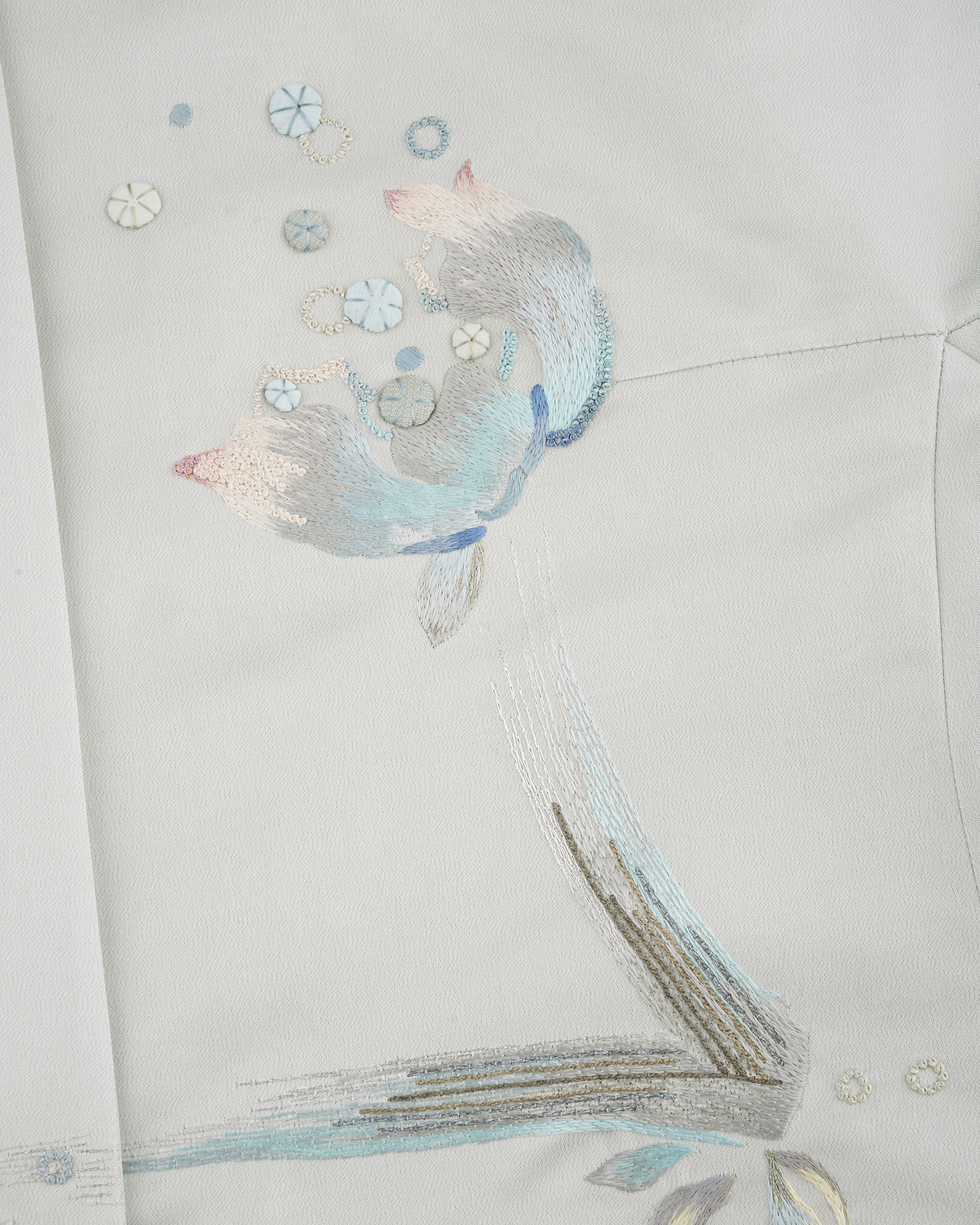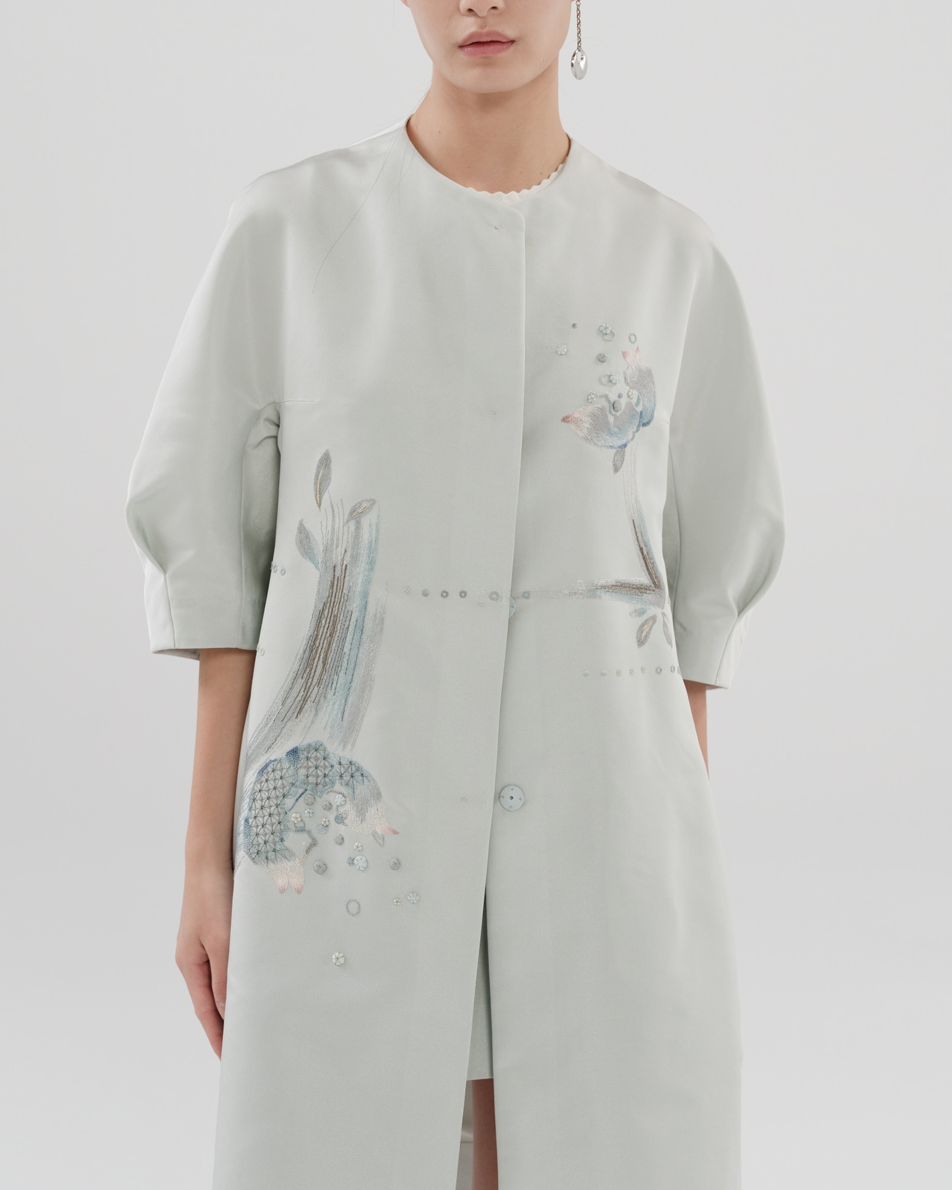 Iconic embroidered item with A-shape silhouette. This coat features delicate traditional embroideries with modern cutting, il could go with the skirt from the same series for a total-look dress up.