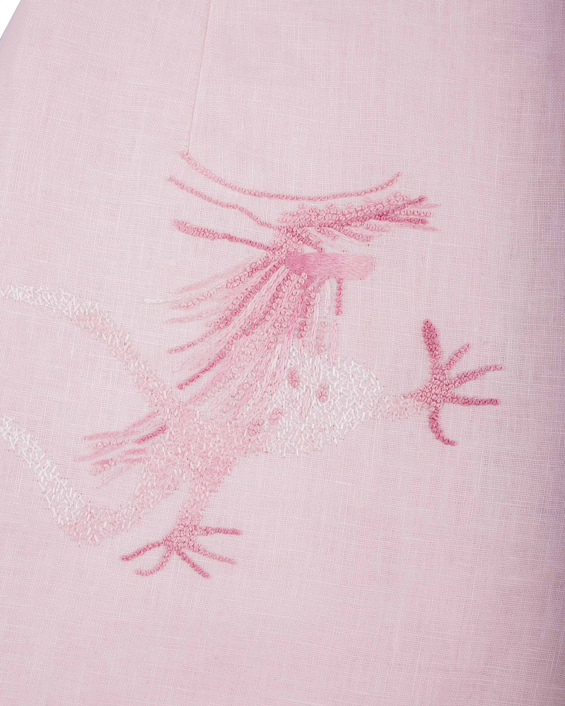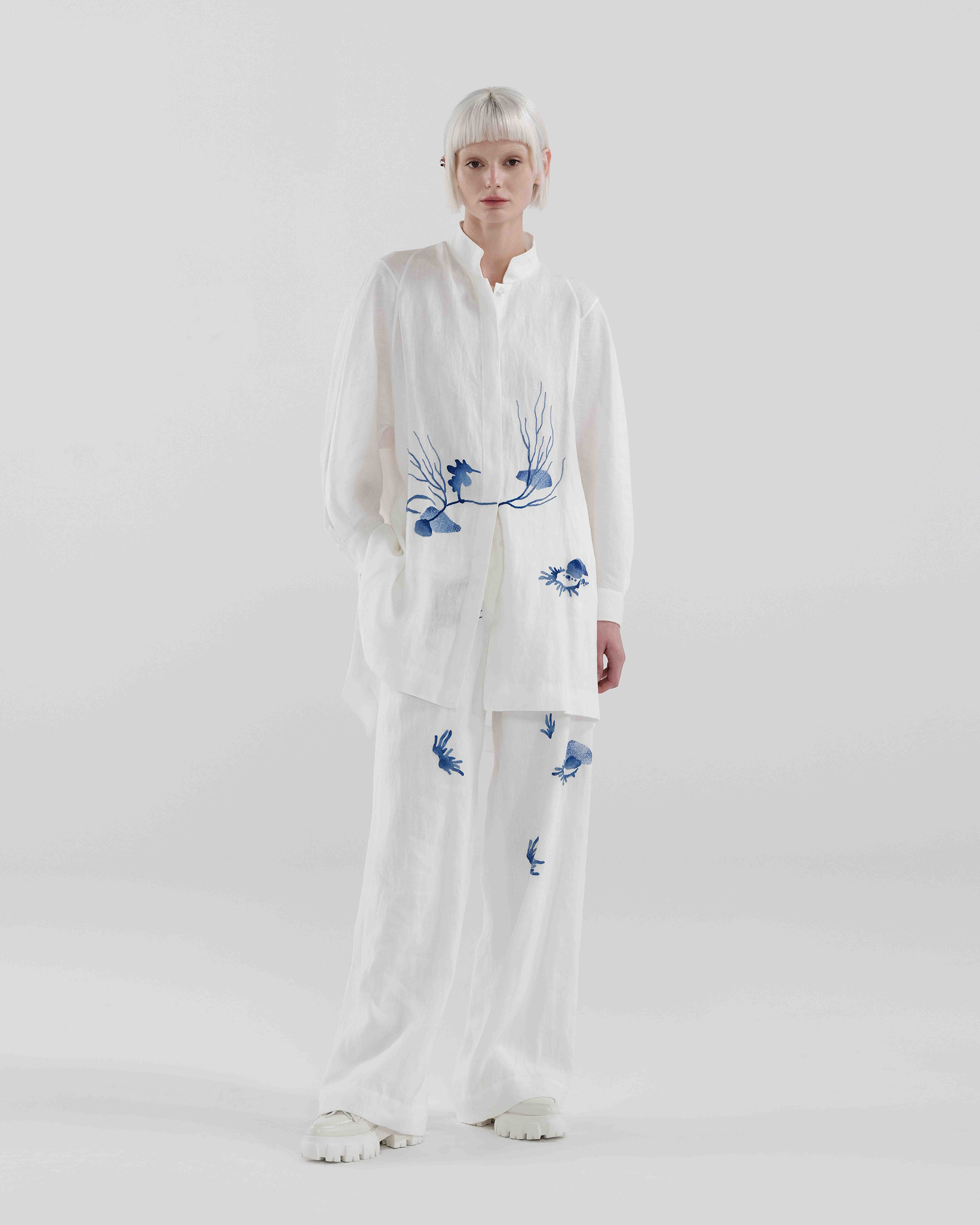 Made of natural flax fabric, which is skin-friendly and extra light. Exquisite fabrics, sartorial mastery combine with delicate mirage embroideries, this item showcases oriental charm with modern touch.