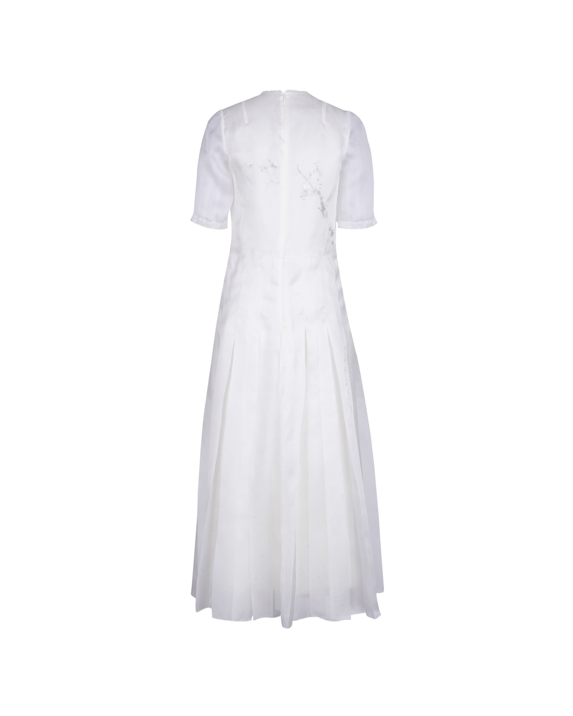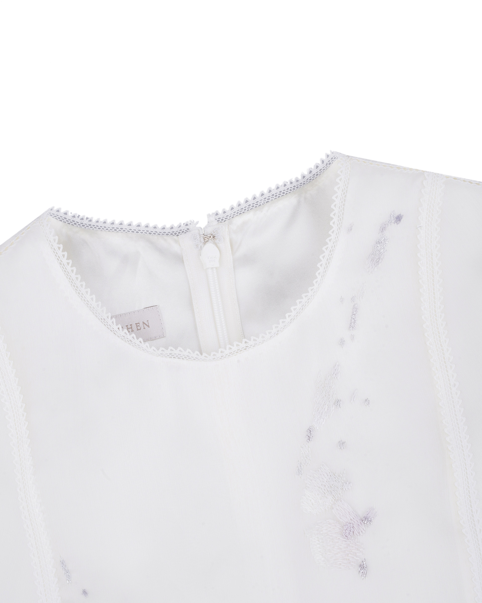 The tablecloth of this Chinese stand-up collar dress is made of 100% mulberry silk, and the simple version is matched with exquisite embroidery work.