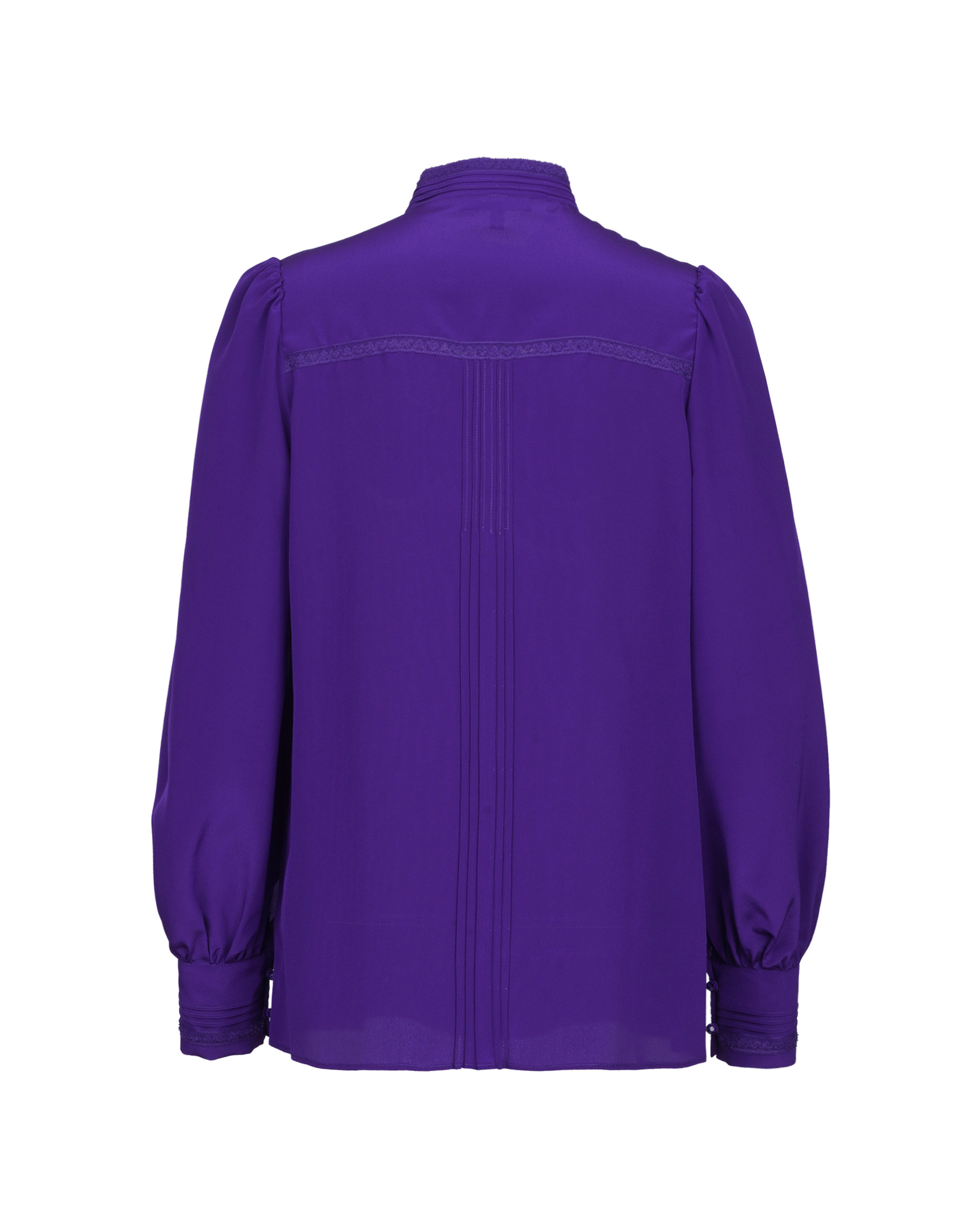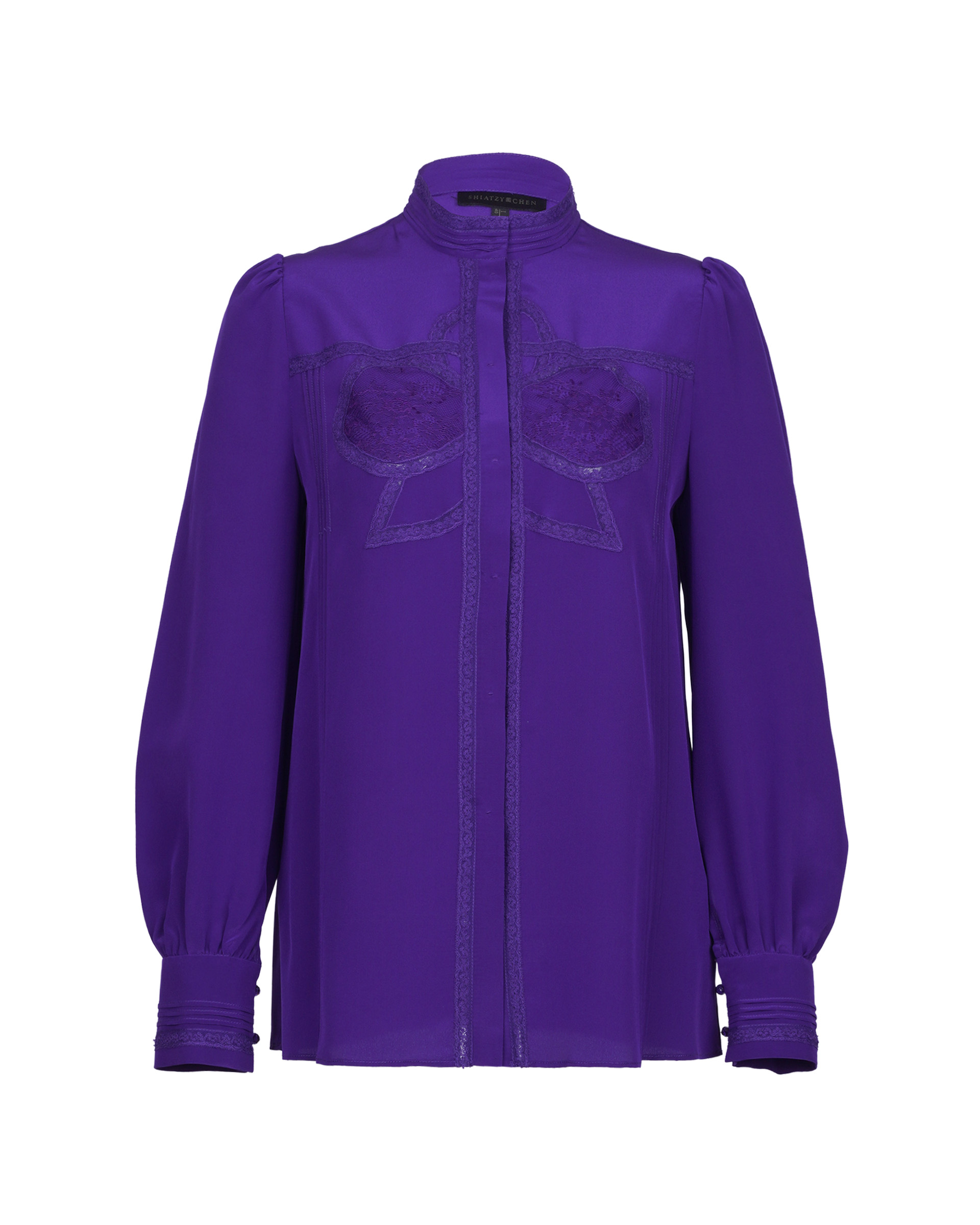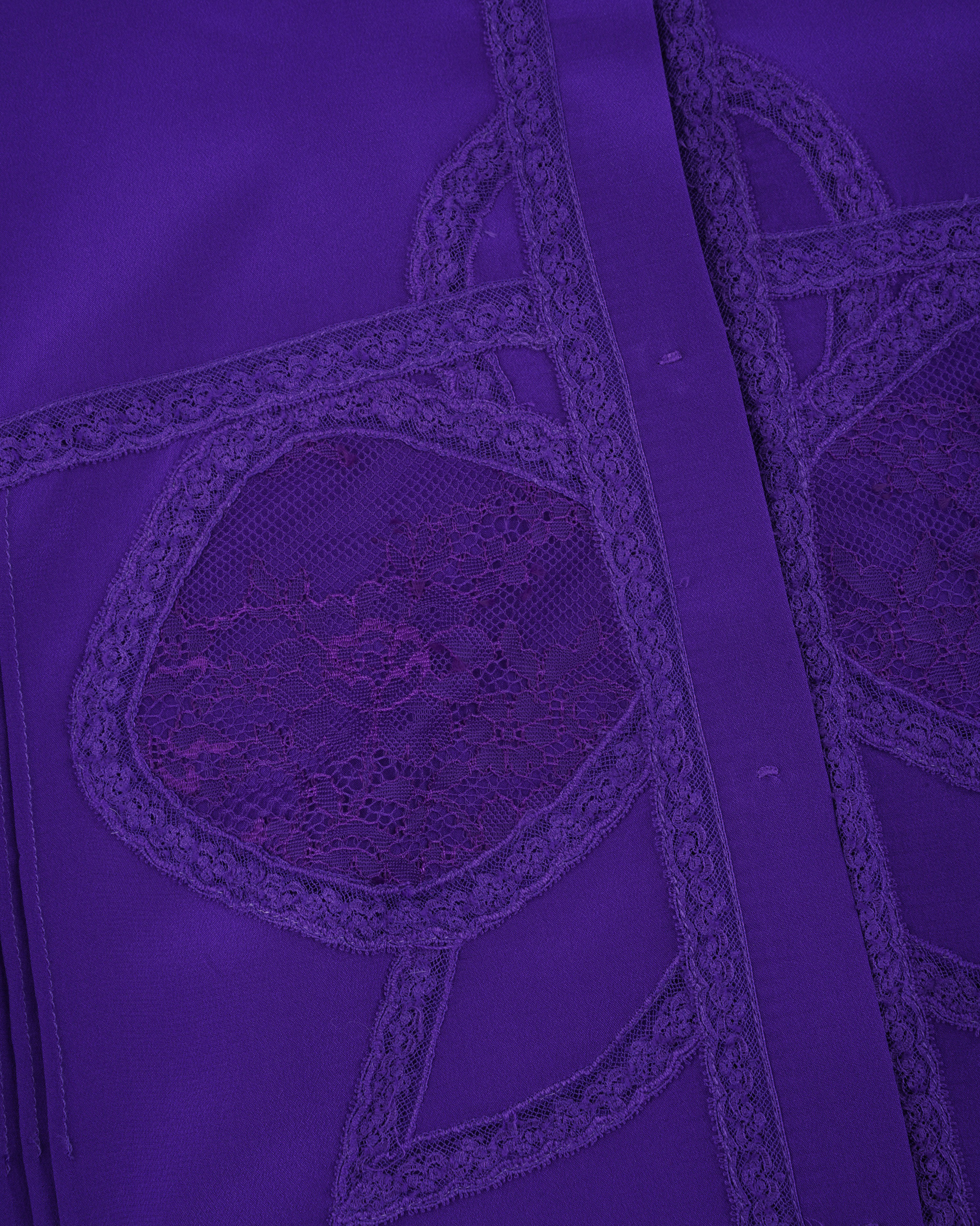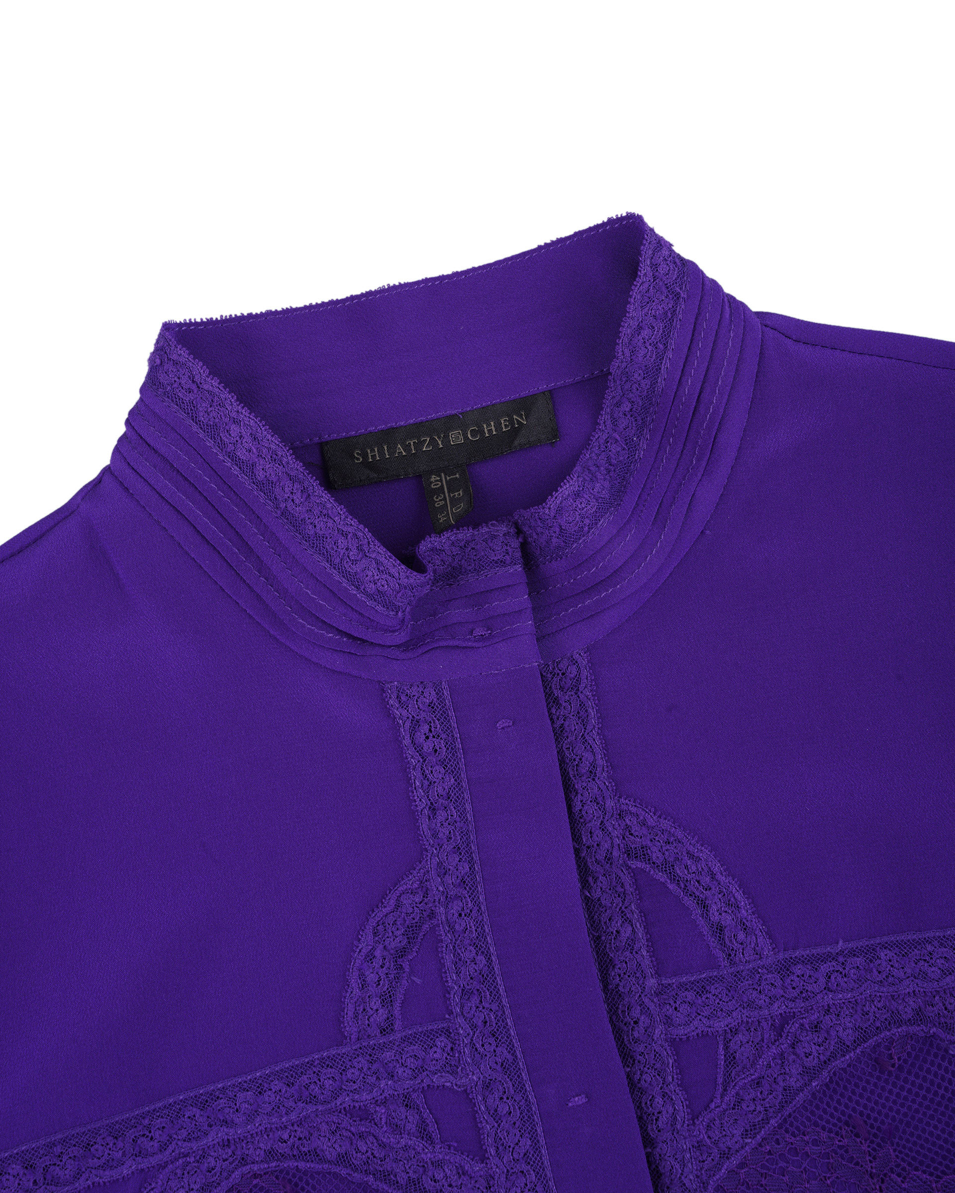 This piece is made of 100% mulberry silk, skin-friendly and breathable chiffon fabric with lace splicing design, solid color simple design with Chinese stand-up collar, reflecting the beauty of Chinese style.