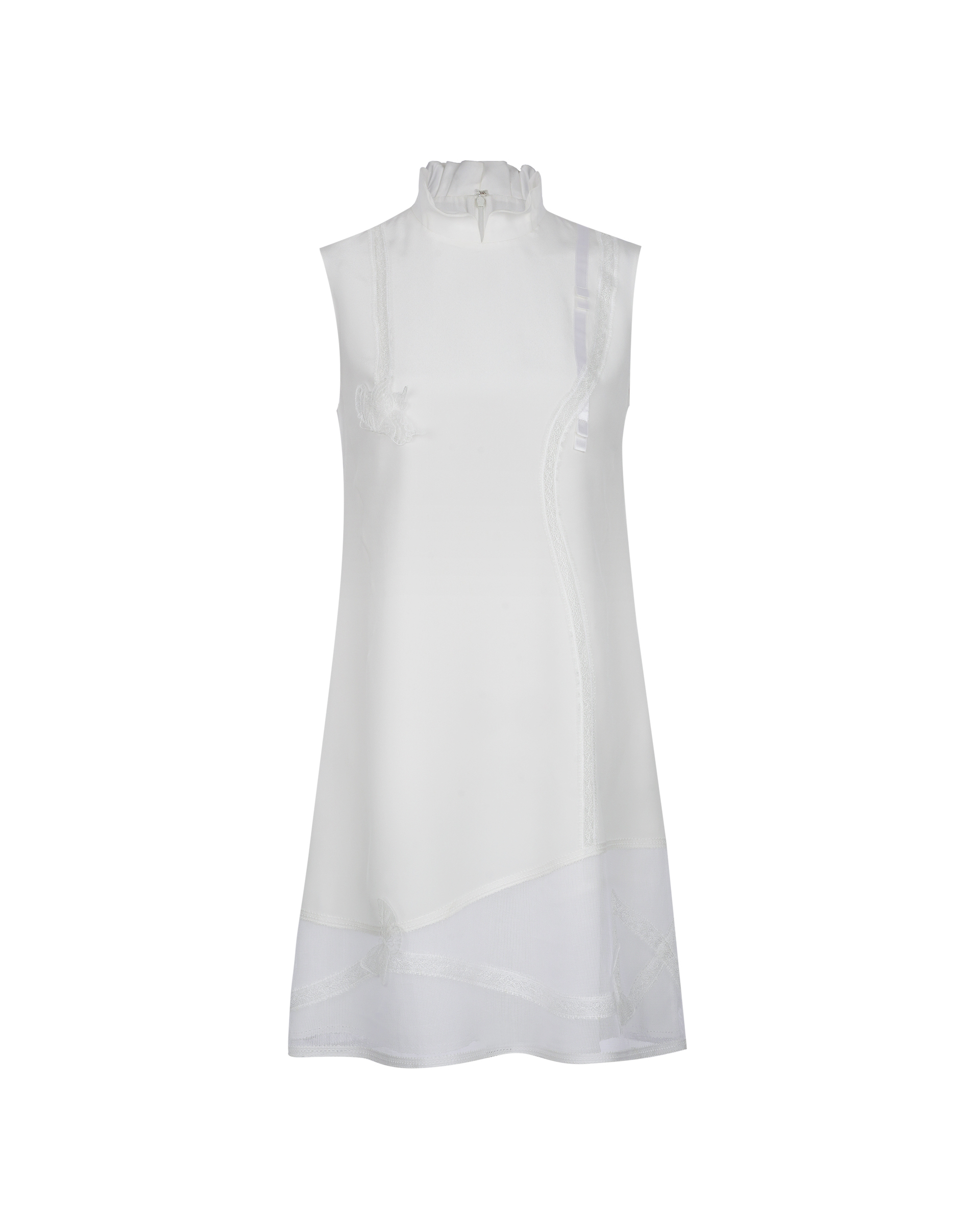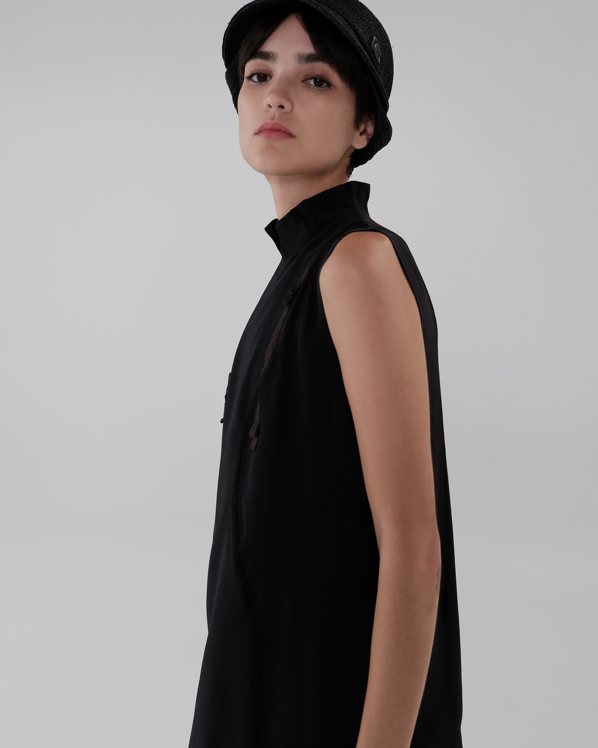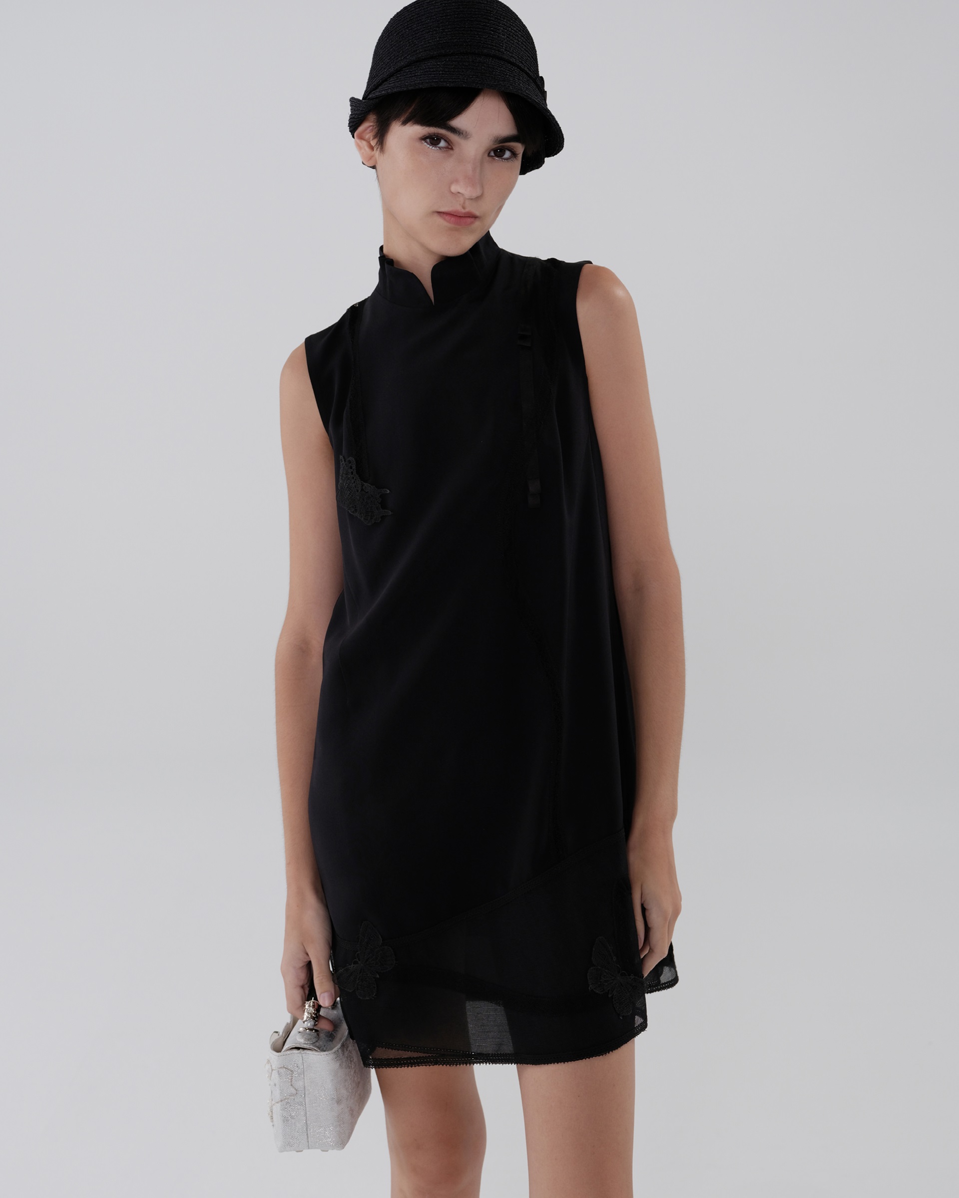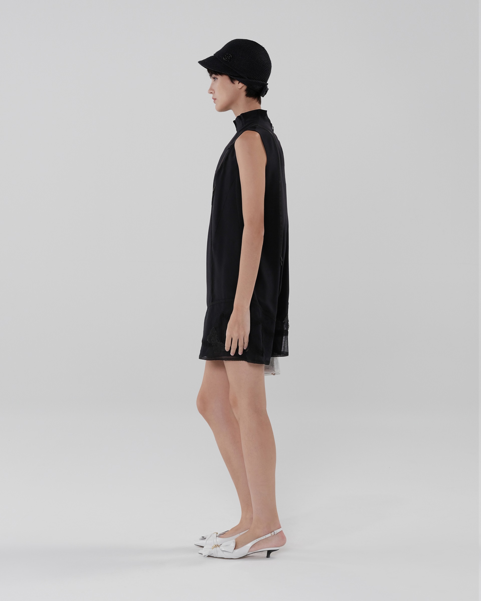 This piece is made of 100% mulberry silk fabric, straight and short version is comfortable and not close to the body; hem detail splicing, personality and leisure.