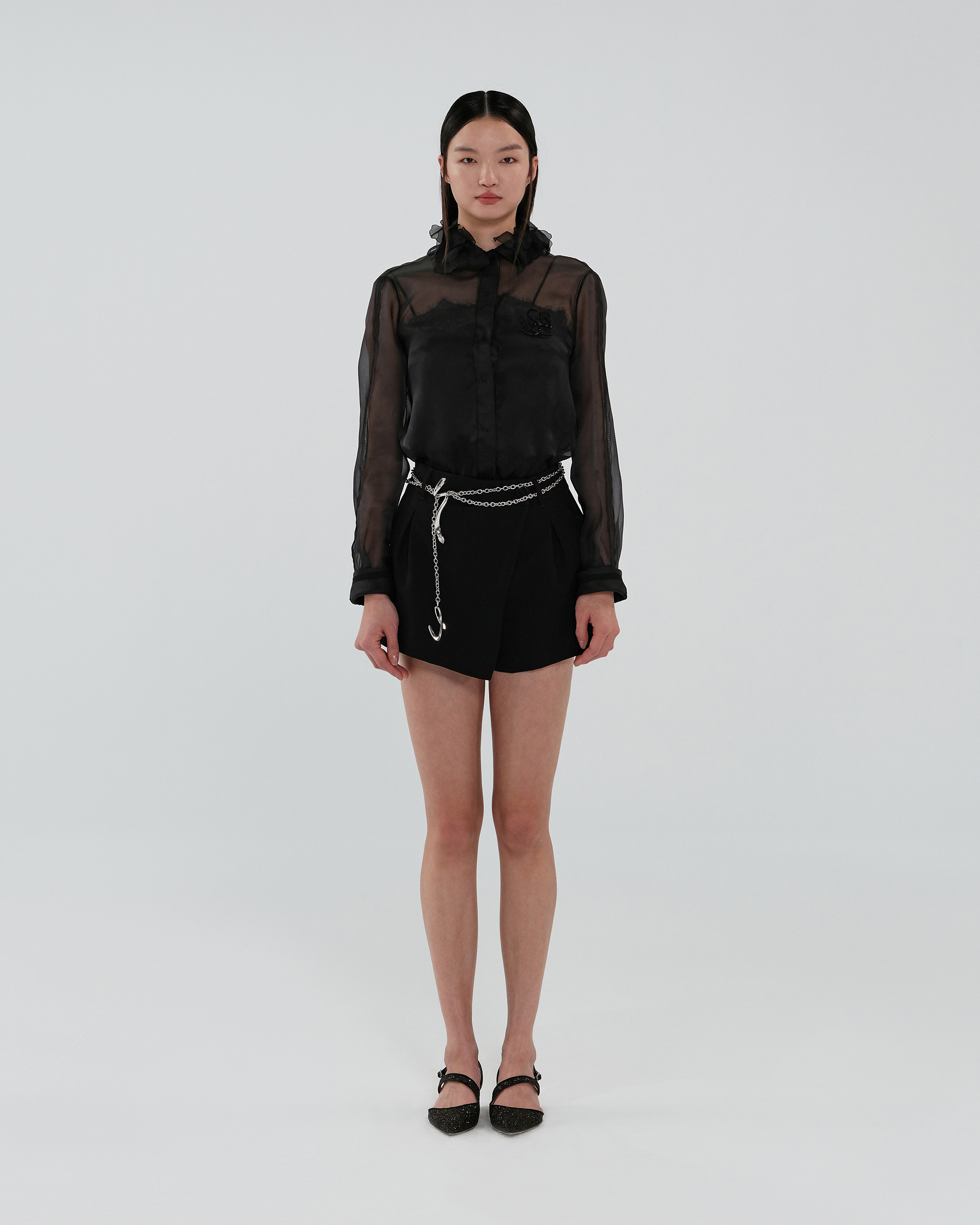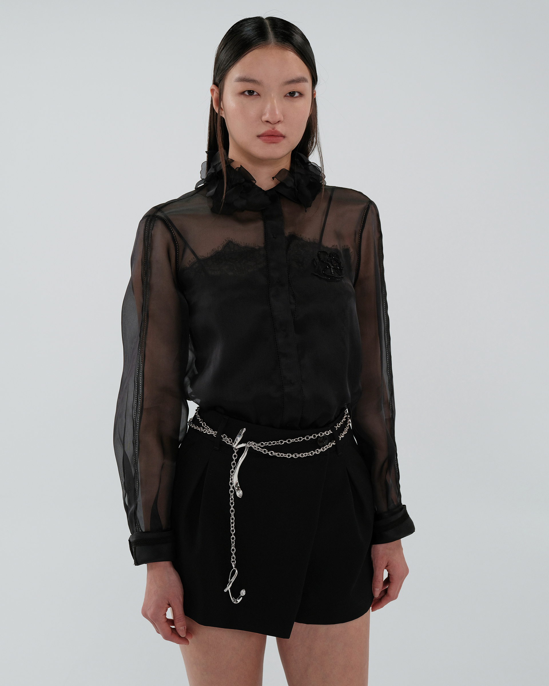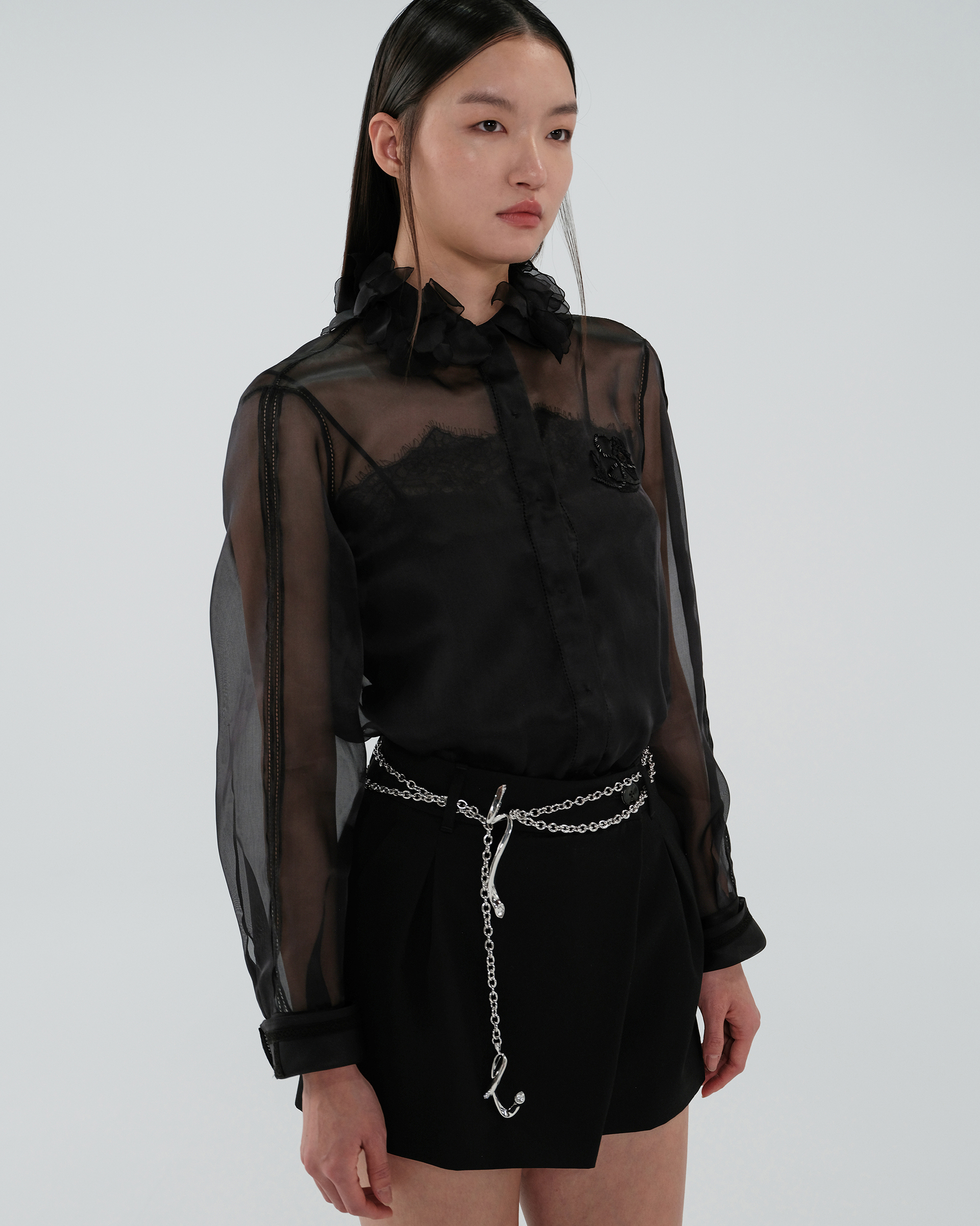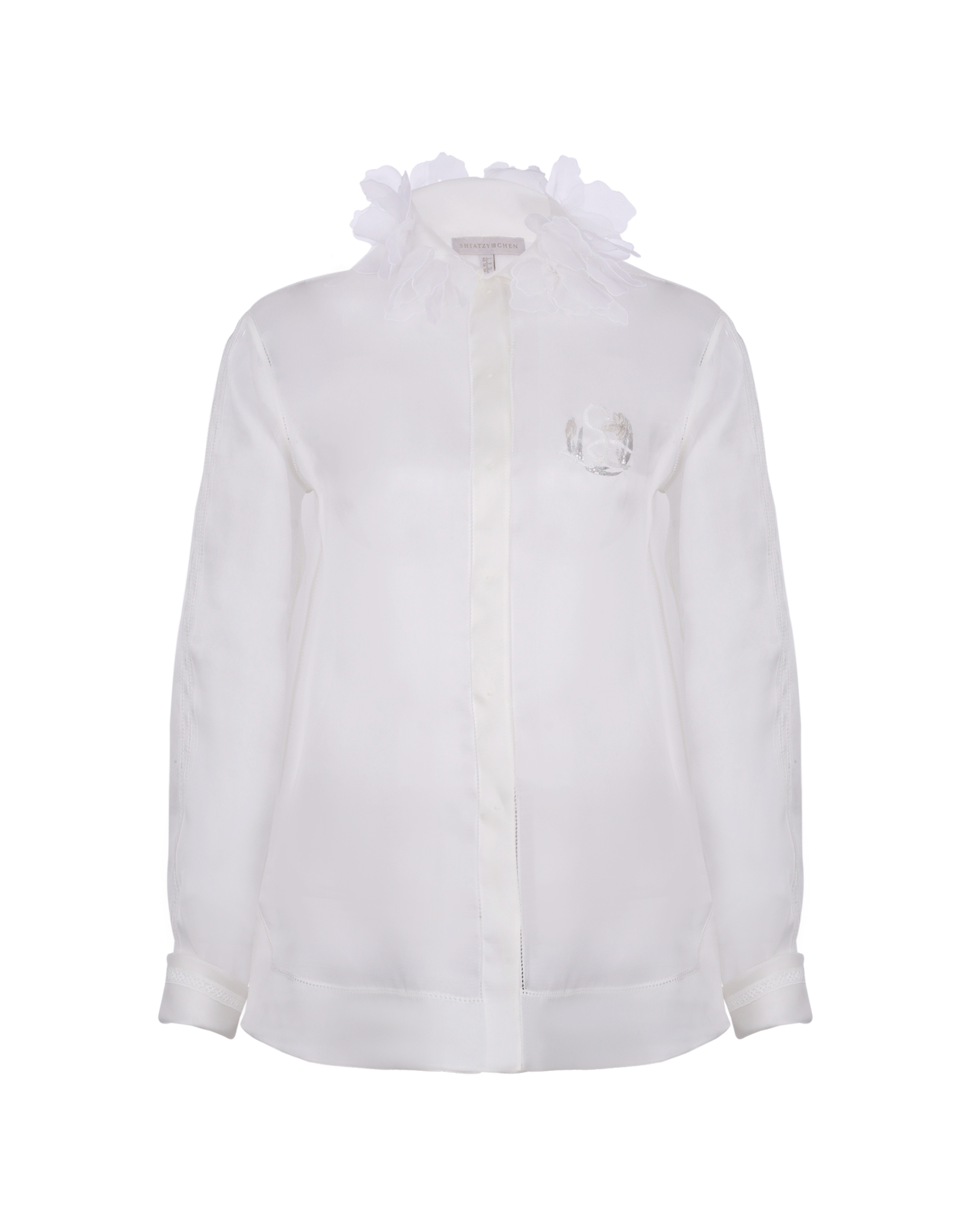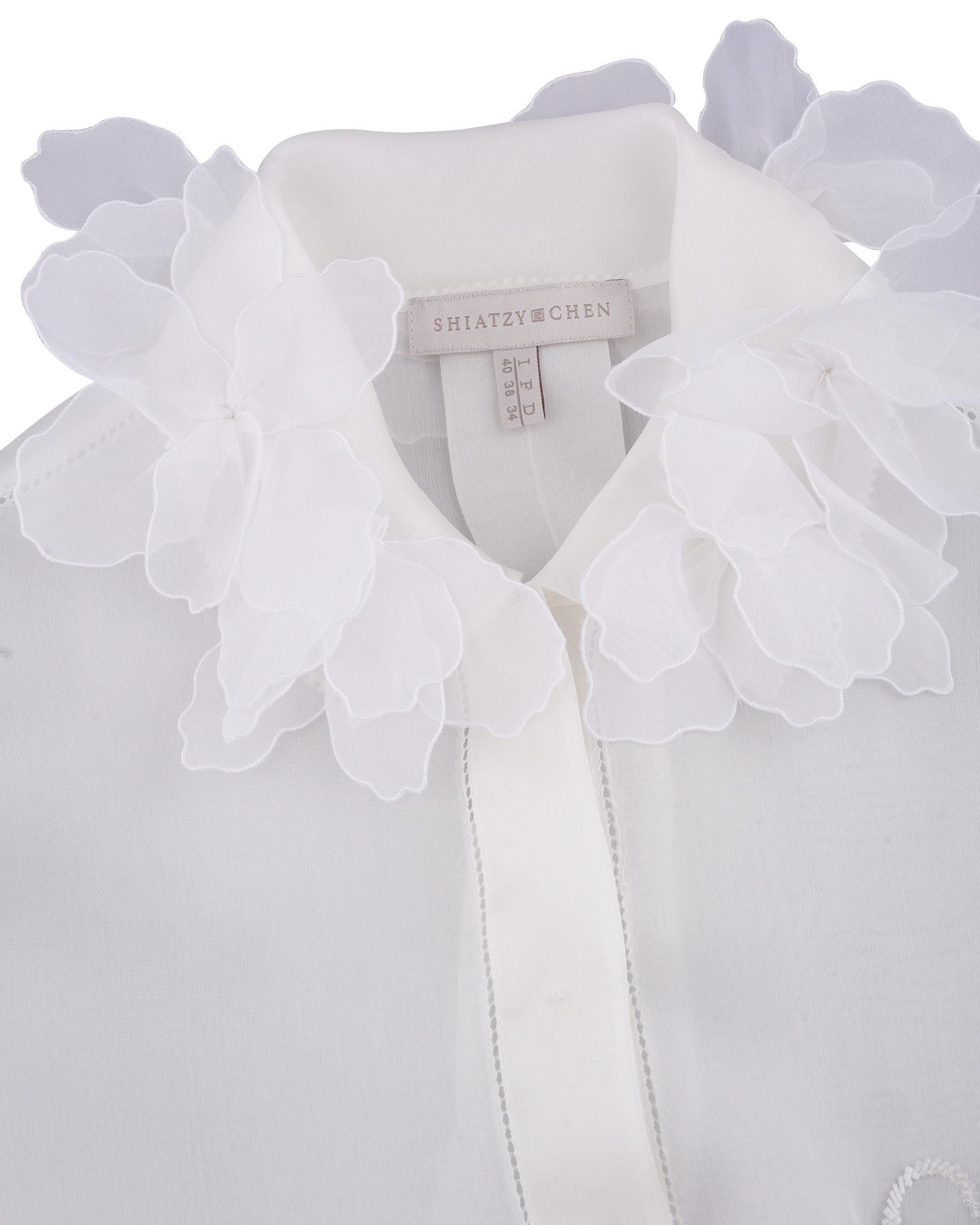 Shell: Mulberry silk 100% Washing Instructions: Recommend "Dryclean, Petroleum Solvent" To Preserve The Color And Style Made In ShanghaiSizes listed are French sizes Model is in size 38FR 38 - Length:72cm (measured from neckline), Bust Girth:113.5cm, Shoulder: 40cmFR 40 - Length:73cm (measured from neckline), Bust Girth:118.5cm, Shoulder: 41cmFR 42 - Length:74cm (measured from neckline), Bust Girth:123.5cm, Shoulder: 42cmFR 44 - Length:74.5cm (measured from neckline), Bust Girth:128.5cm, Shoulder: 43cm