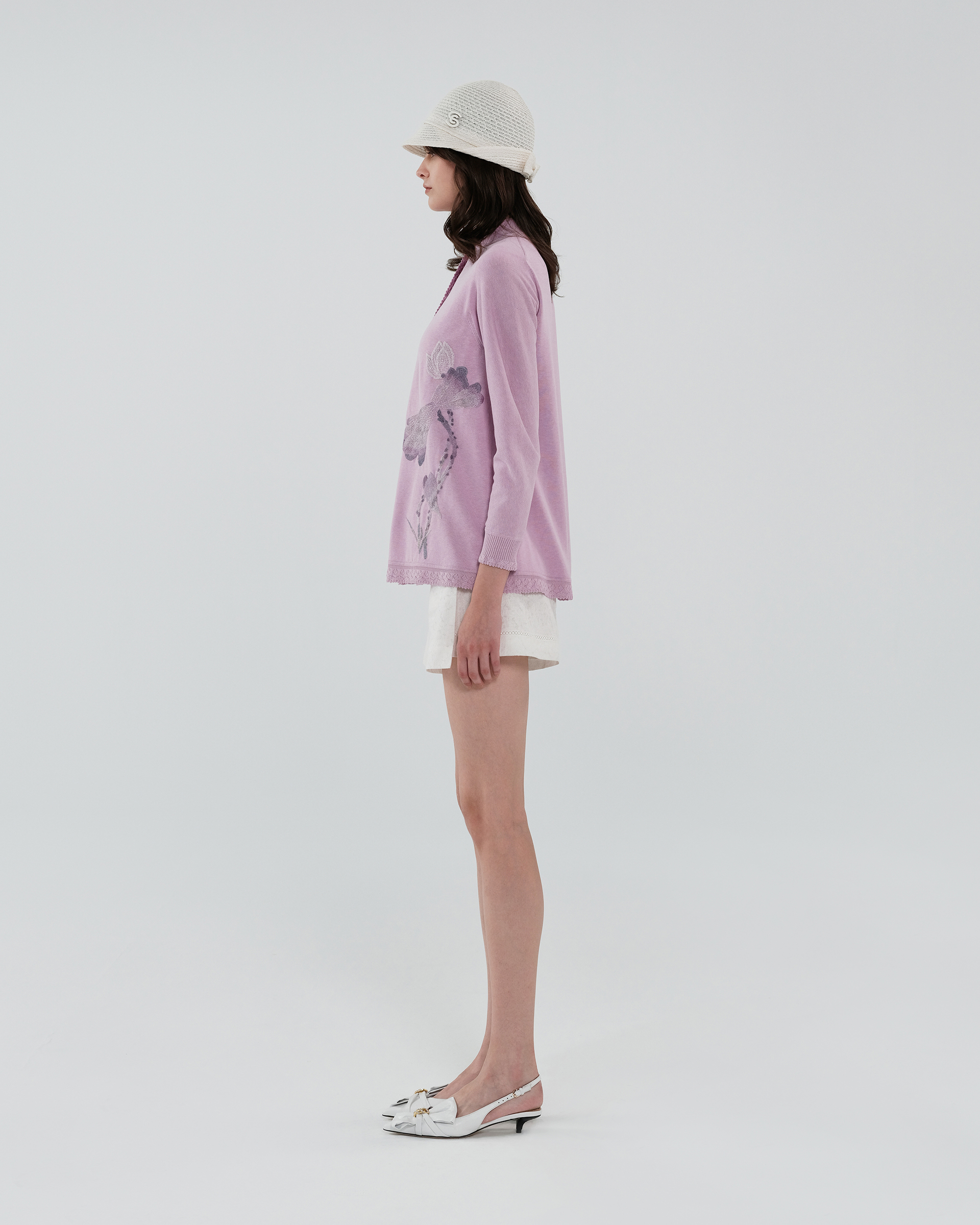 This piece is shaped with delicate embroidery to create a romantic floral scene; the Chinese stand-up collar and lapel design emphasize the retro and calm femininity.