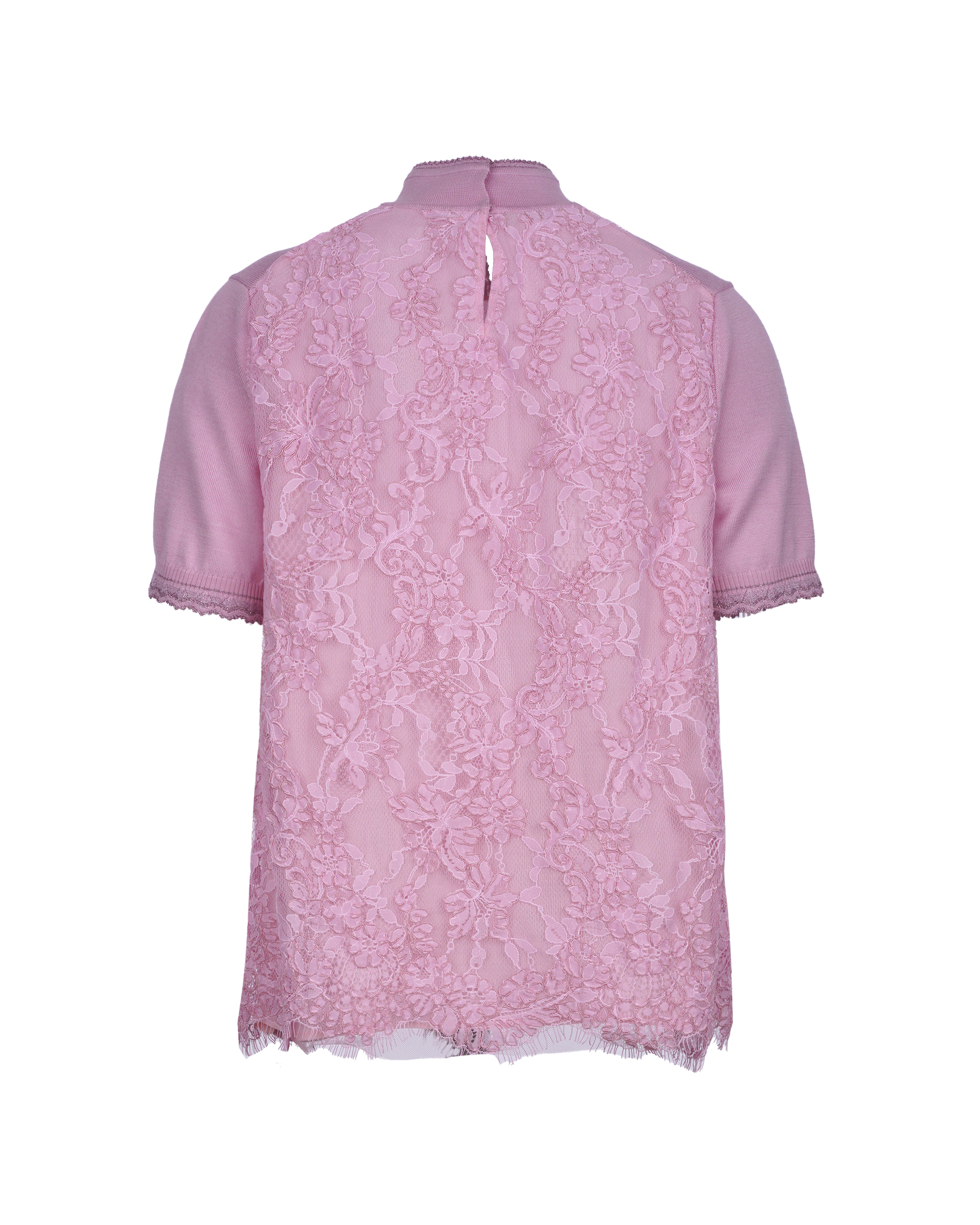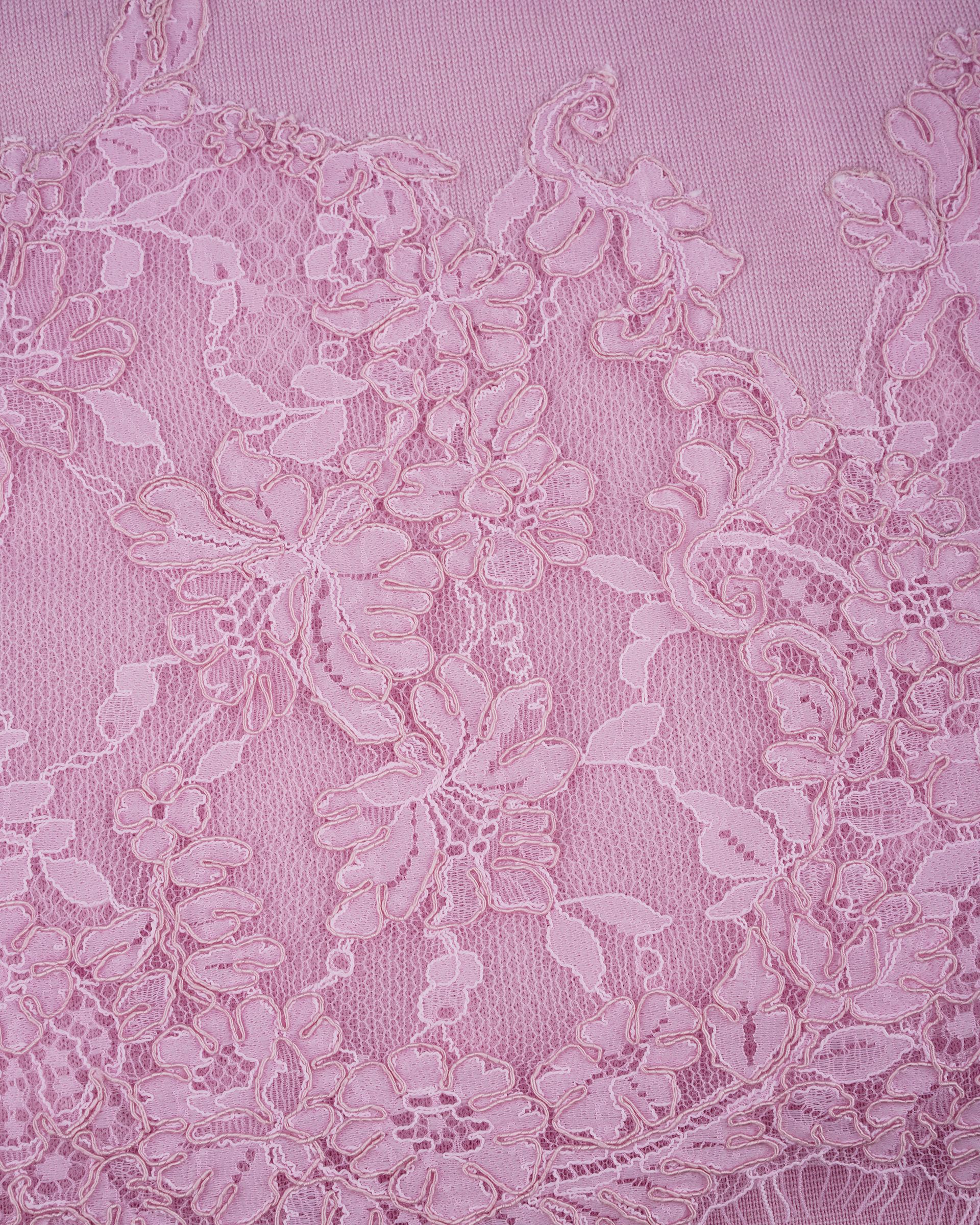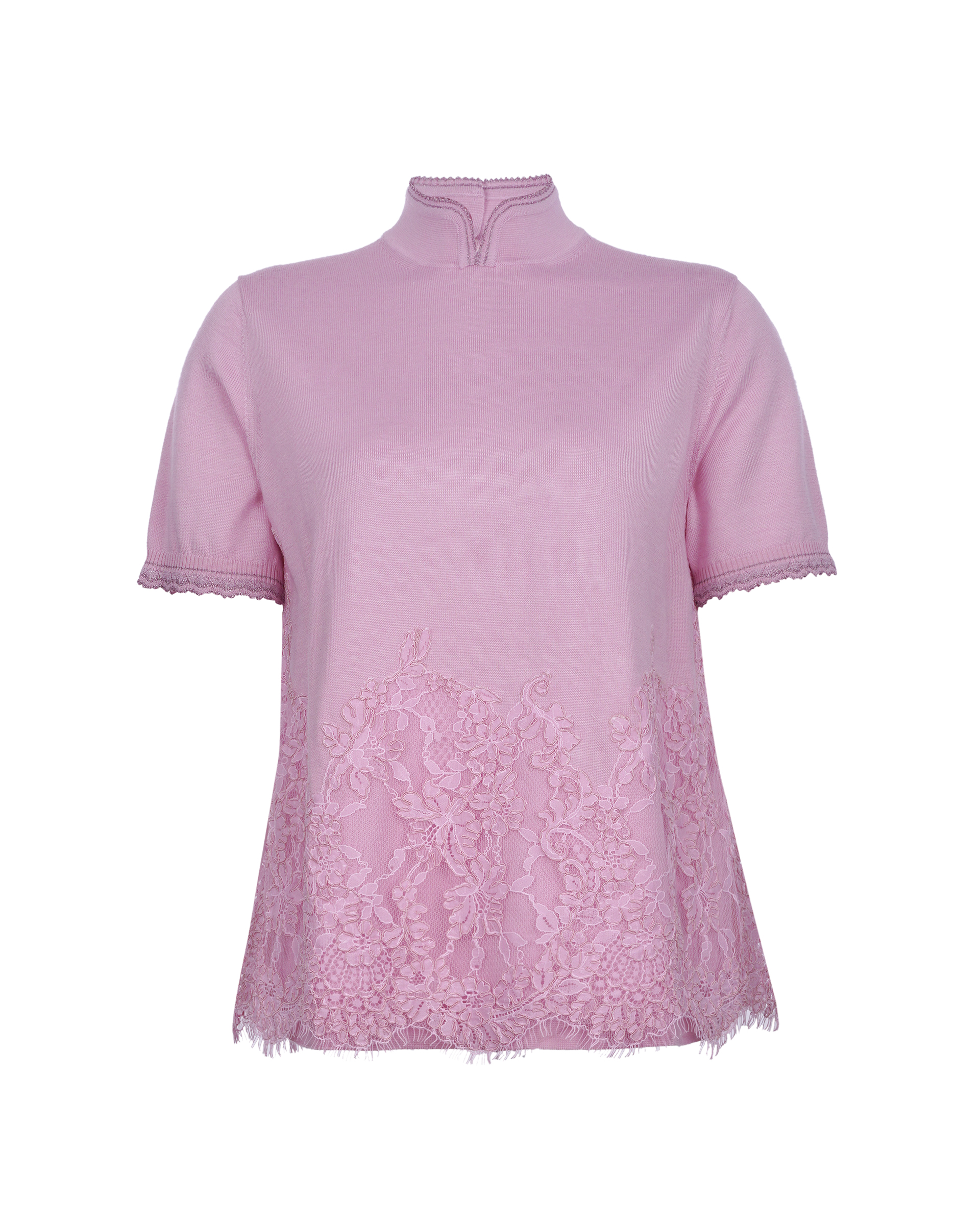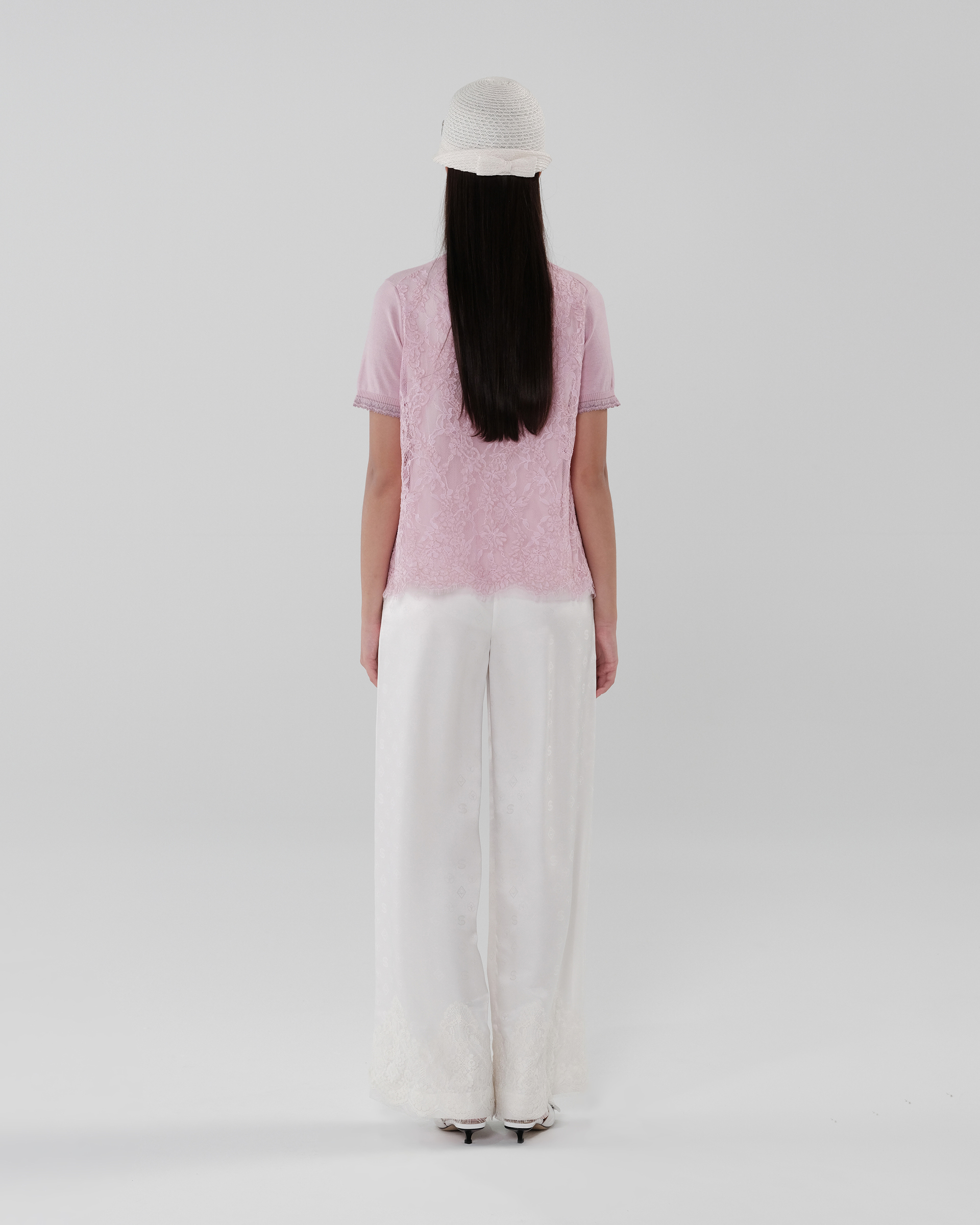This piece is spliced with large lace at the hem, and the inner layer of silk is comfortable and flattering to the skin; the Chinese stand-up collar and slant placket design emphasizes the calm and soft femininity.