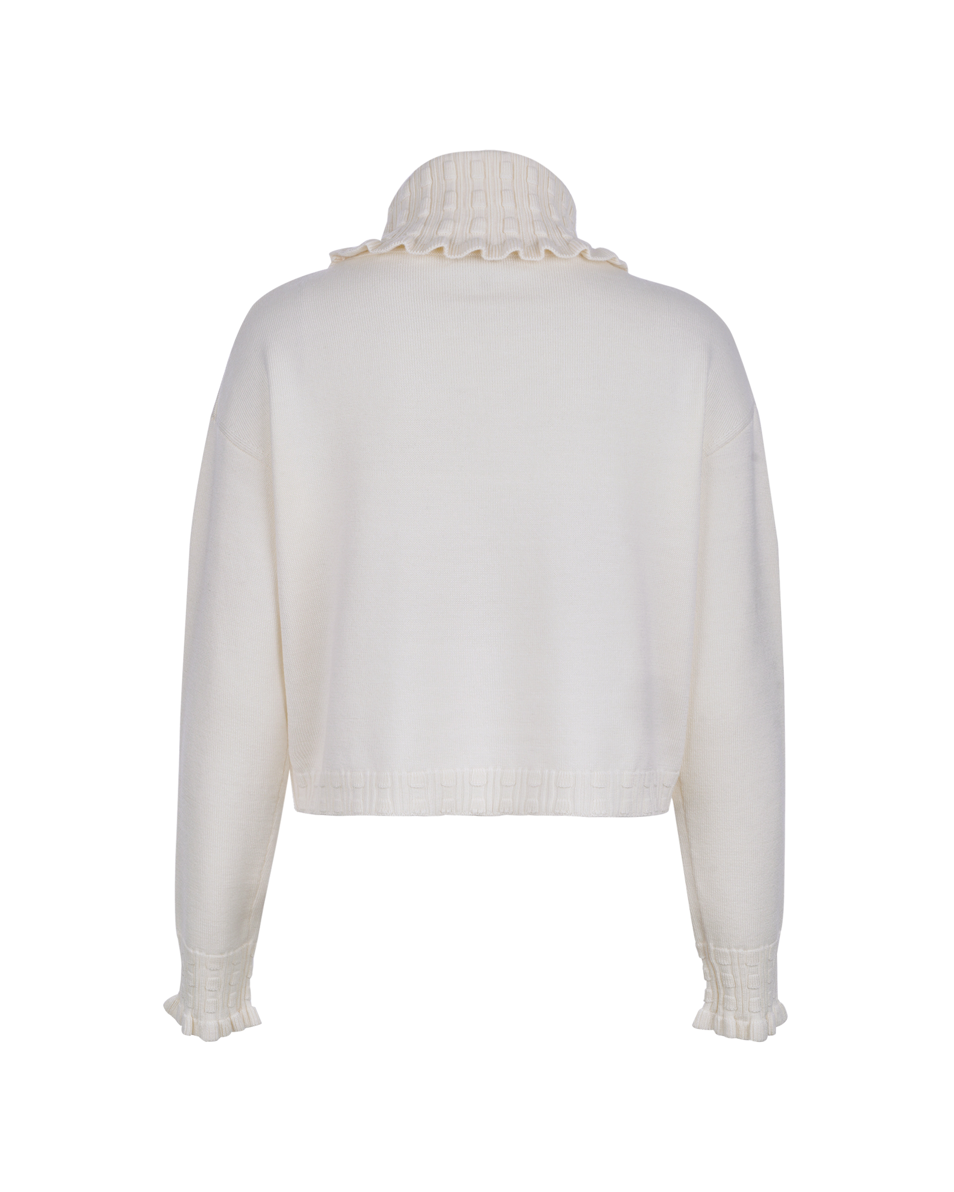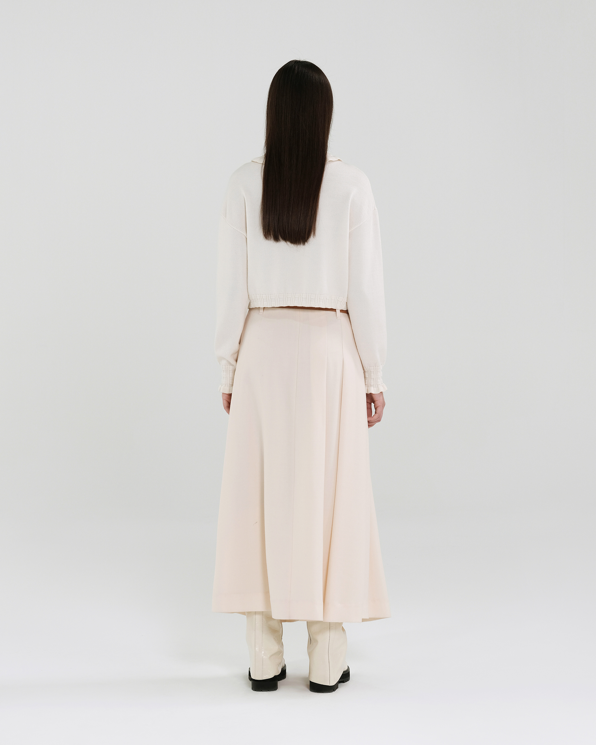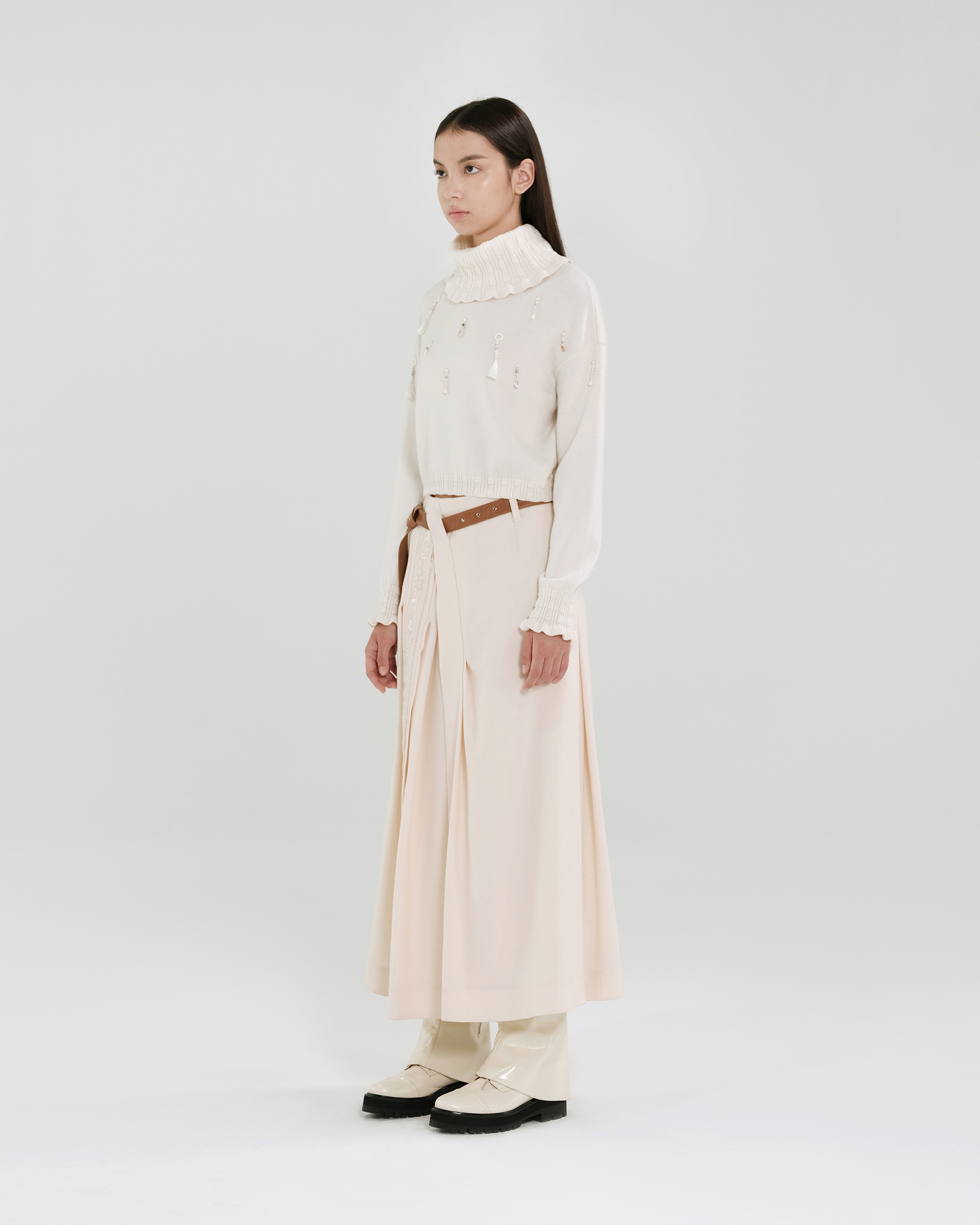 The cropped design features beaded fringe accents,  suitable for layering or wearing alone to showcase a relaxed, effortless vibe for fall and winter looks.