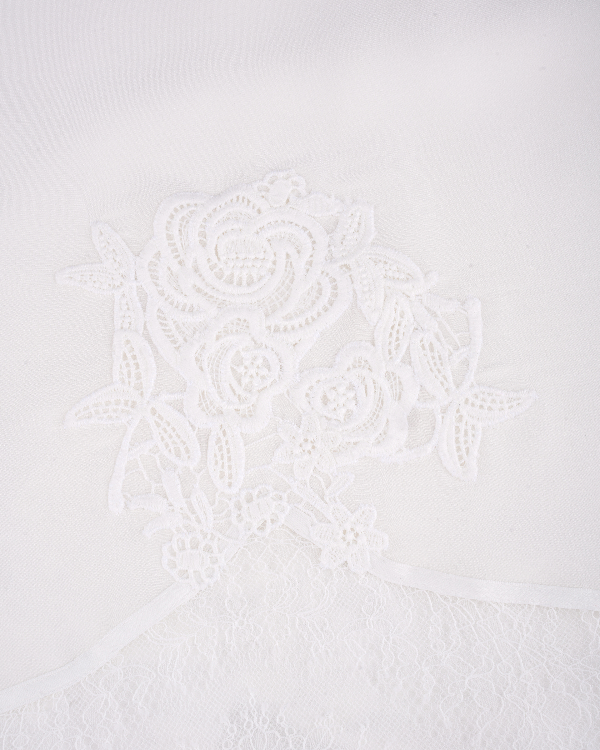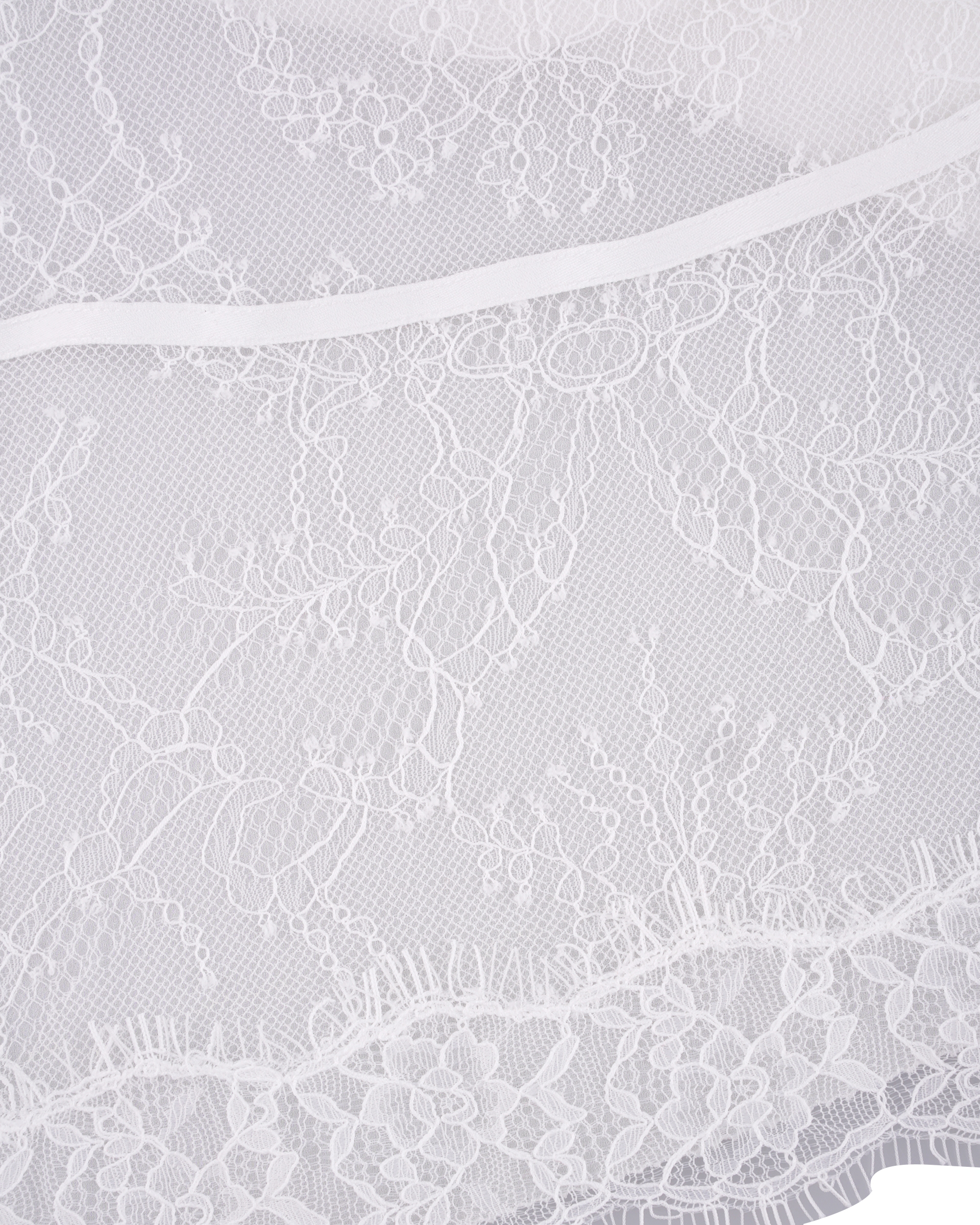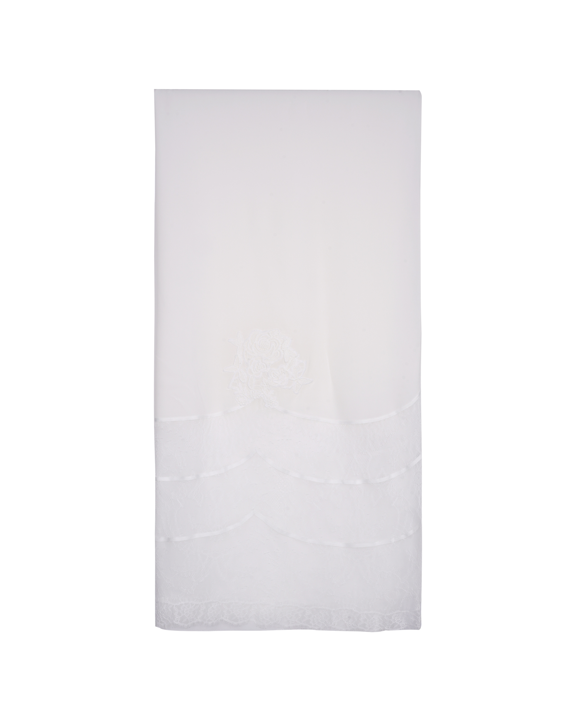 Crafted from silk and lace fabric in a patchwork design, featuring cotton lace floral motifs for a simple yet elegant look. It makes an excellent choice as either a scarf or a shawl.