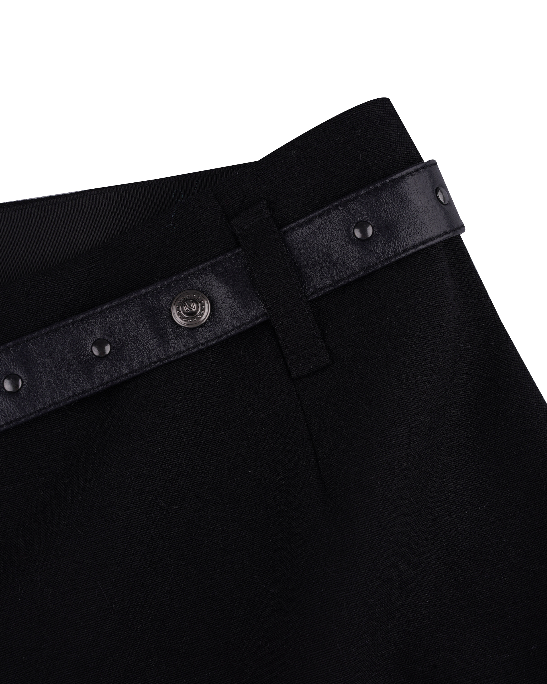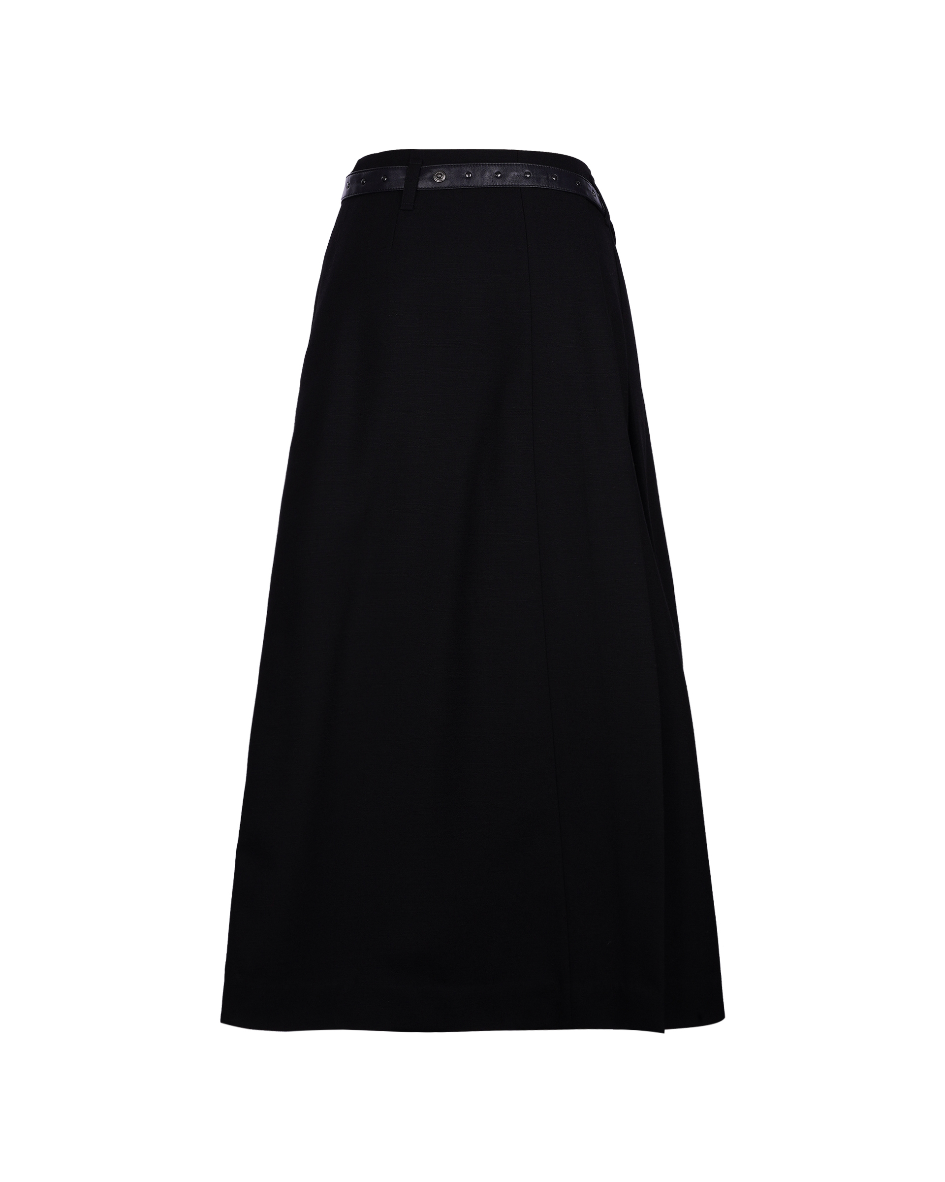 Far and Near Collection Wool-blend tie-front embroidered skirt