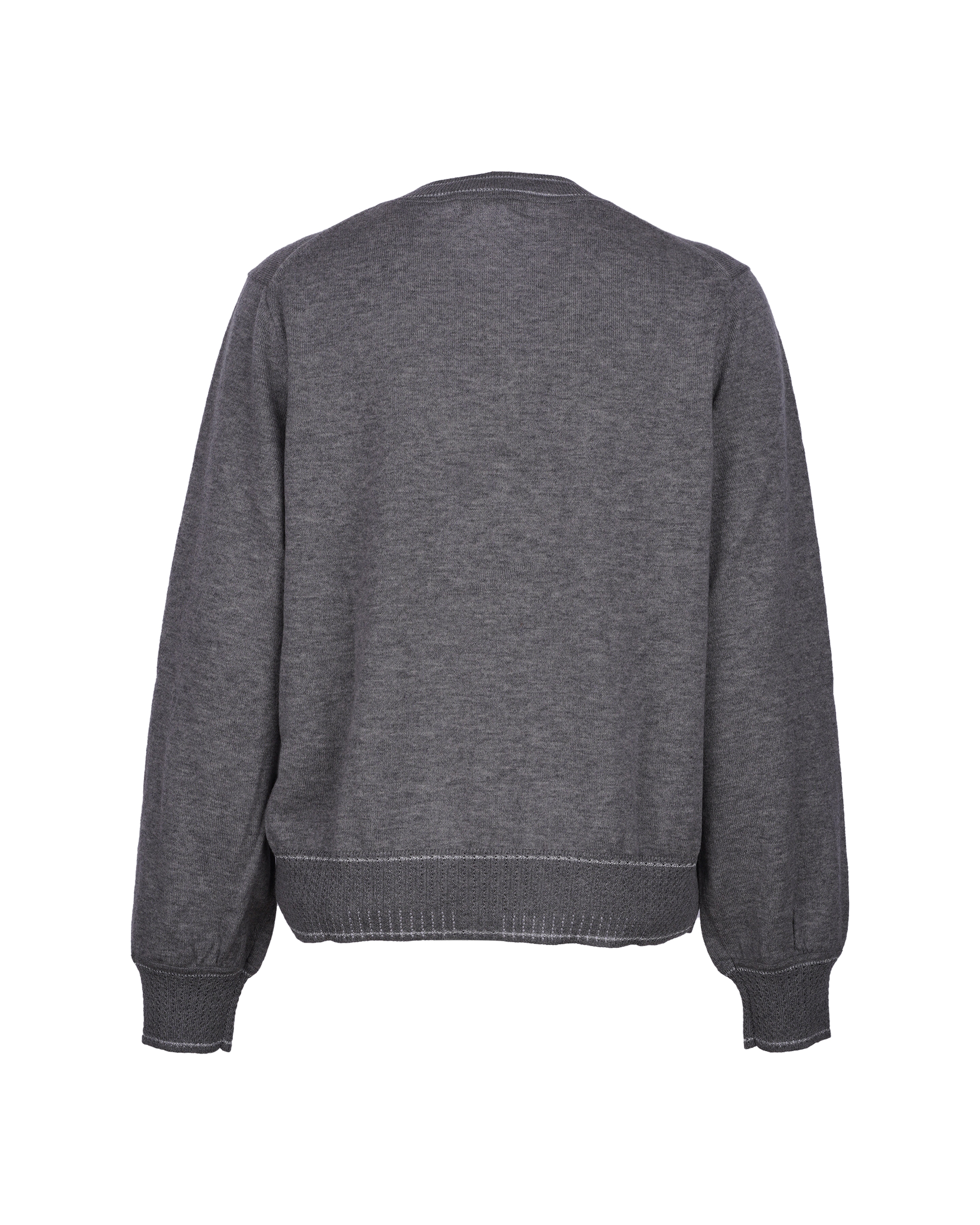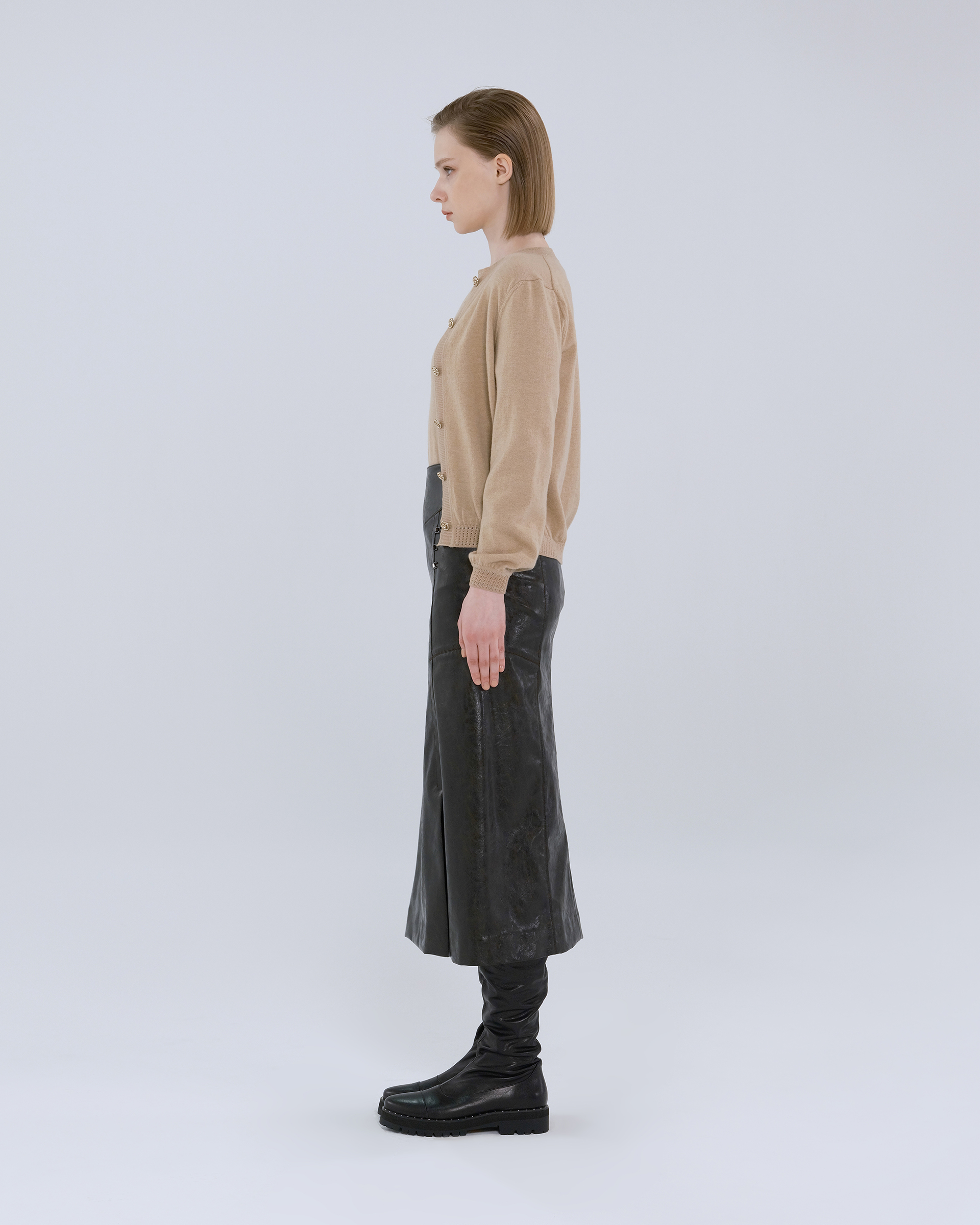 This piece is crafted from wool fabric, with metallic thread outlining the silhouette. Paired with tonal SC logo buttons, it offers a minimalist yet distinctly designed aesthetic.