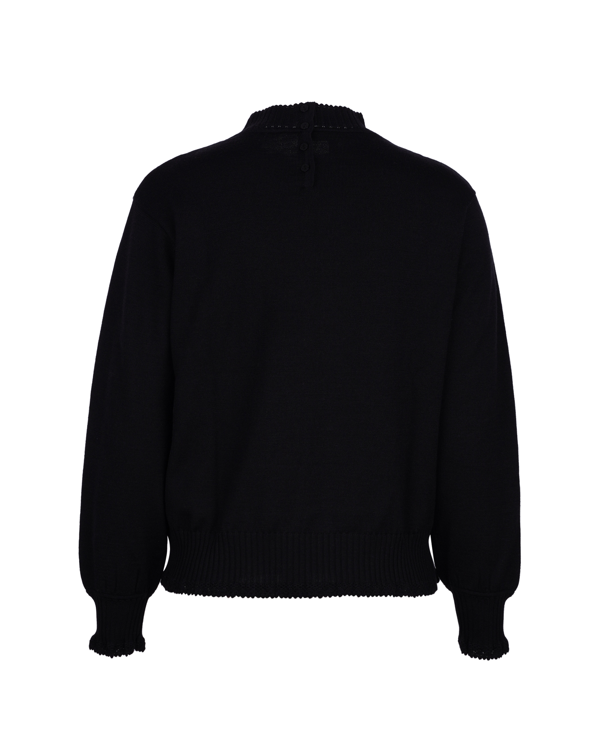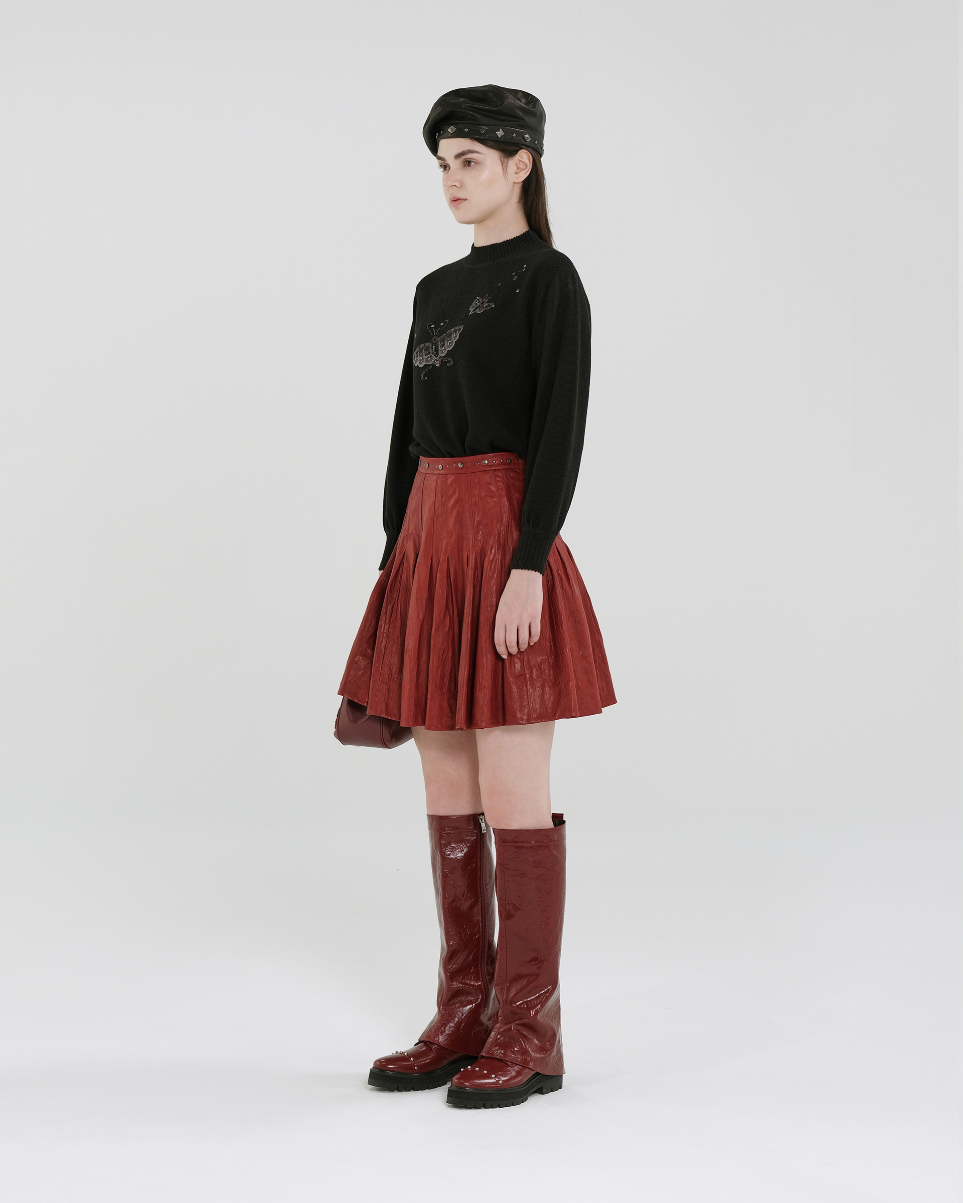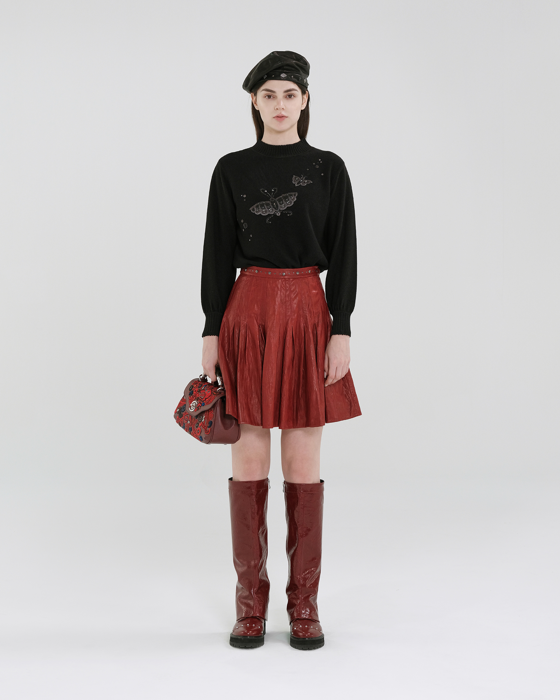 This piece is crafted from a silk-wool blend fabric, featuring delicate embroidery that outlines this season's butterfly motif. A casual knitwear piece for daily look.