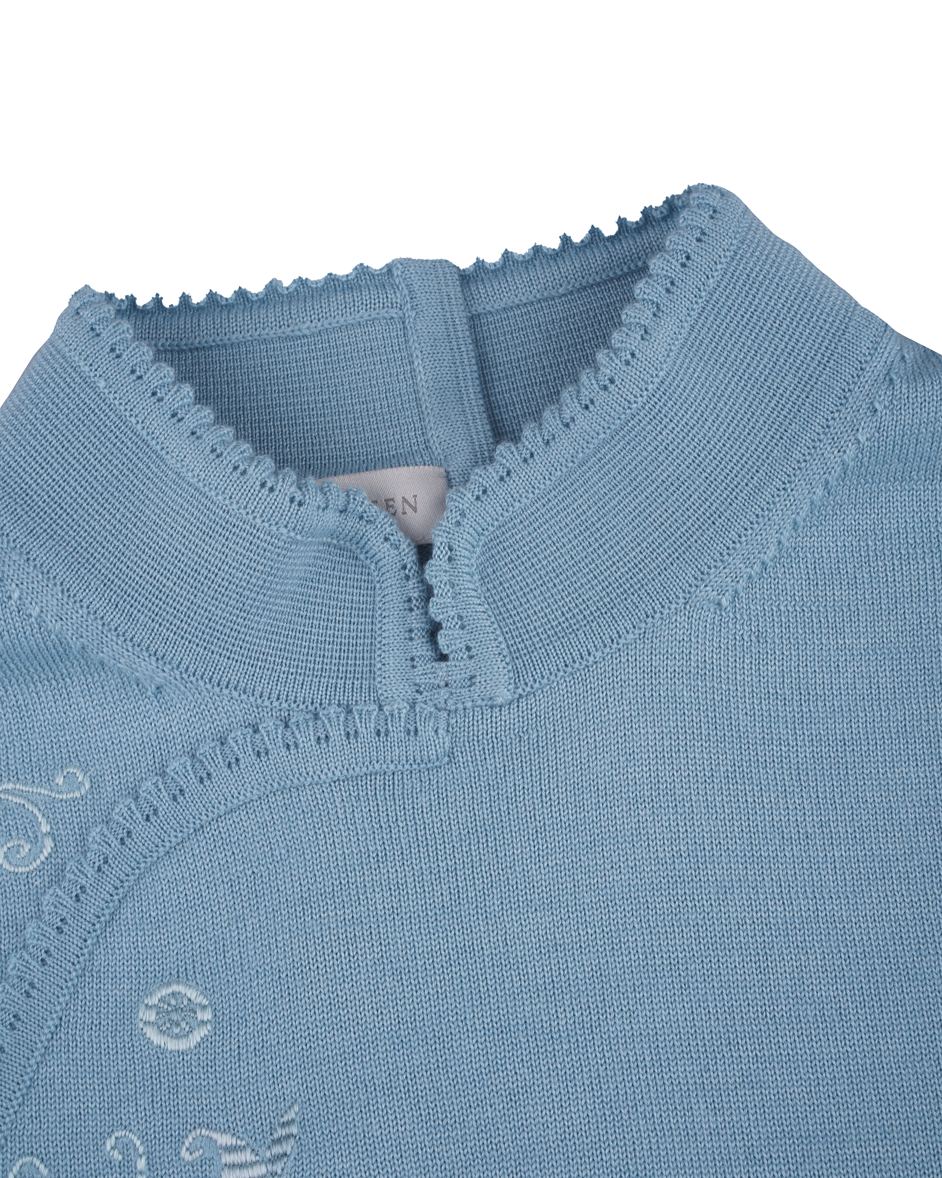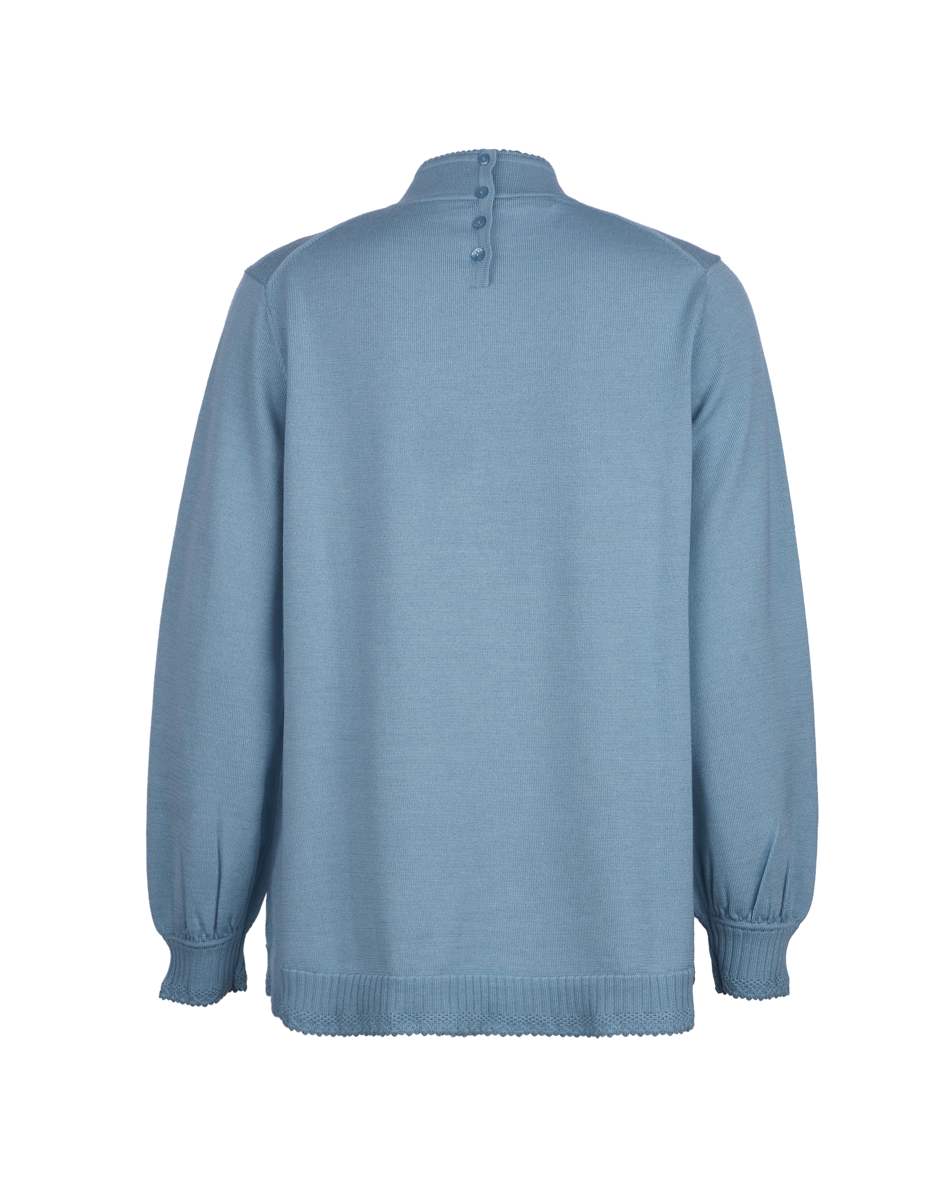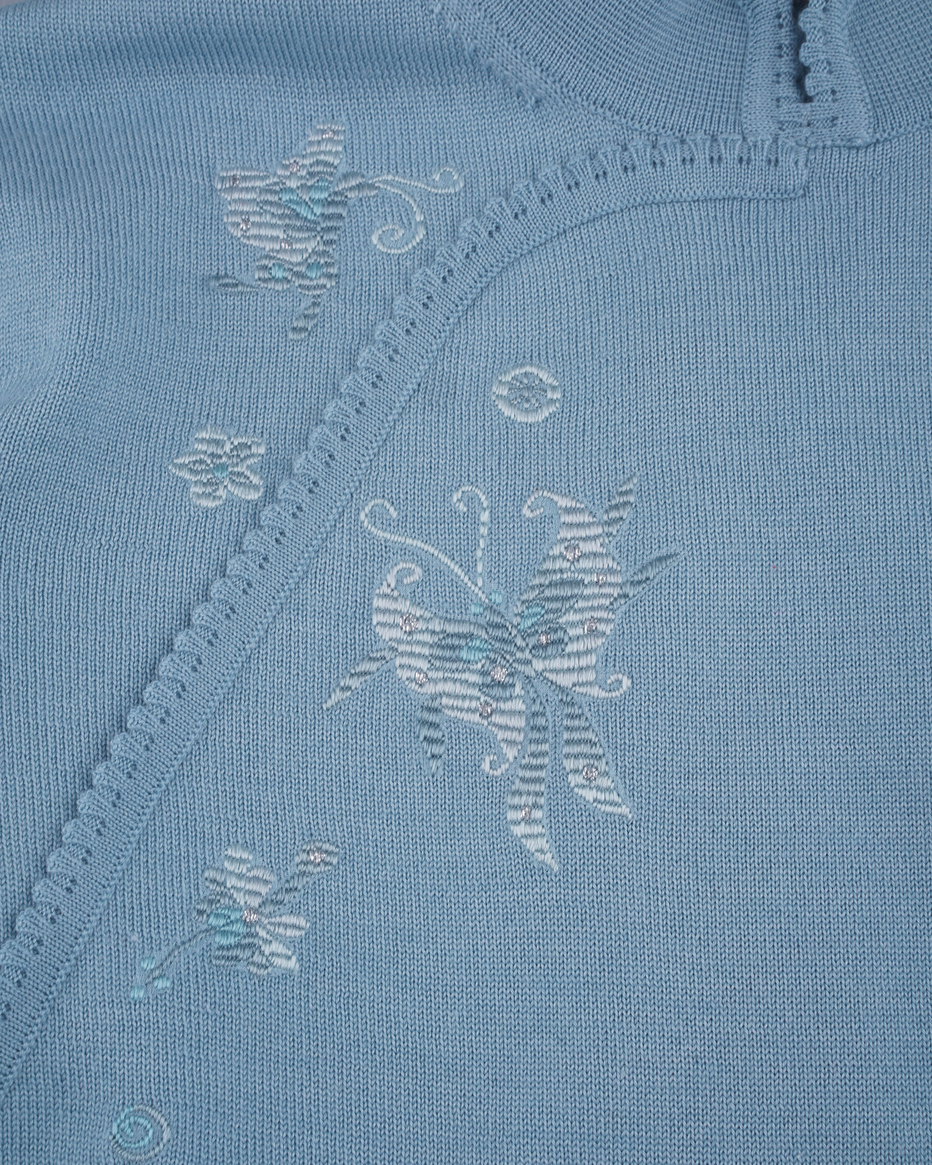 This piece is crafted from a silk-wool blend fabric, where delicate embroidery and subtle tones combine to create an elegant aesthetic.