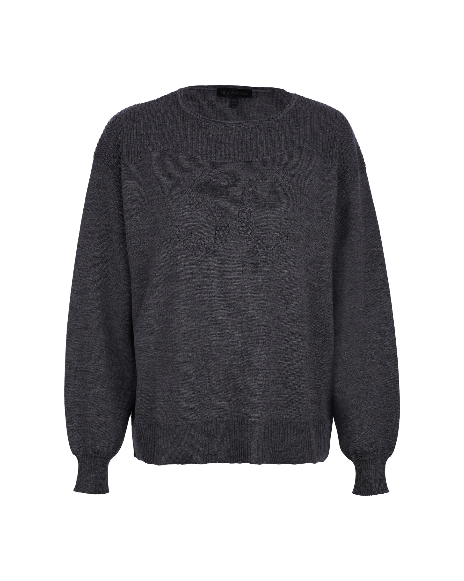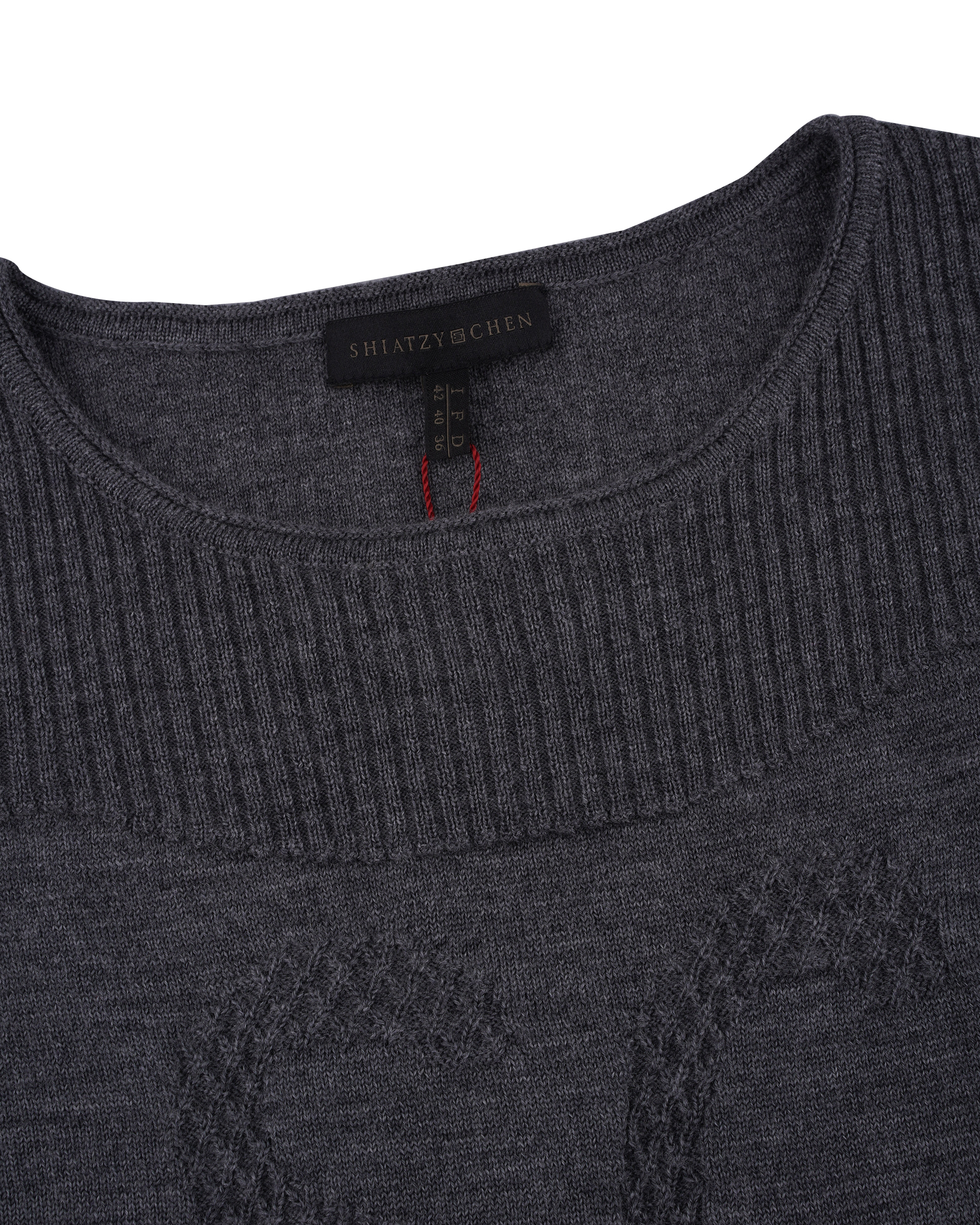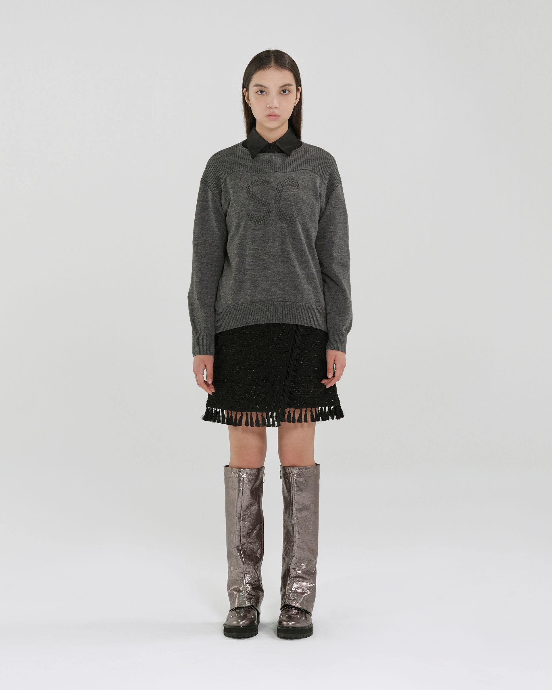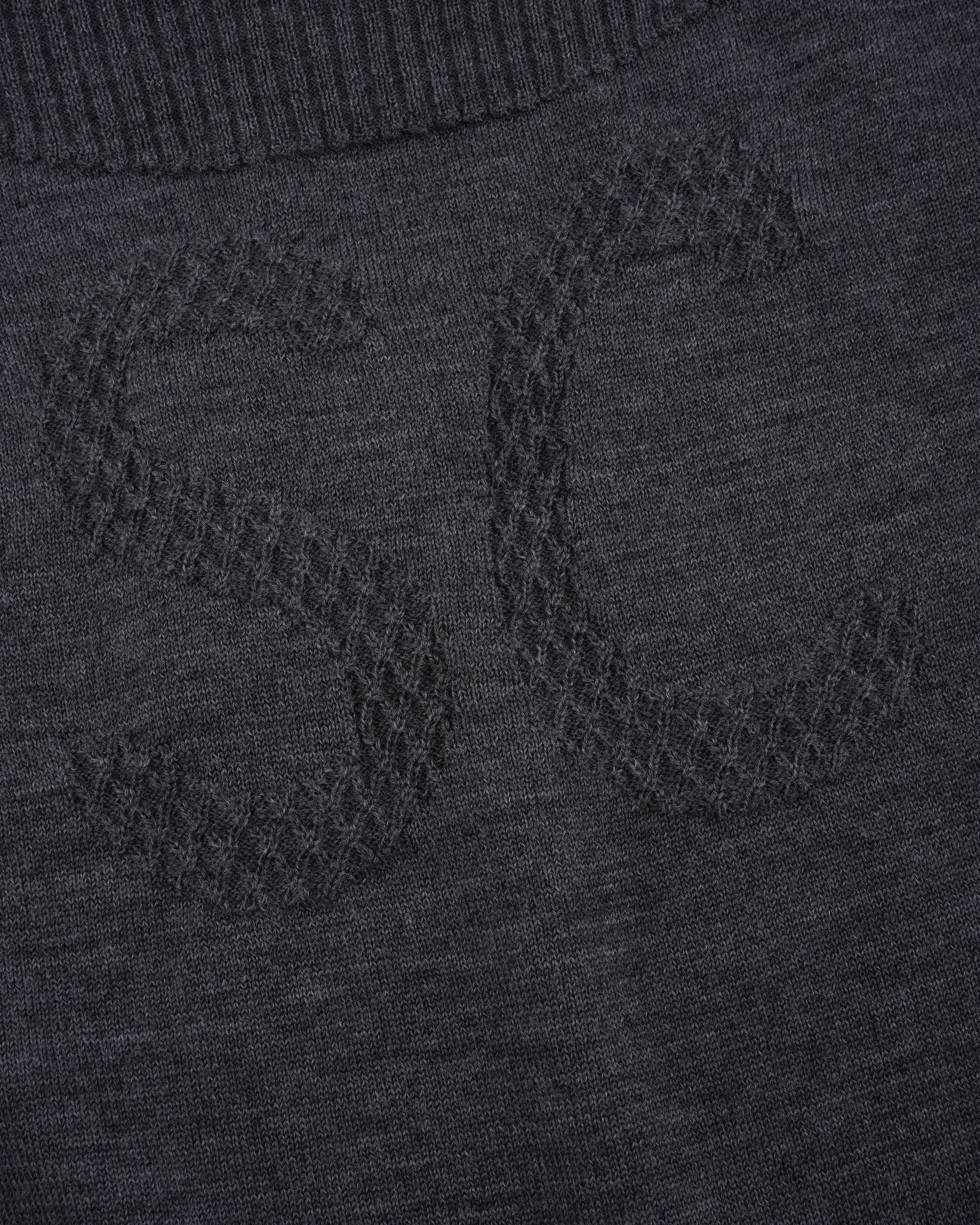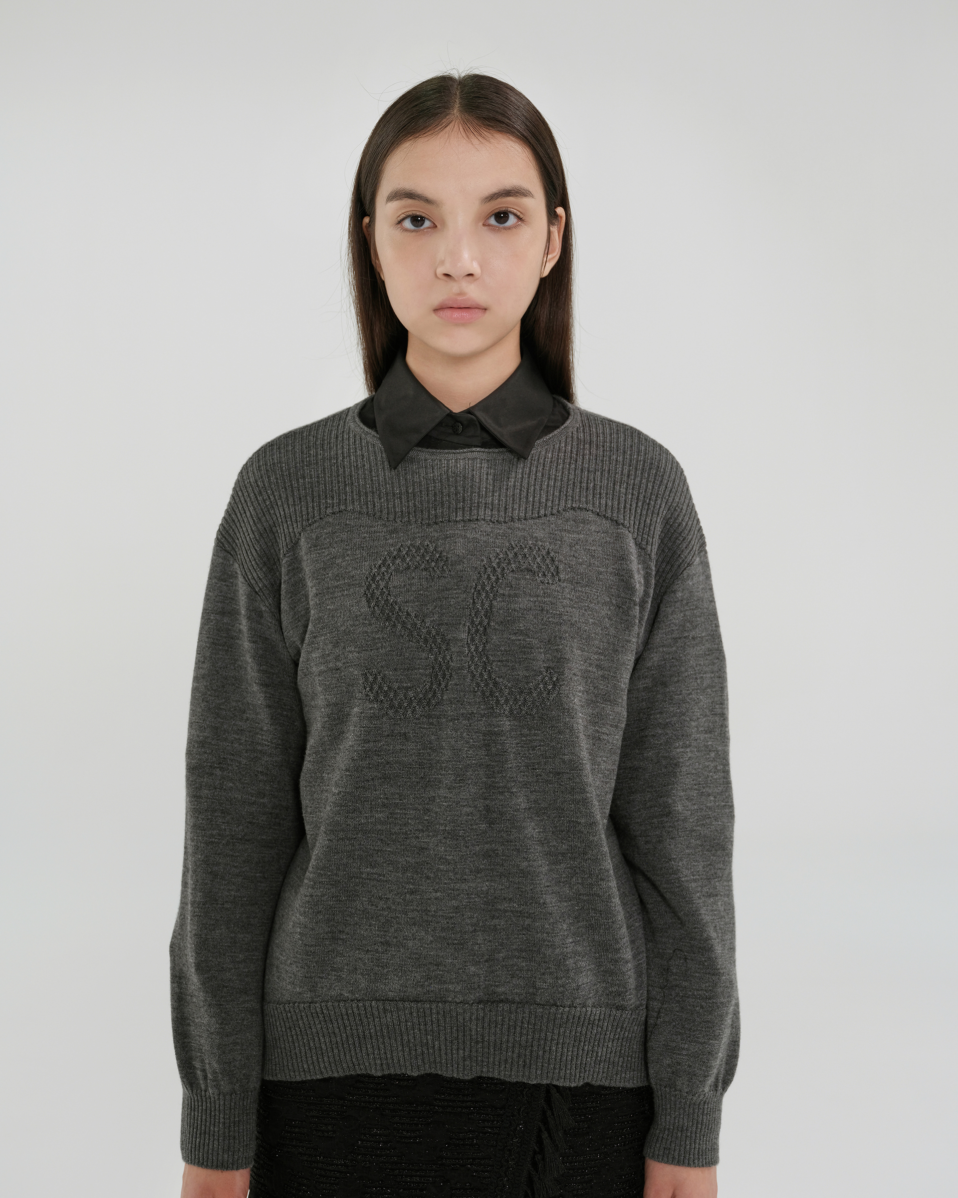 This piece is crafted from wool fabric, featuring a relaxed fit paired with a large SC logo design on the chest for a casual and creative look.