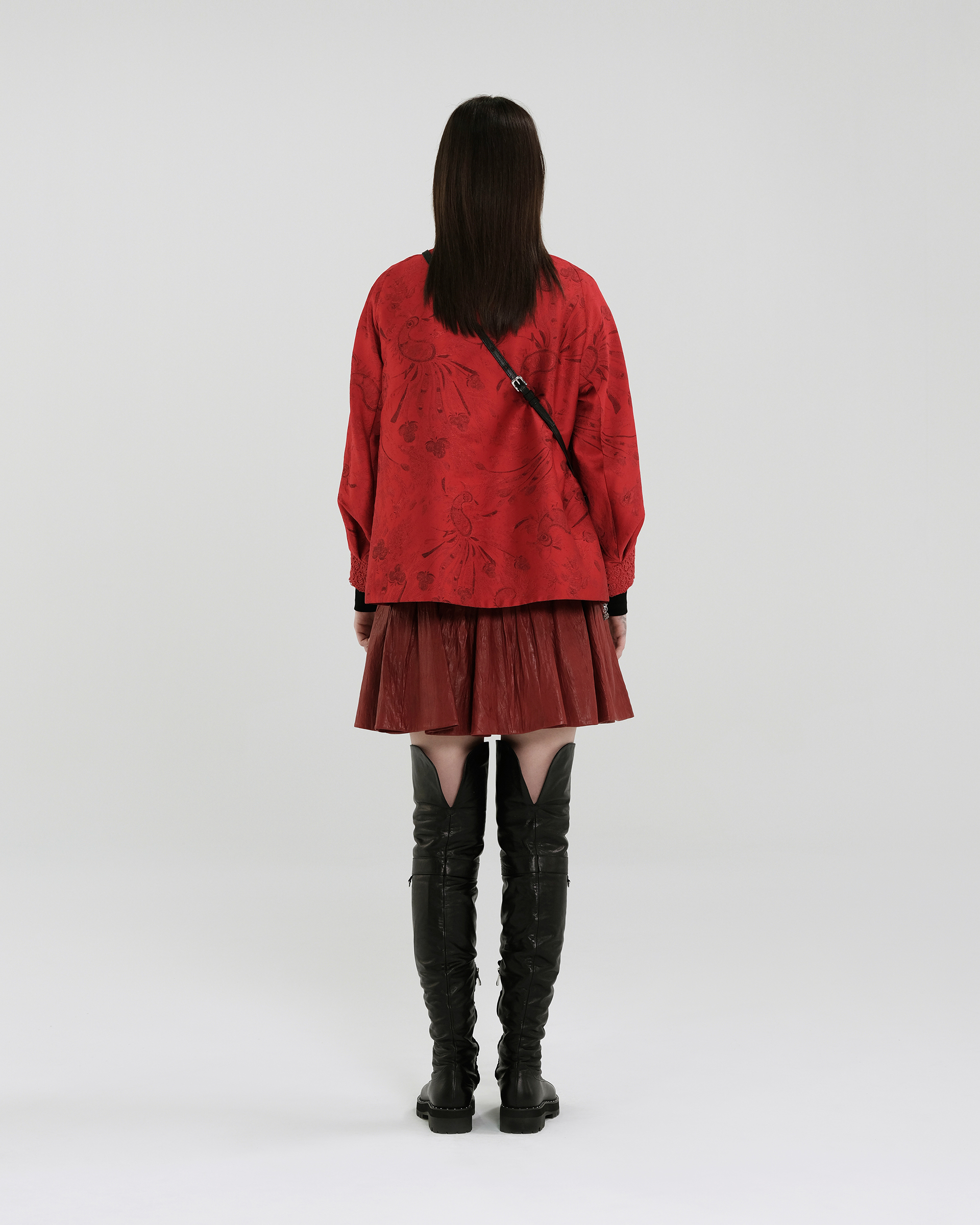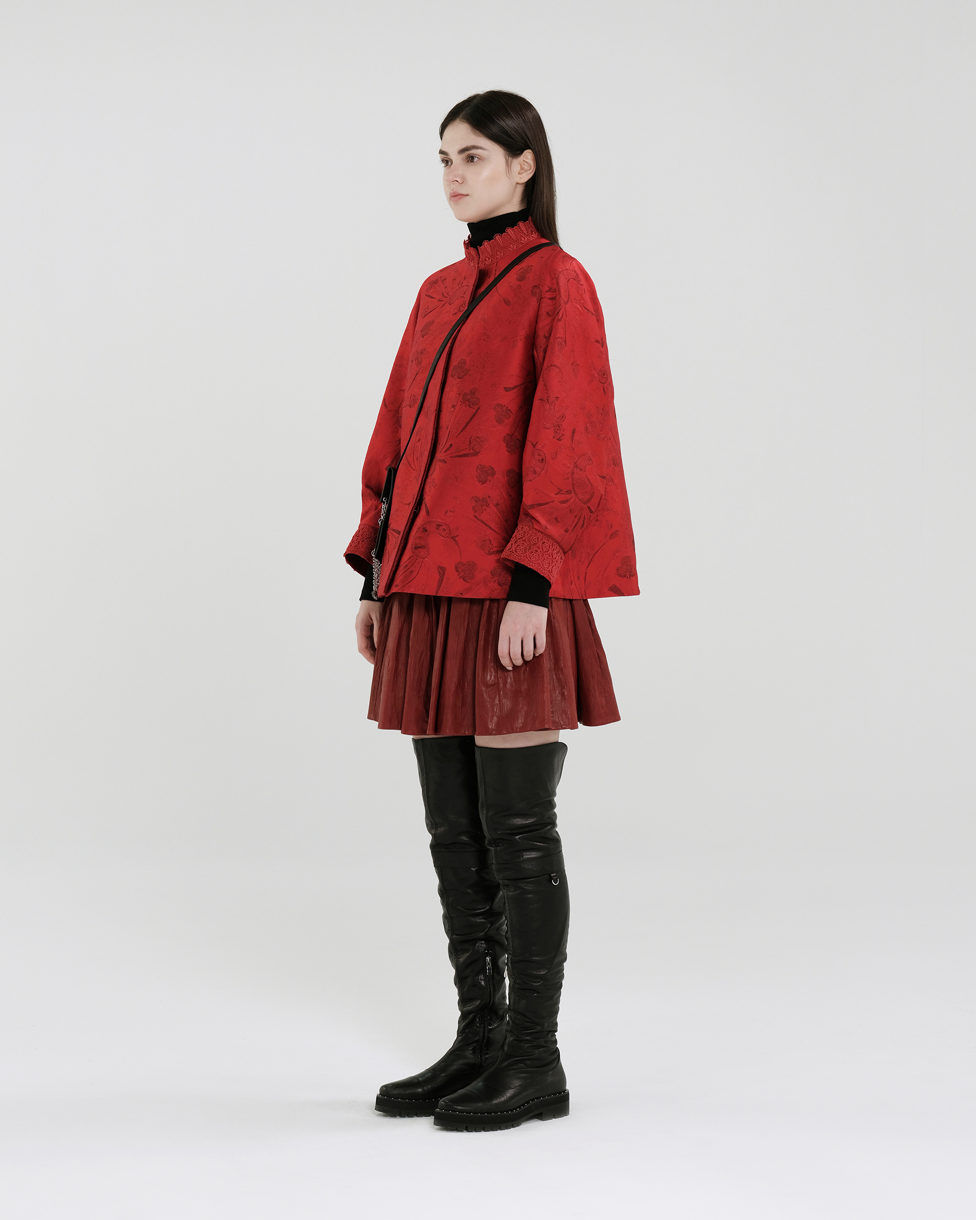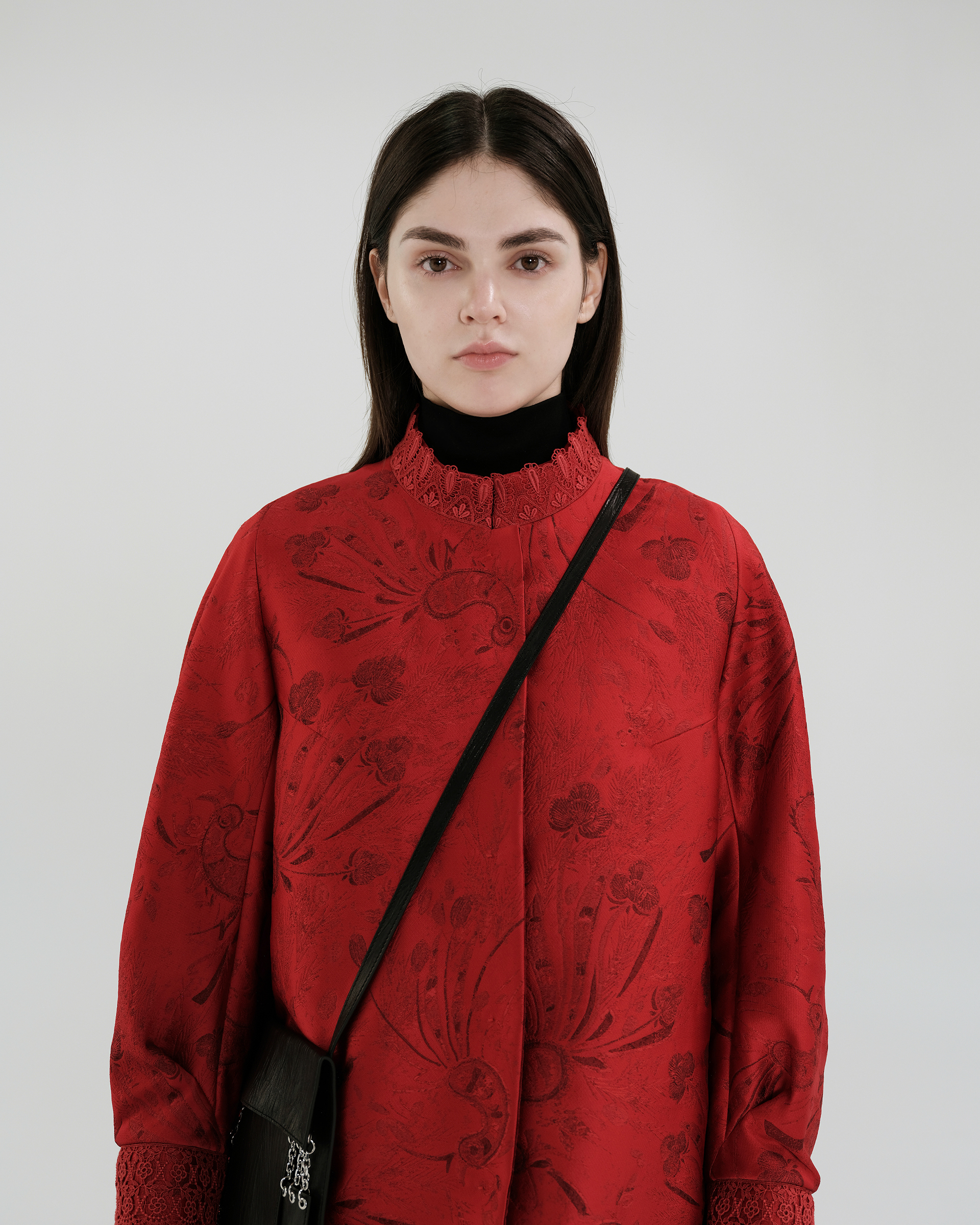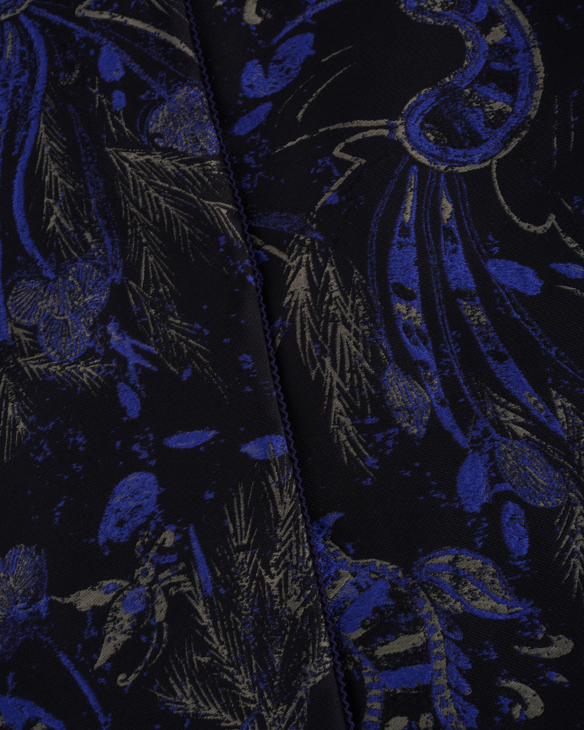 This season's opening print design draws inspiration from Miao totems and feather motifs, featuring jacquard fabric with a quilted lining for elegant warmth.
