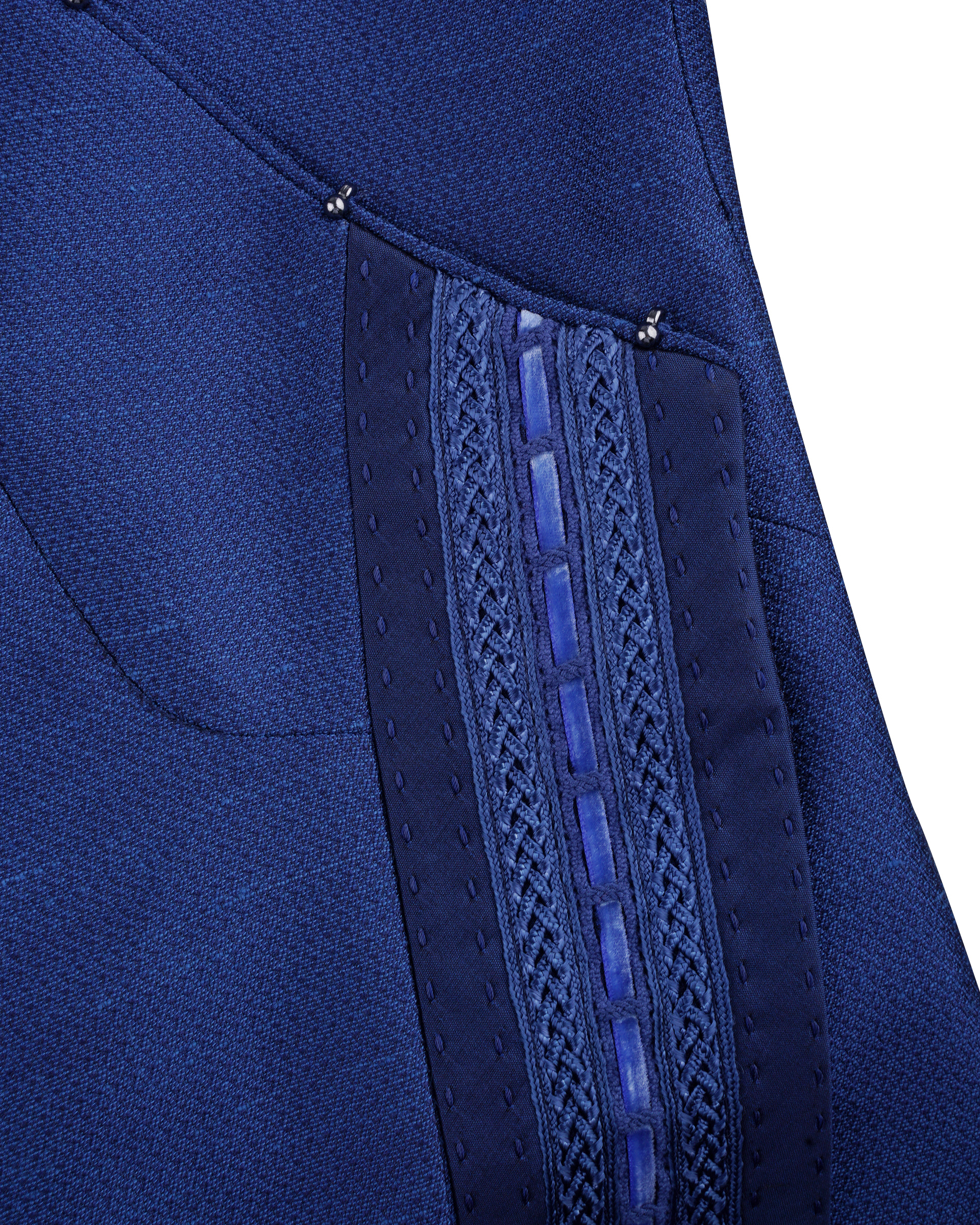 Drawing inspiration from Miao ethnic attire, traditional Chinese design incorporates tassel and woven ribbon elements to present an elegant and diverse sartorial style.