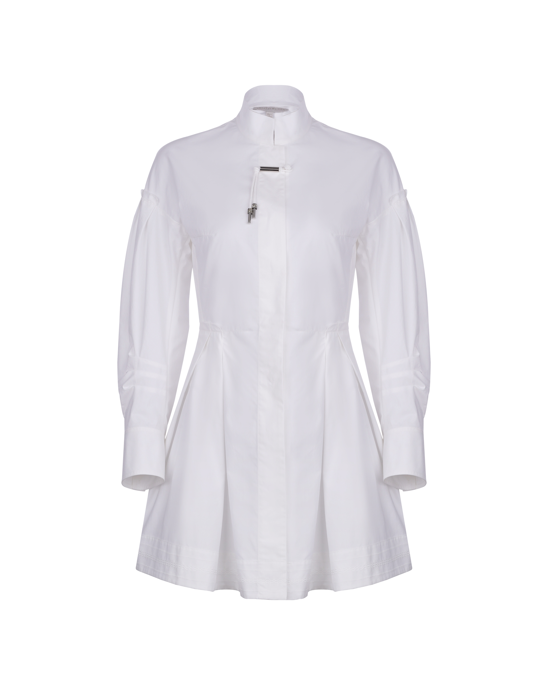 Crafted from 100% cotton fabric, the waist-cinching silhouette features a pleated skirt hem design that accentuates the waistline.