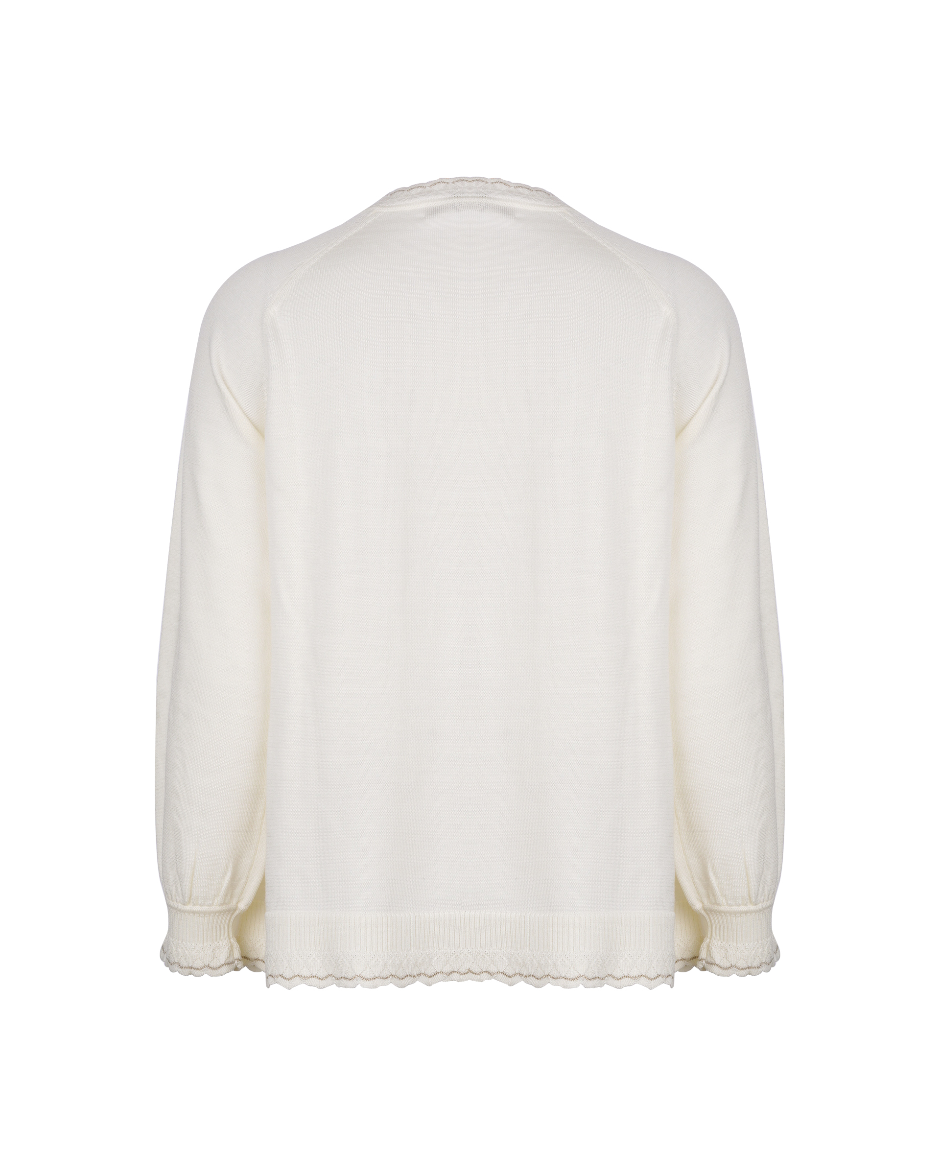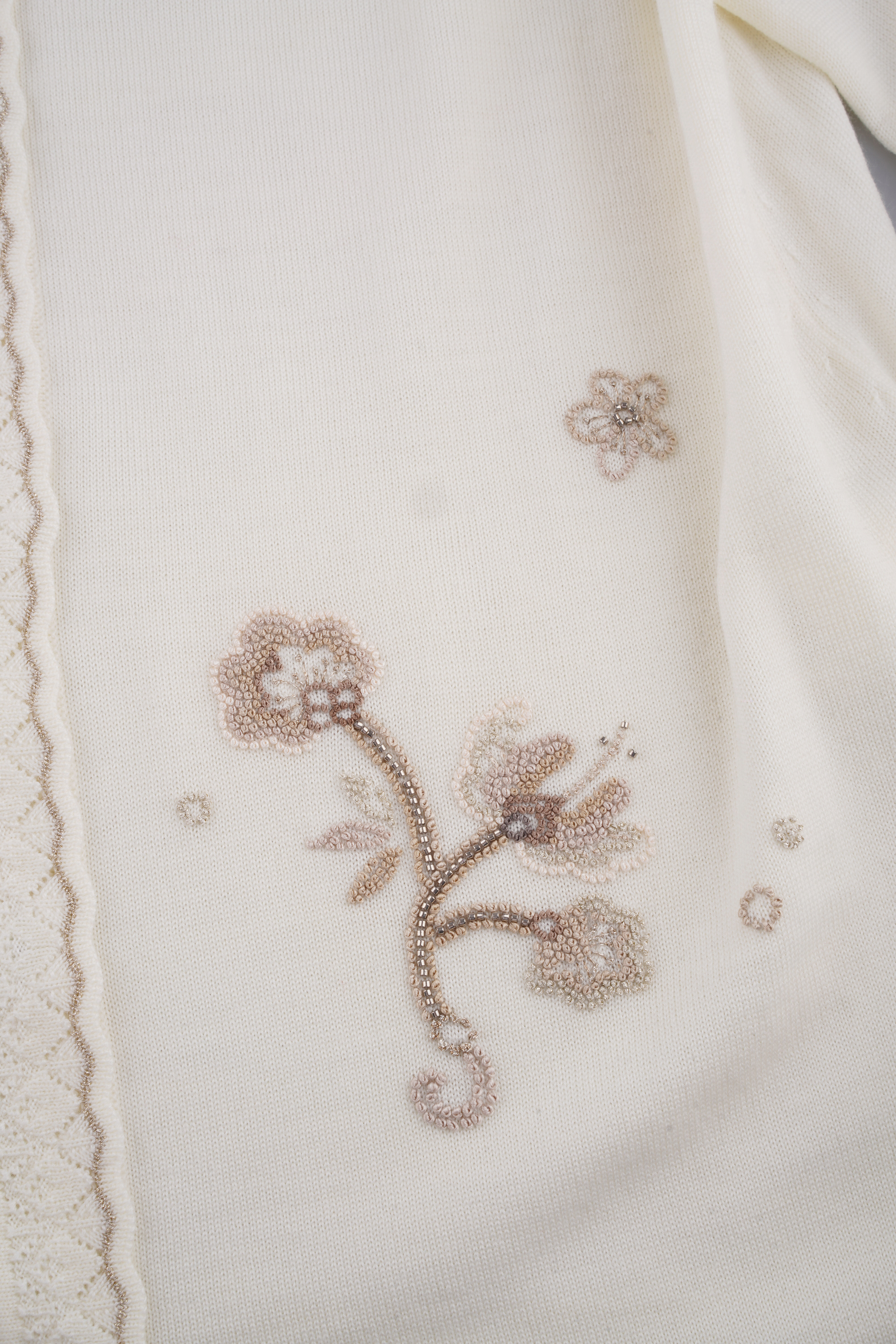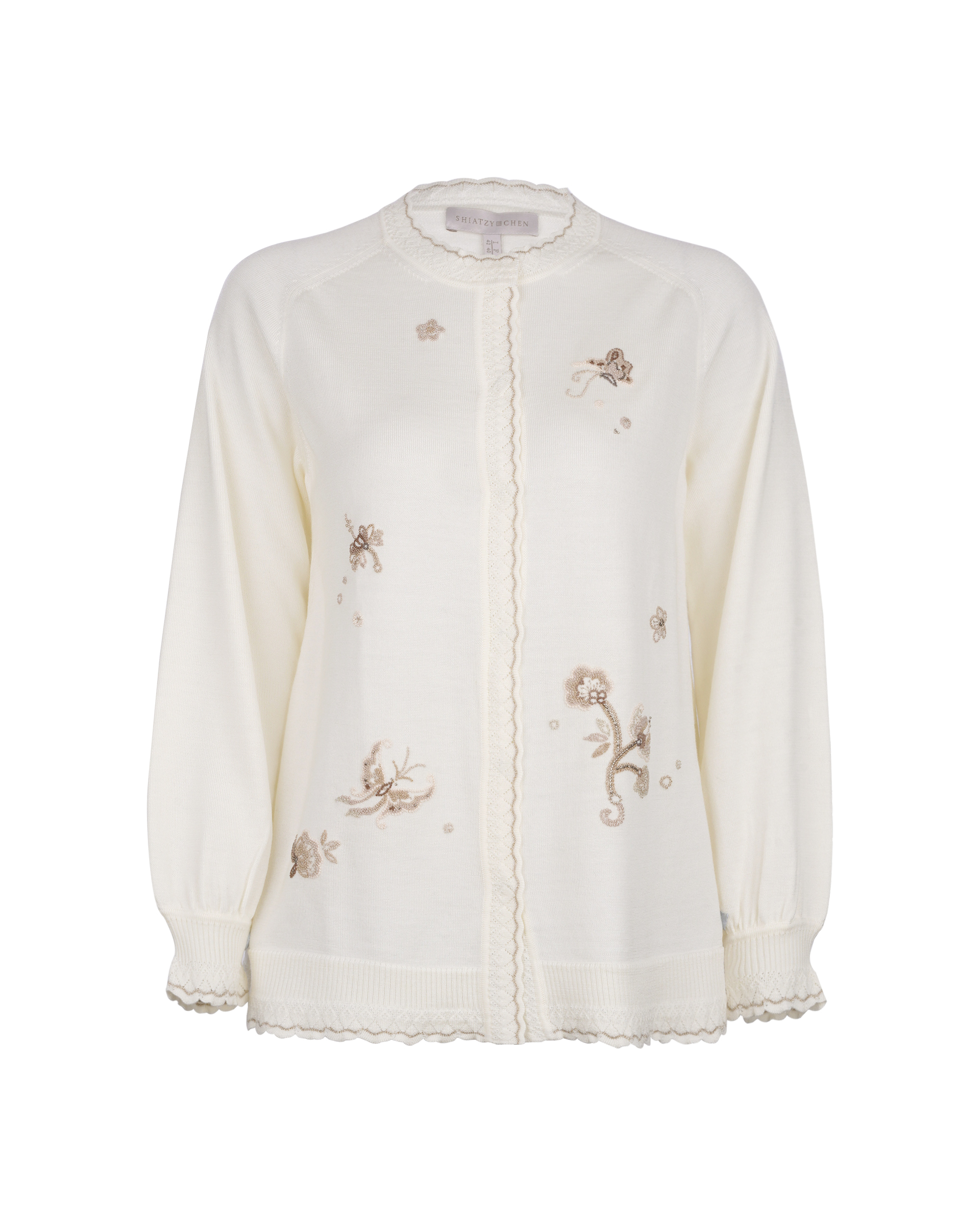 This piece is crafted from wool fabric, with delicate seed stitch embroidery outlining this season's butterfly motif. The tailored silhouette accentuates the beautiful weave.