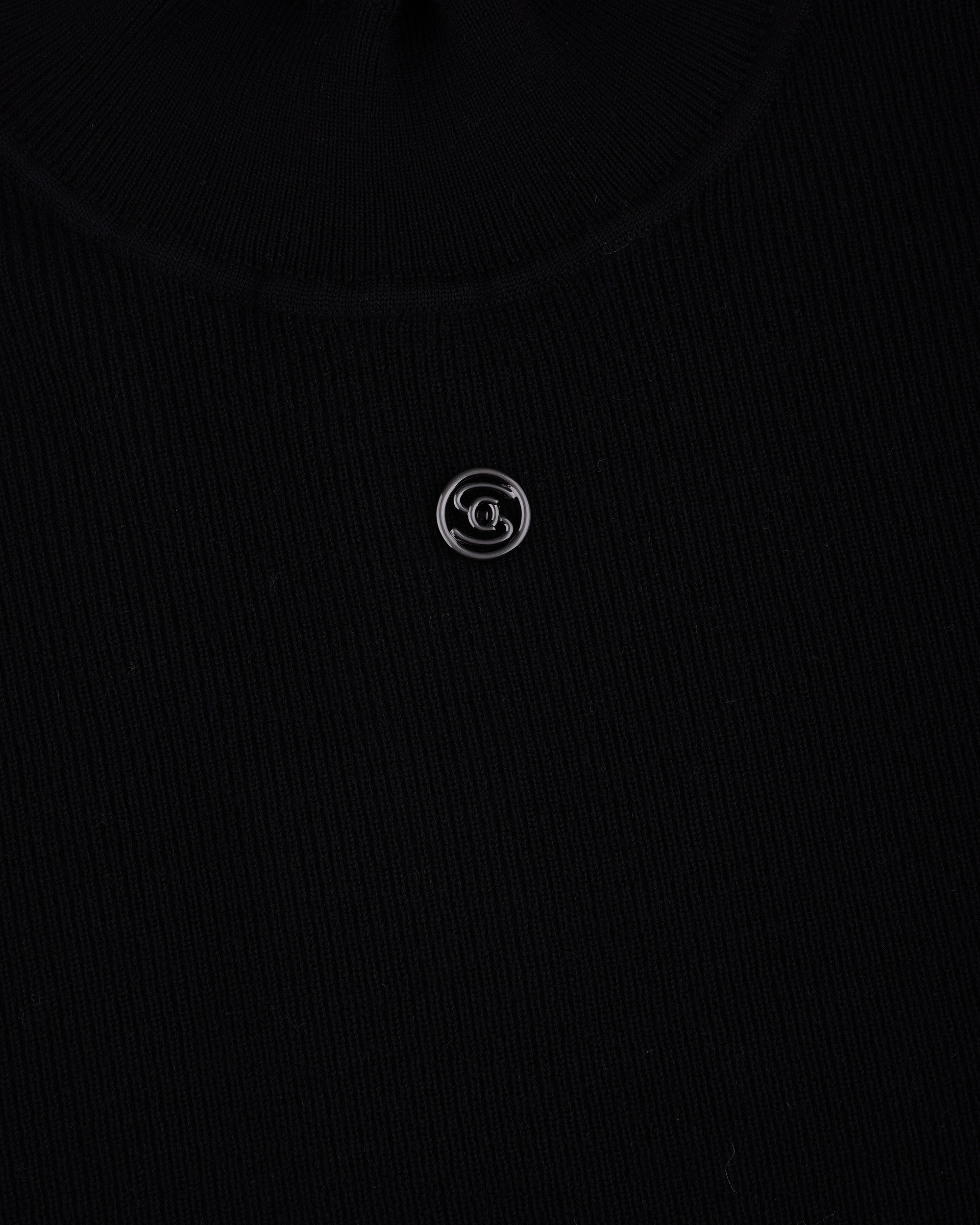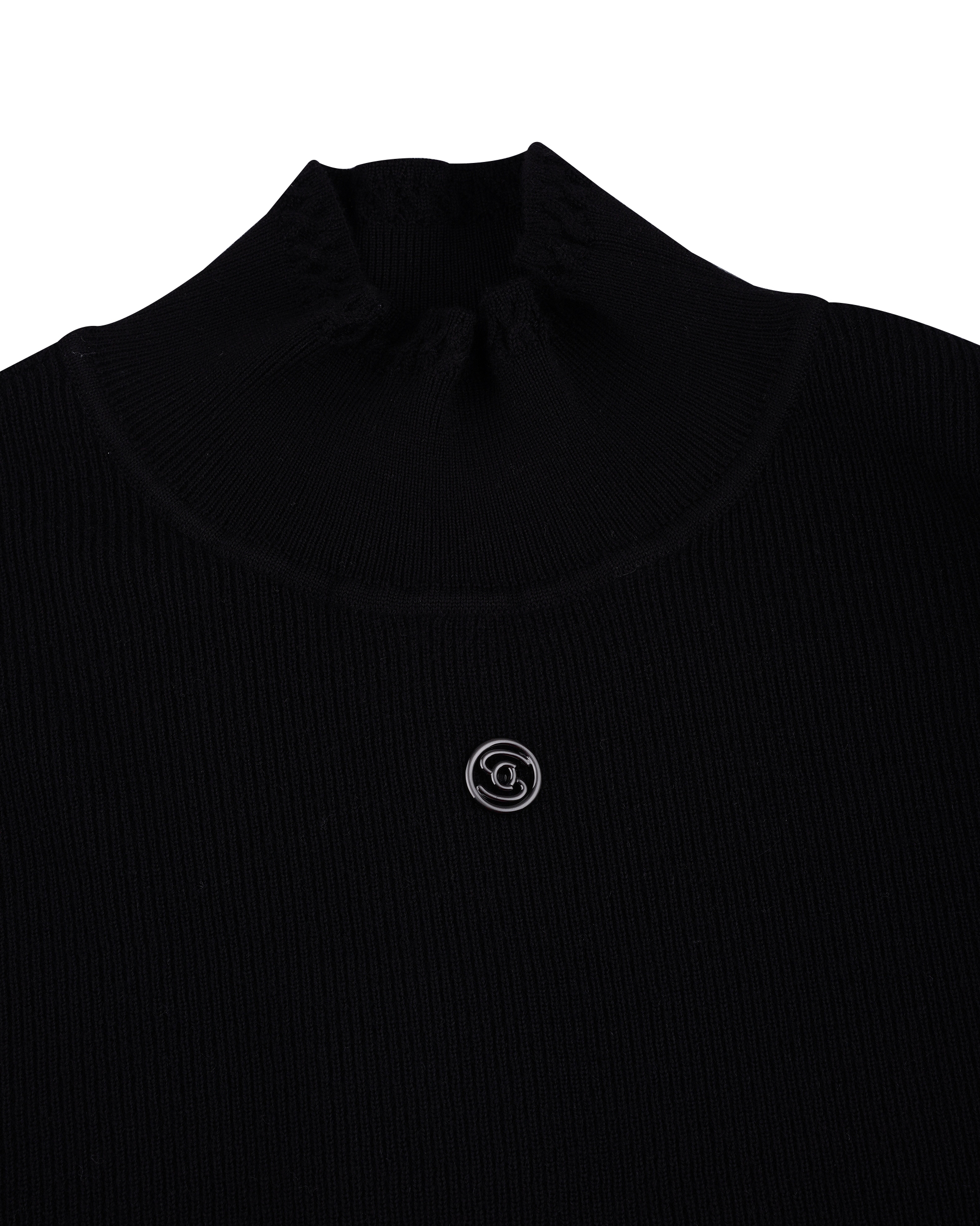This piece features a simple cut paired with a high neckline for a soft, refined look. The silver logo detail at the chest creates a focal point, showcasing understated yet exceptional taste.