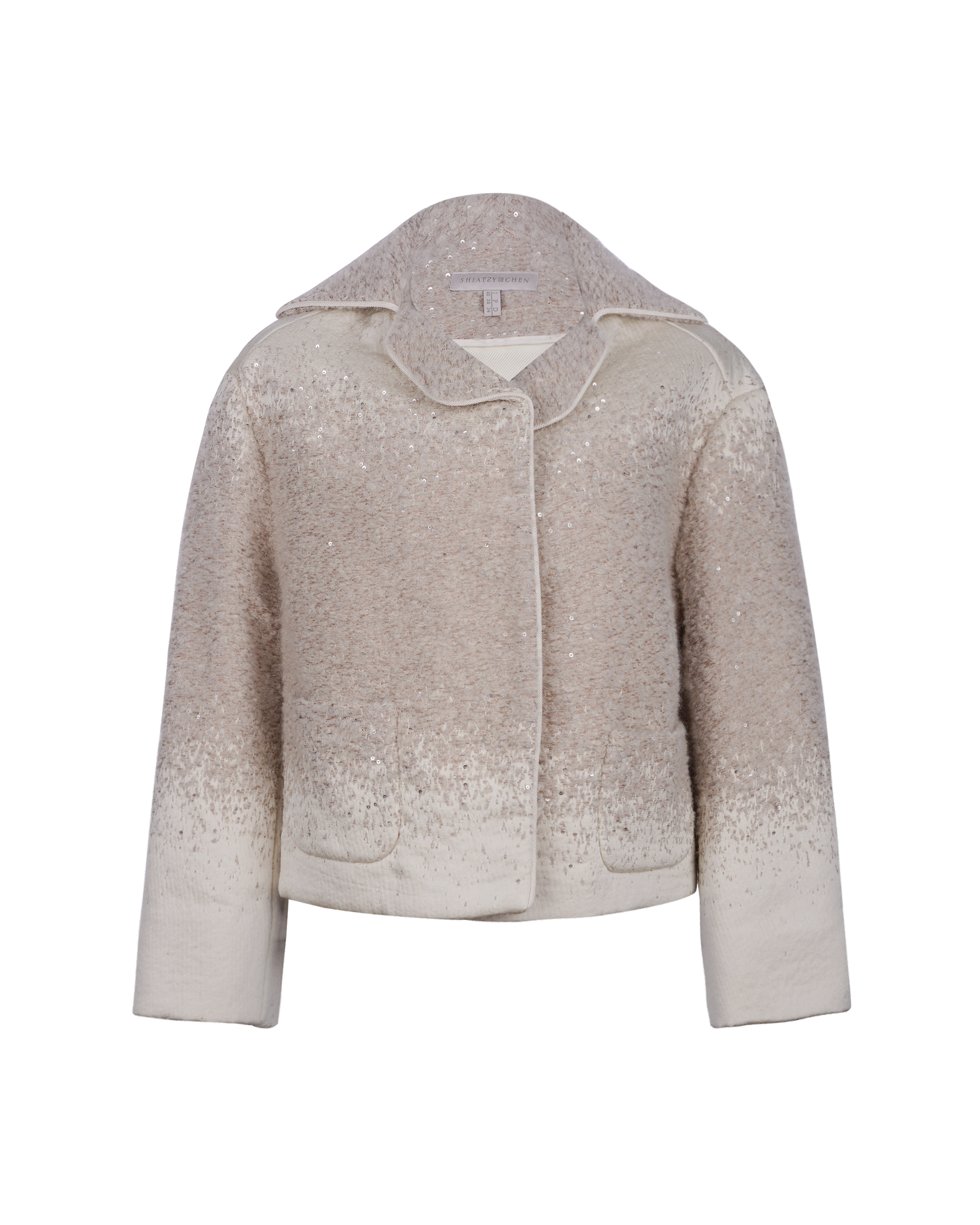 Crafted from a wool blend fabric, the gradient weave combined with sequin stitching delivers a rich texture and comfortable wearing experience.