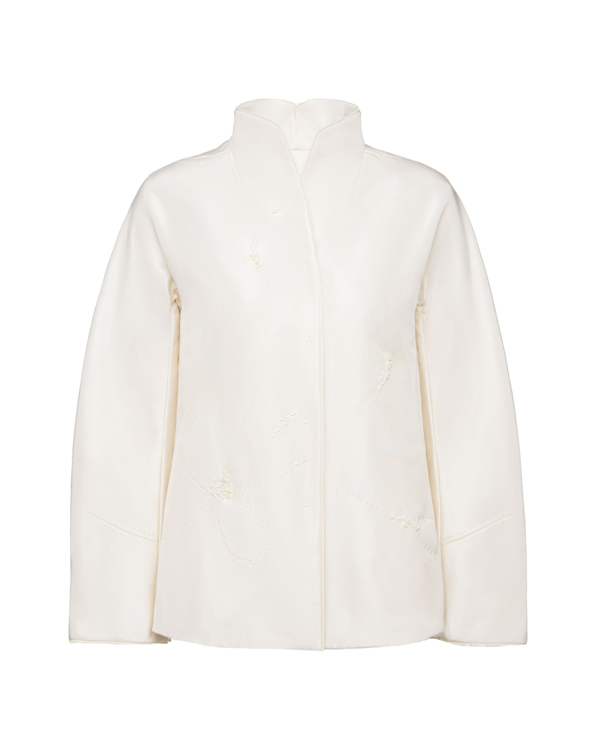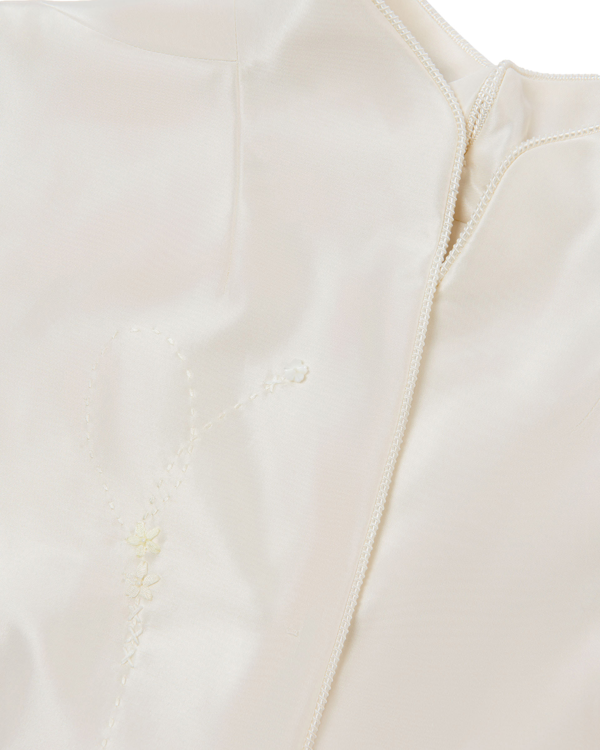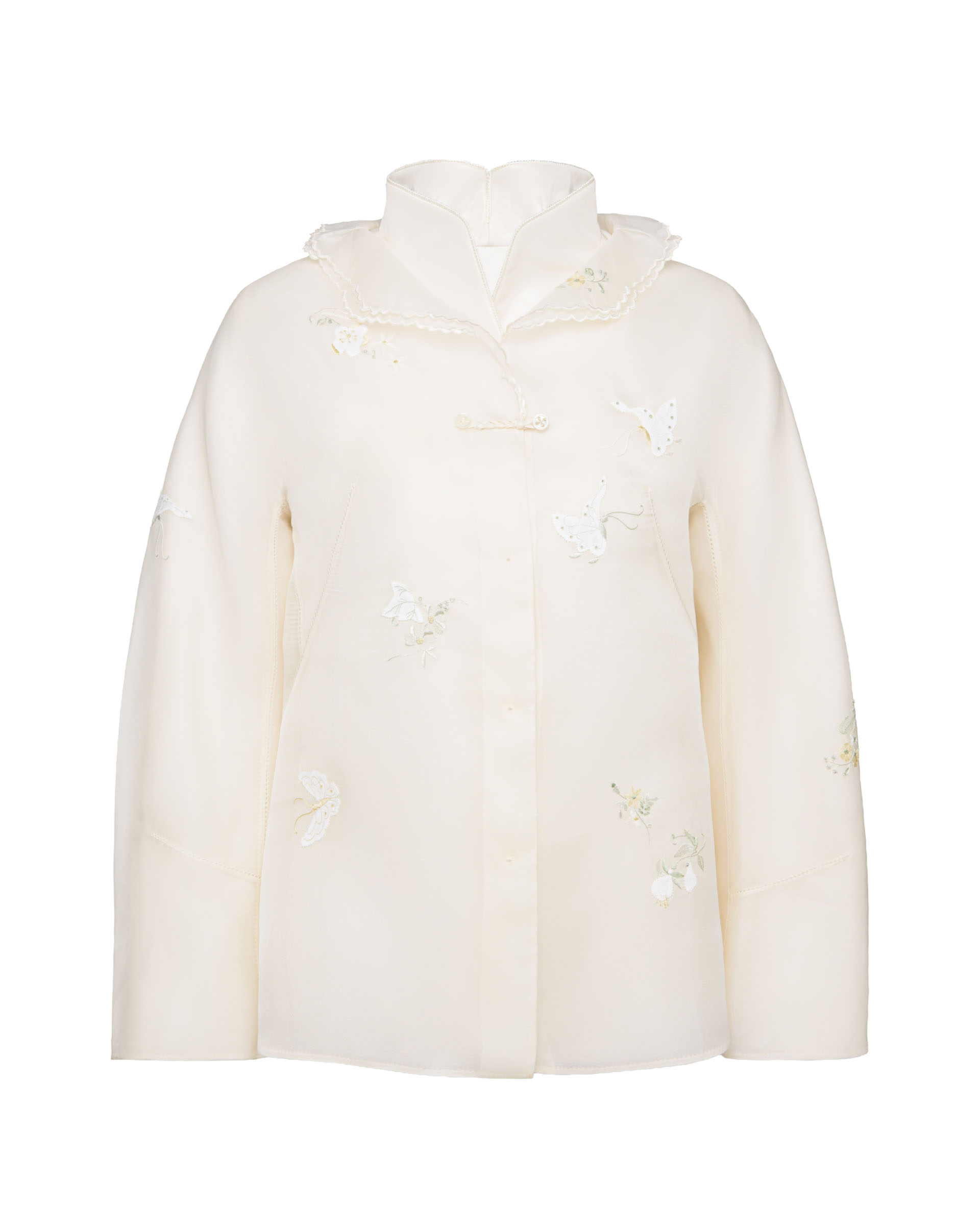 The embroidered outer layer with a quilted lining adapts to versatile seasonal styling; its refined tailoring blends with Chinese aesthetics to showcase an elegant demeanor.