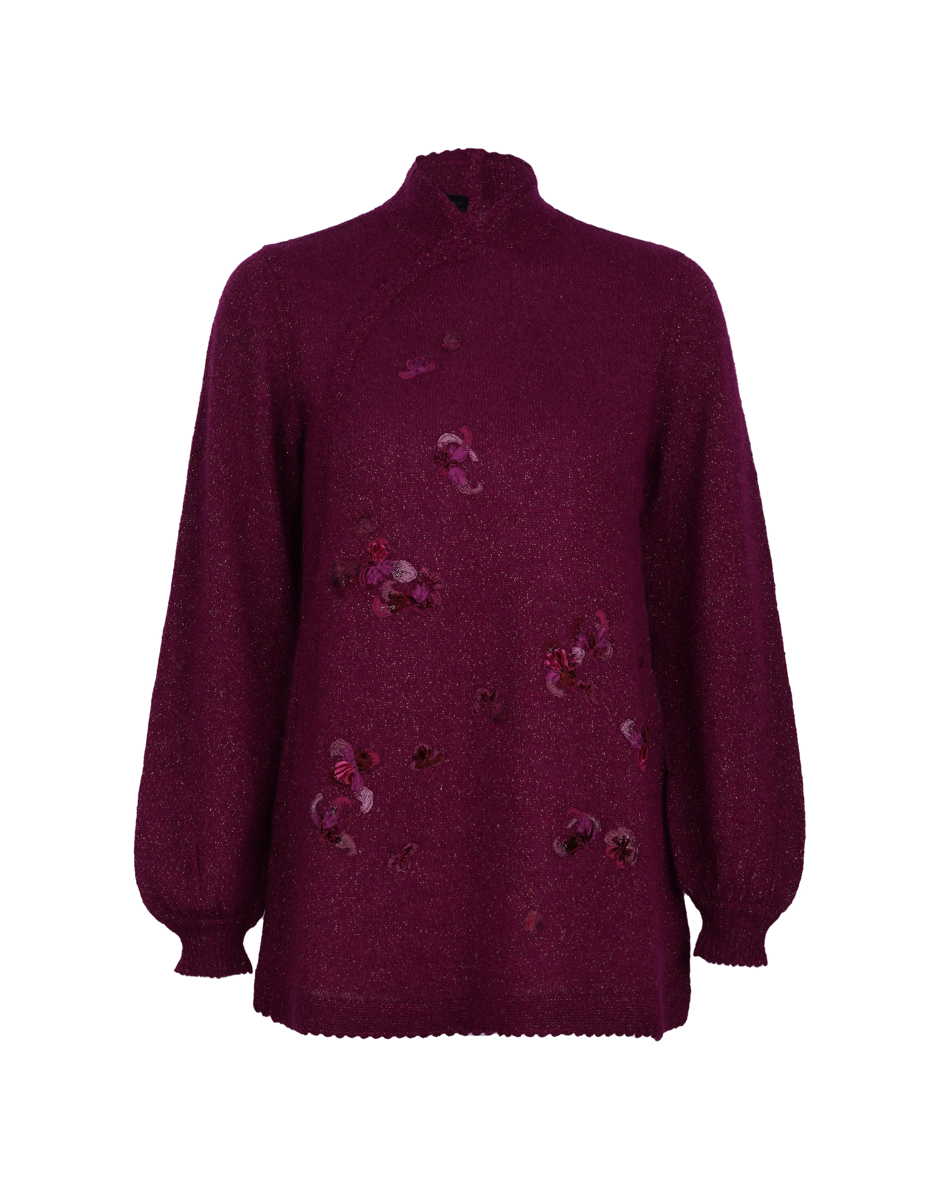 This piece is crafted from a blend of alpaca wool fabric, featuring a classic stand-up collar with a diagonal placket. The design combines hand-embroidery to showcase an elegant Chinese aesthetic.