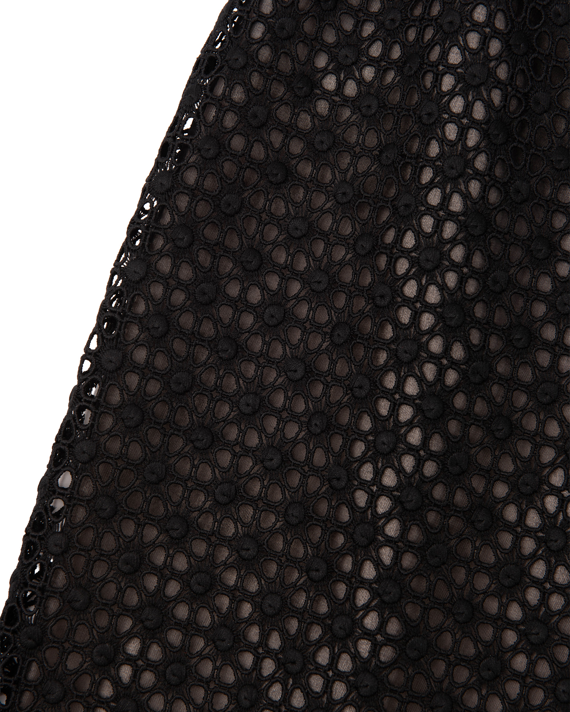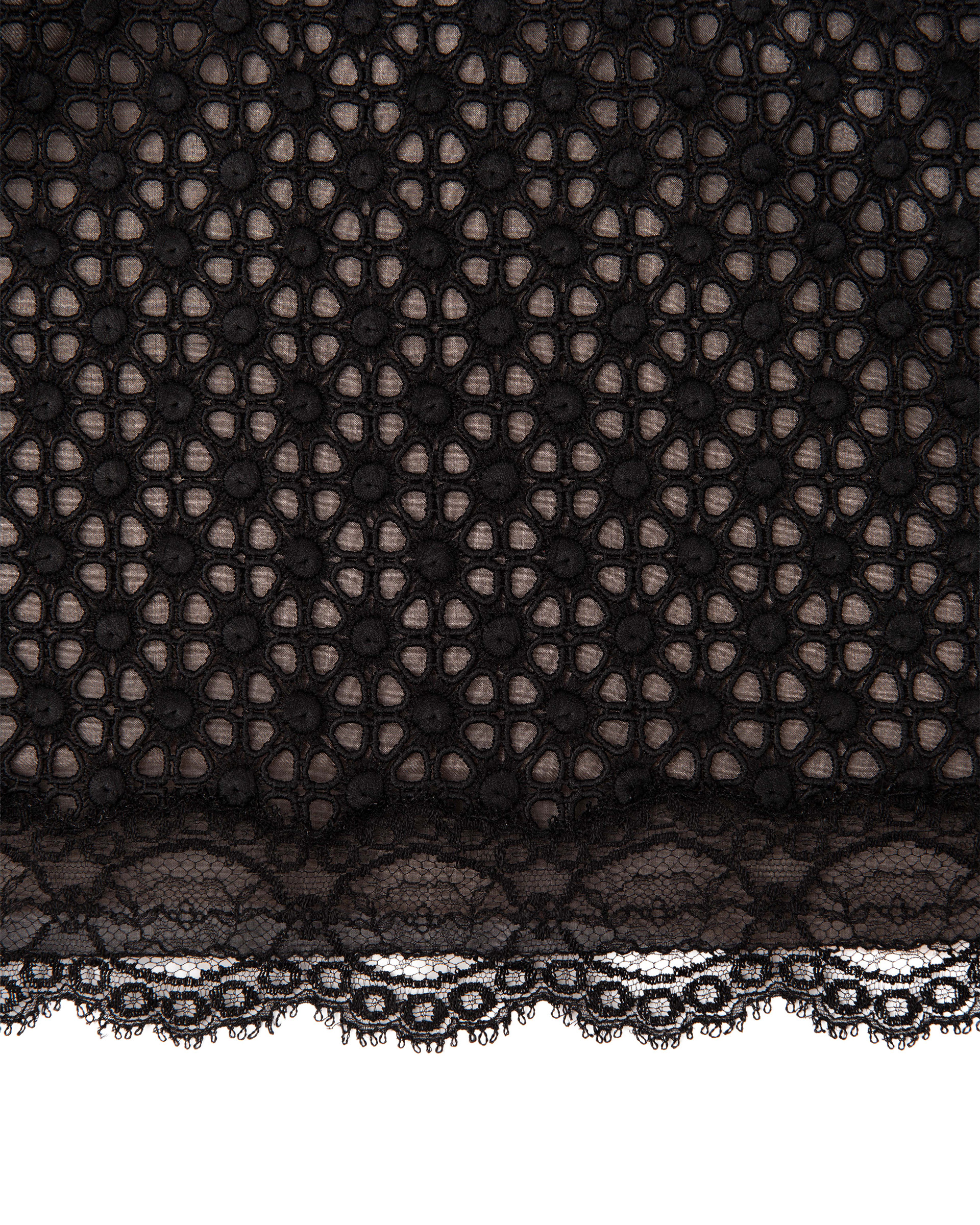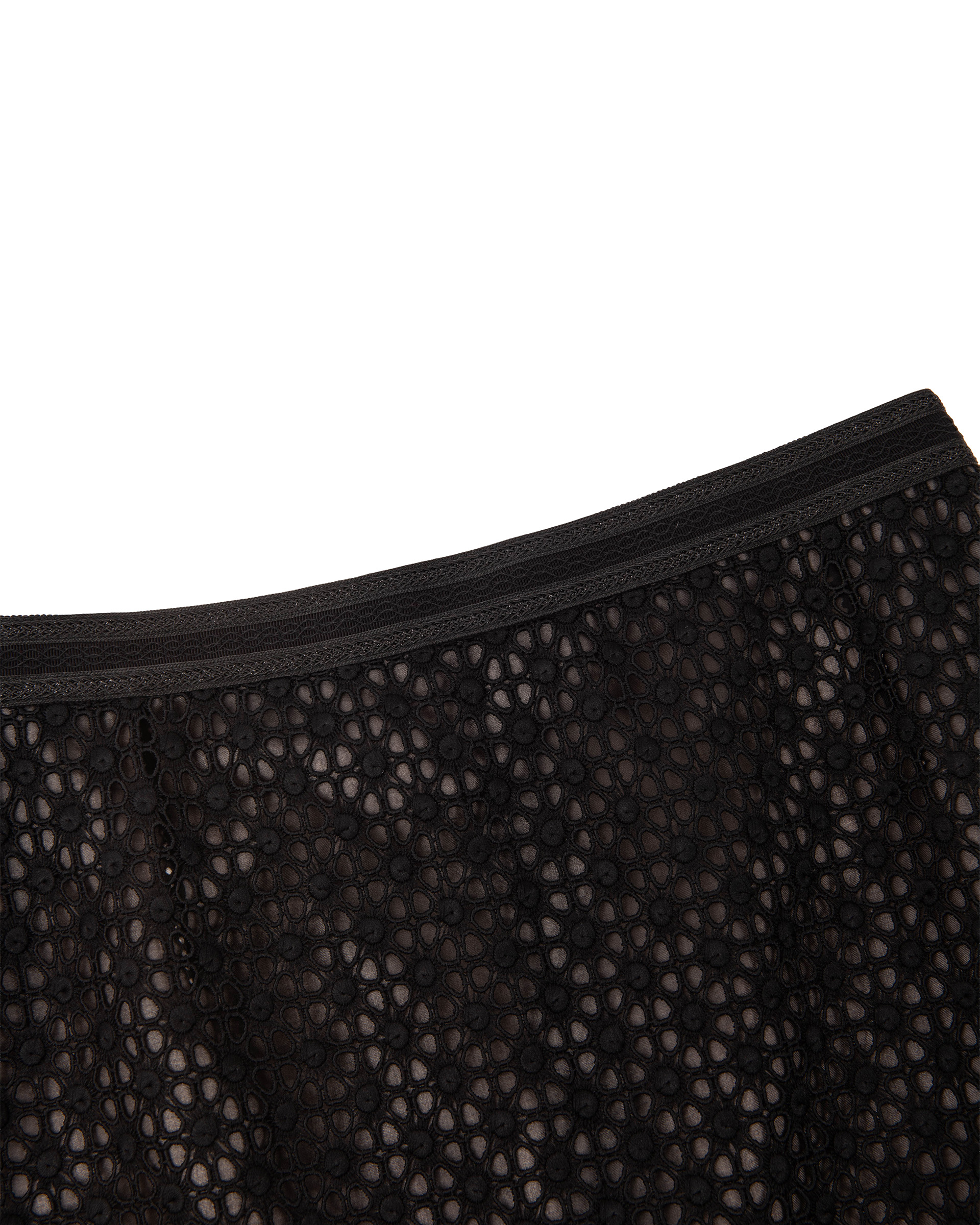 This piece is crafted from openwork lace fabric and features a silk lining for a comfortable fit. It can be paired with bottoms from the same collection to create a complete outfit.