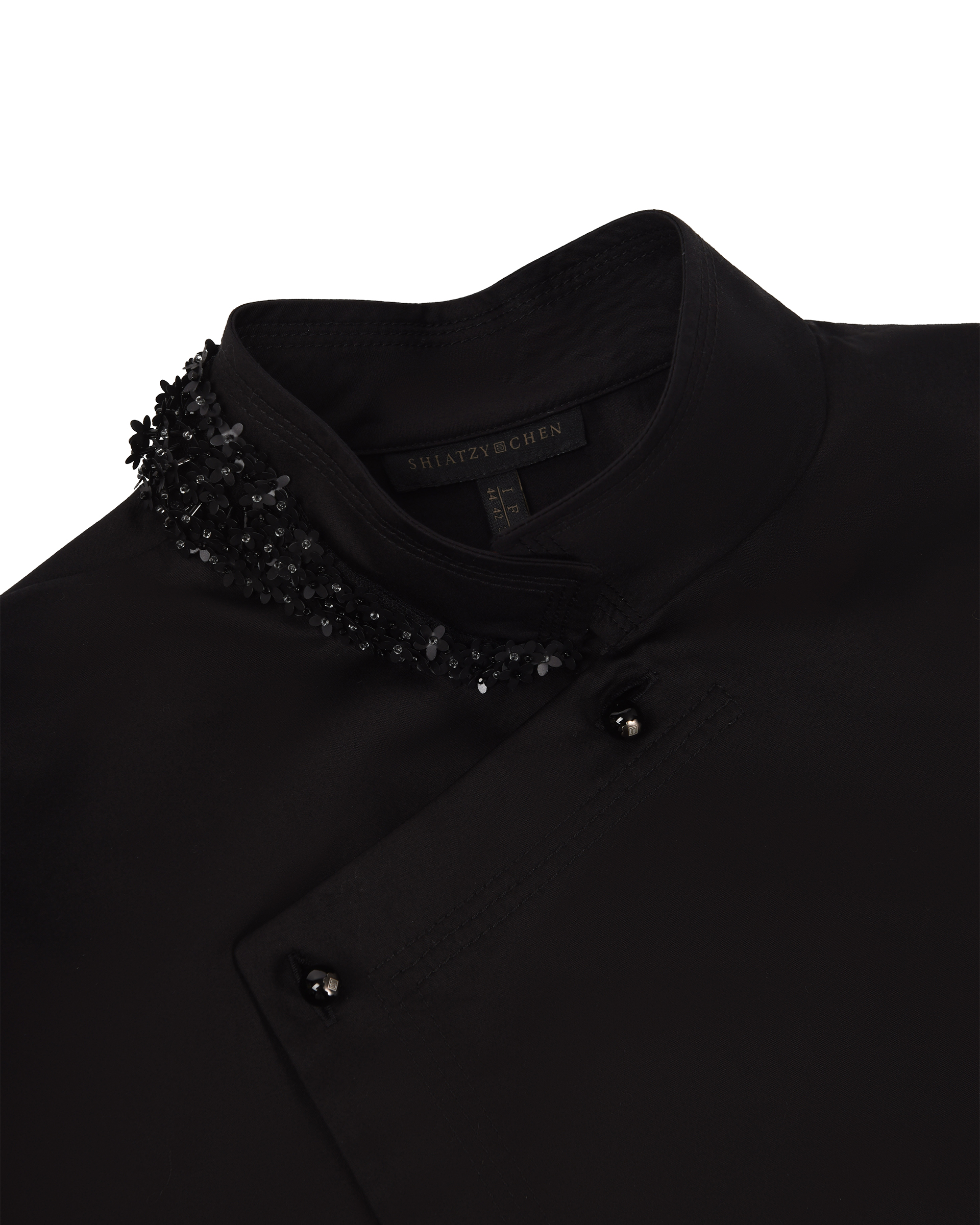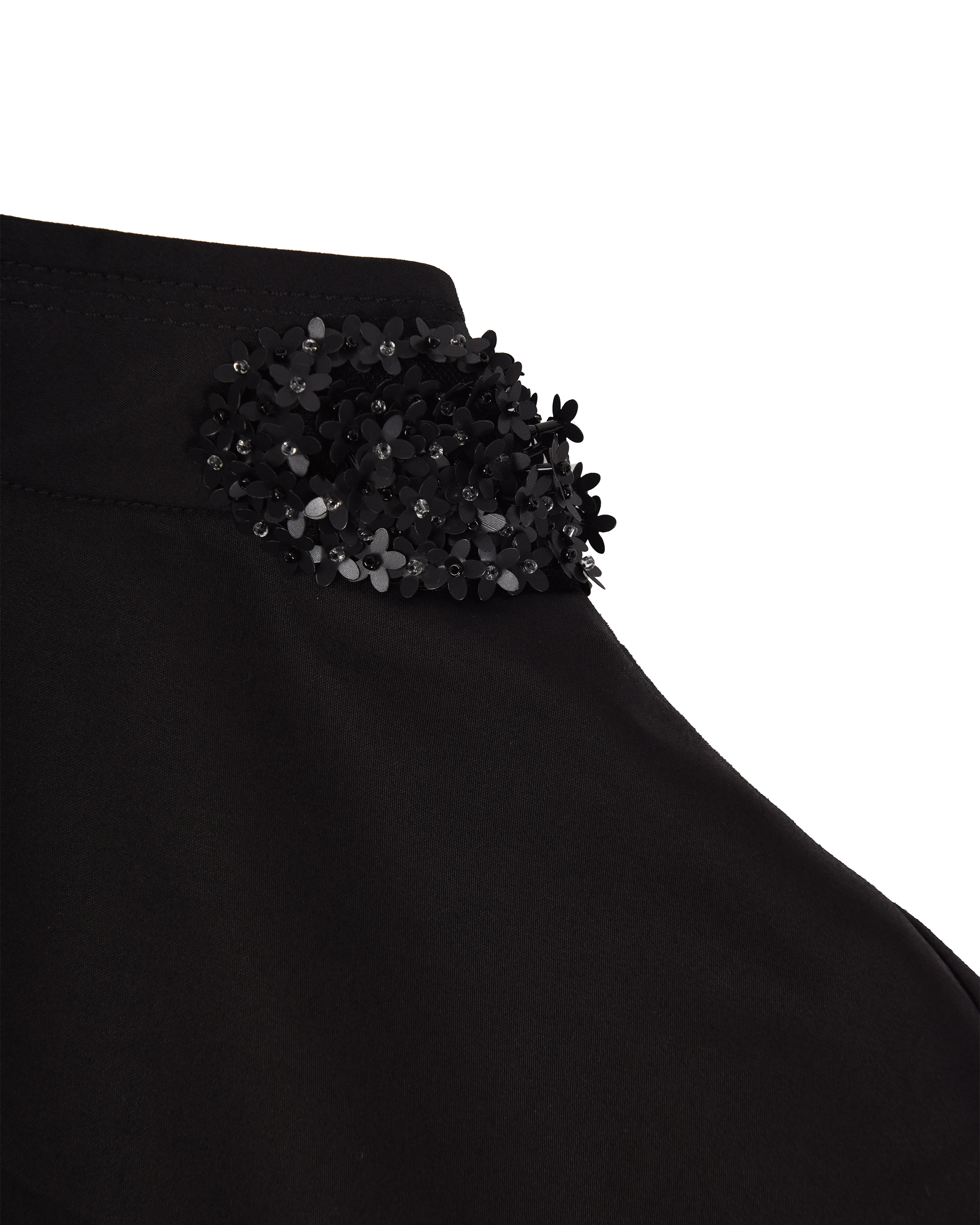 This piece features a single-sided, layered sequin bead strand as a focal point, while its three-dimensional cut hugs the body for a comfortable fit.