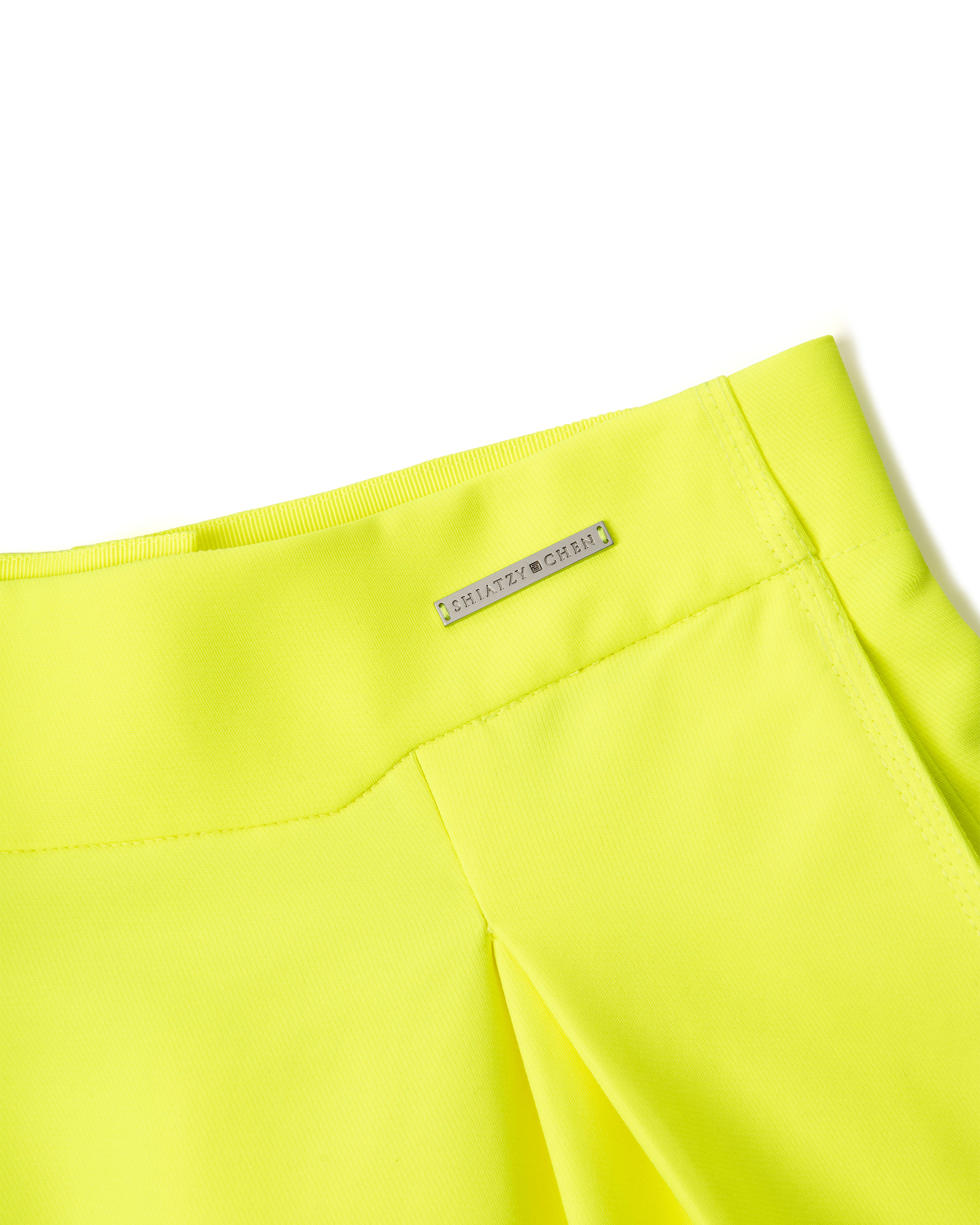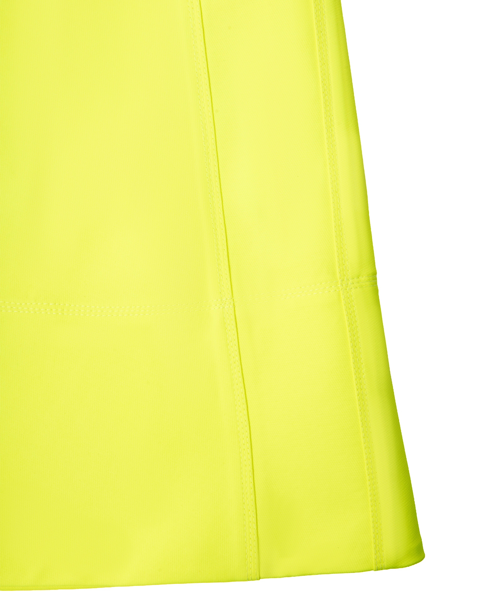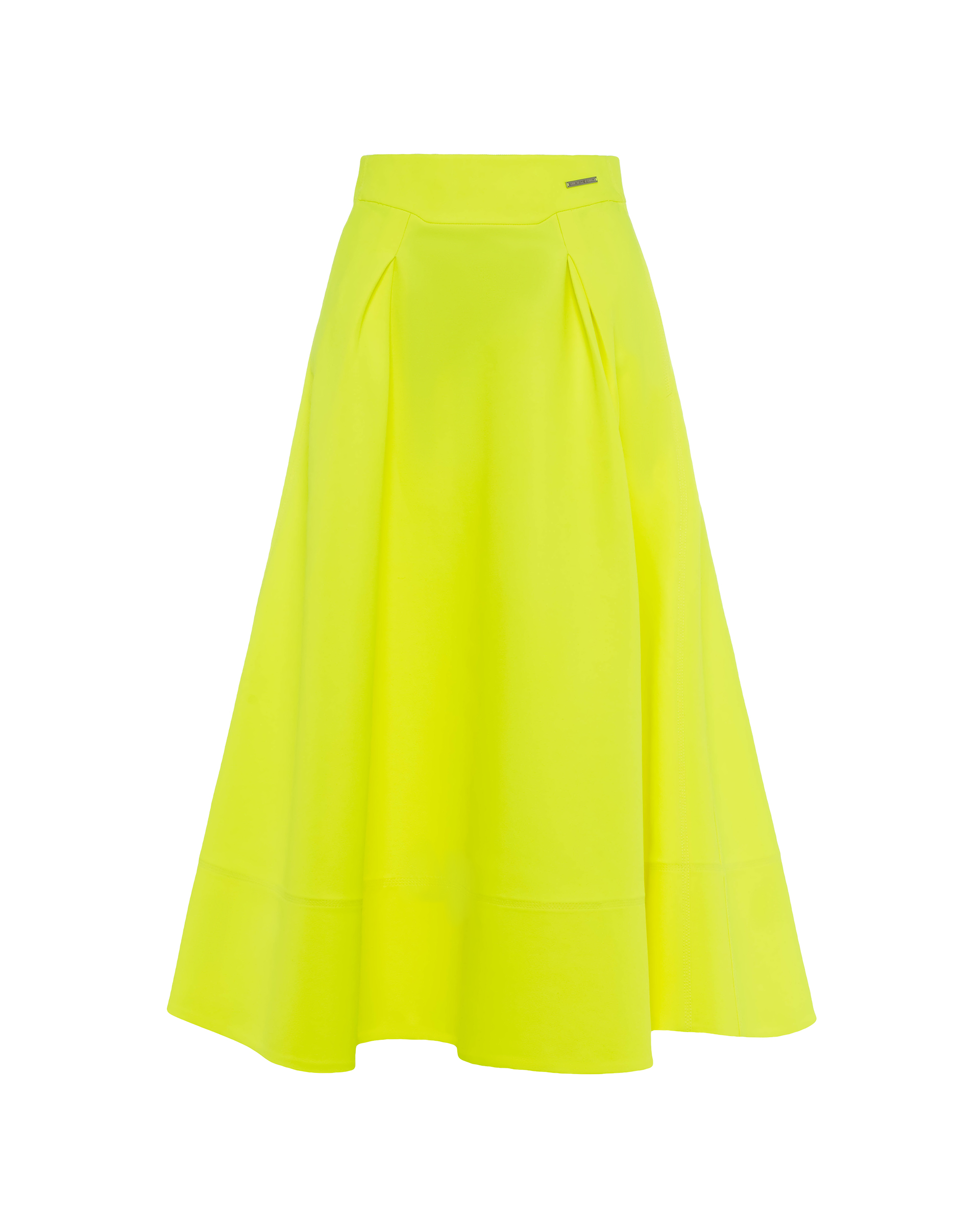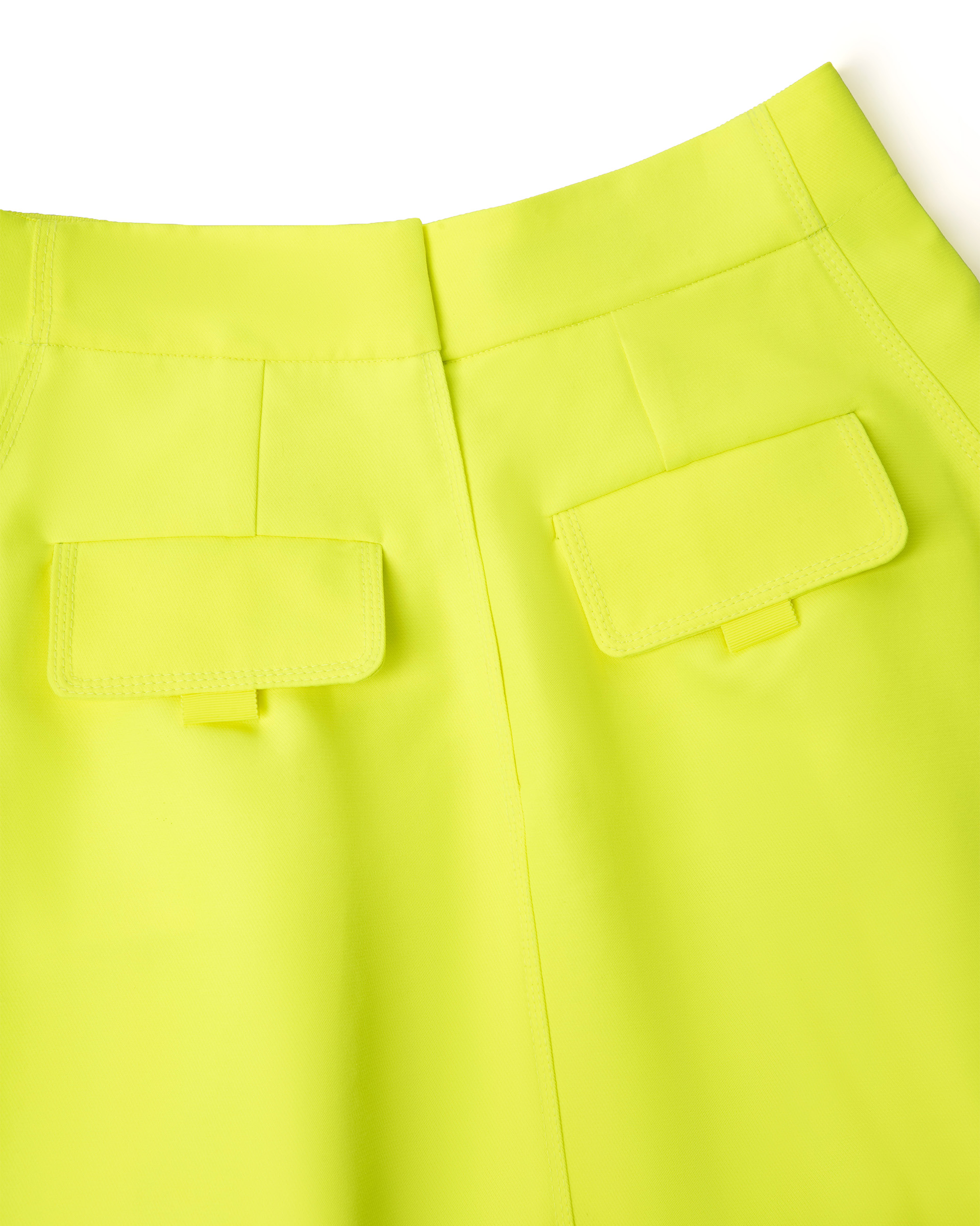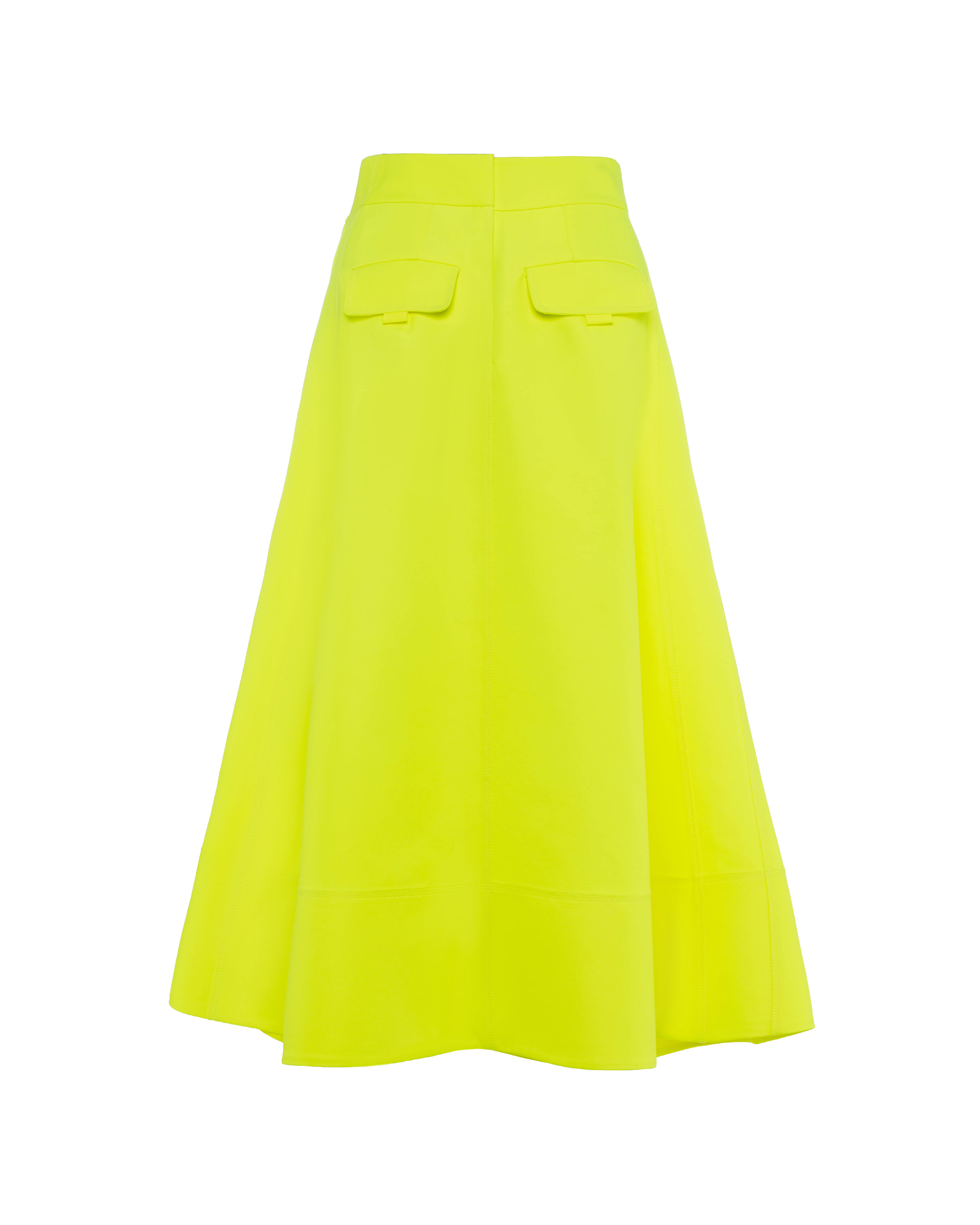 Made from cotton-blend fabric with a crisp, structured feel. The A-line silhouette and three-dimensional pockets subtly enhance the hip line, beautifully accentuating the figure.
