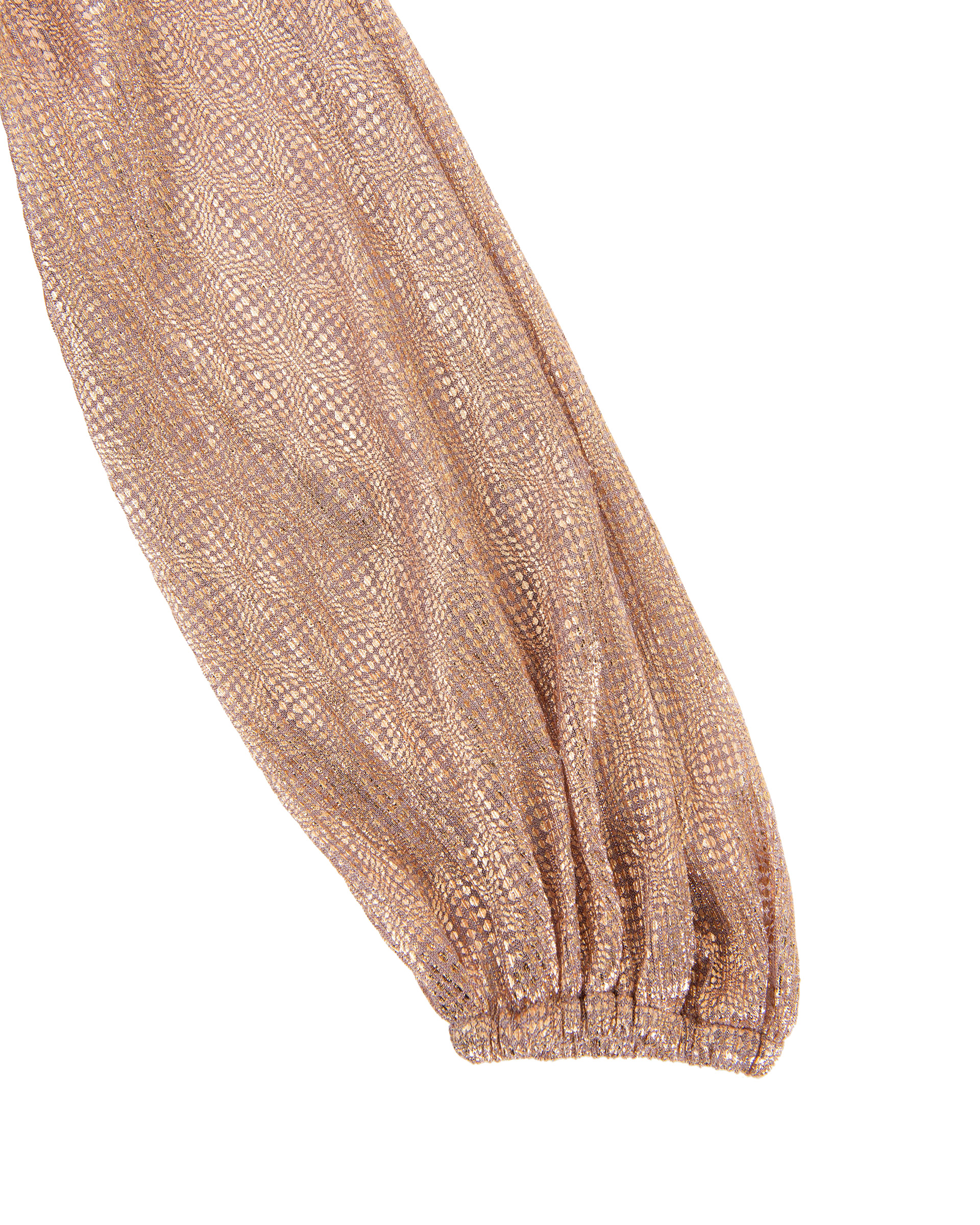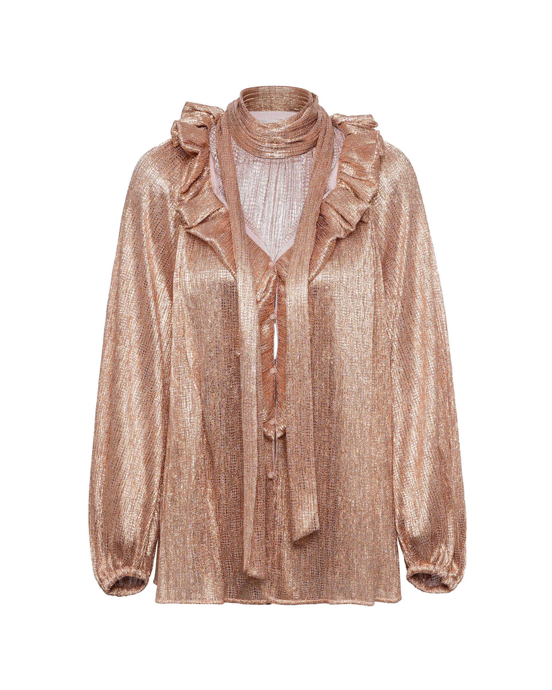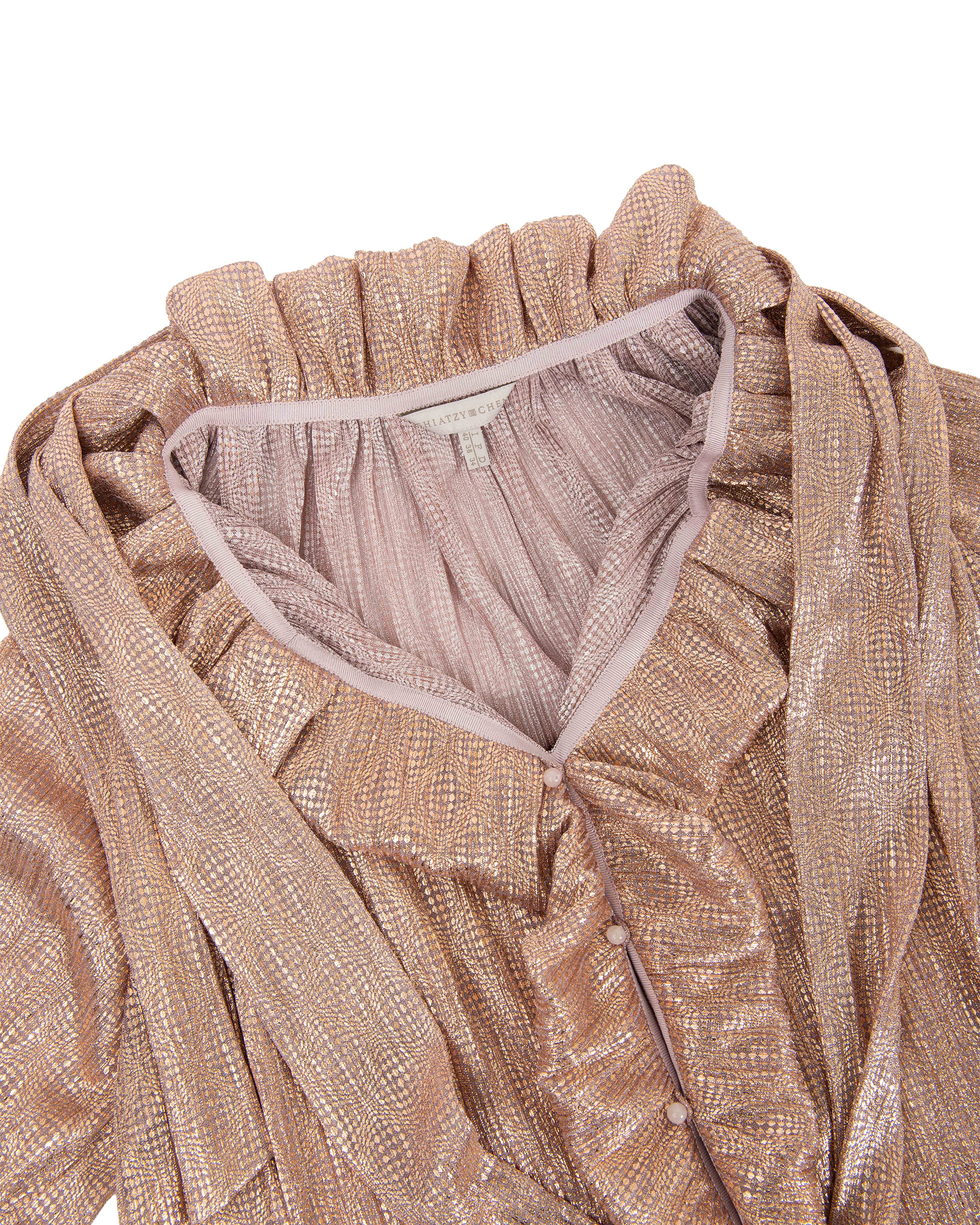 Lustrous sequined fabric with a ribbon design, capturing the elegant composure of the modern urban woman.