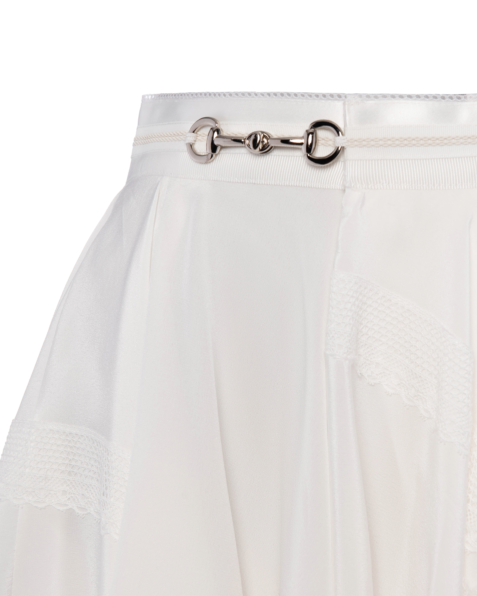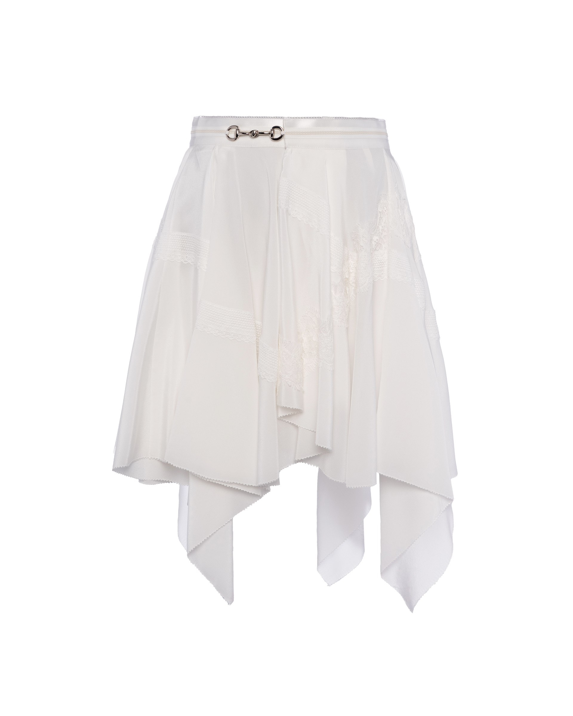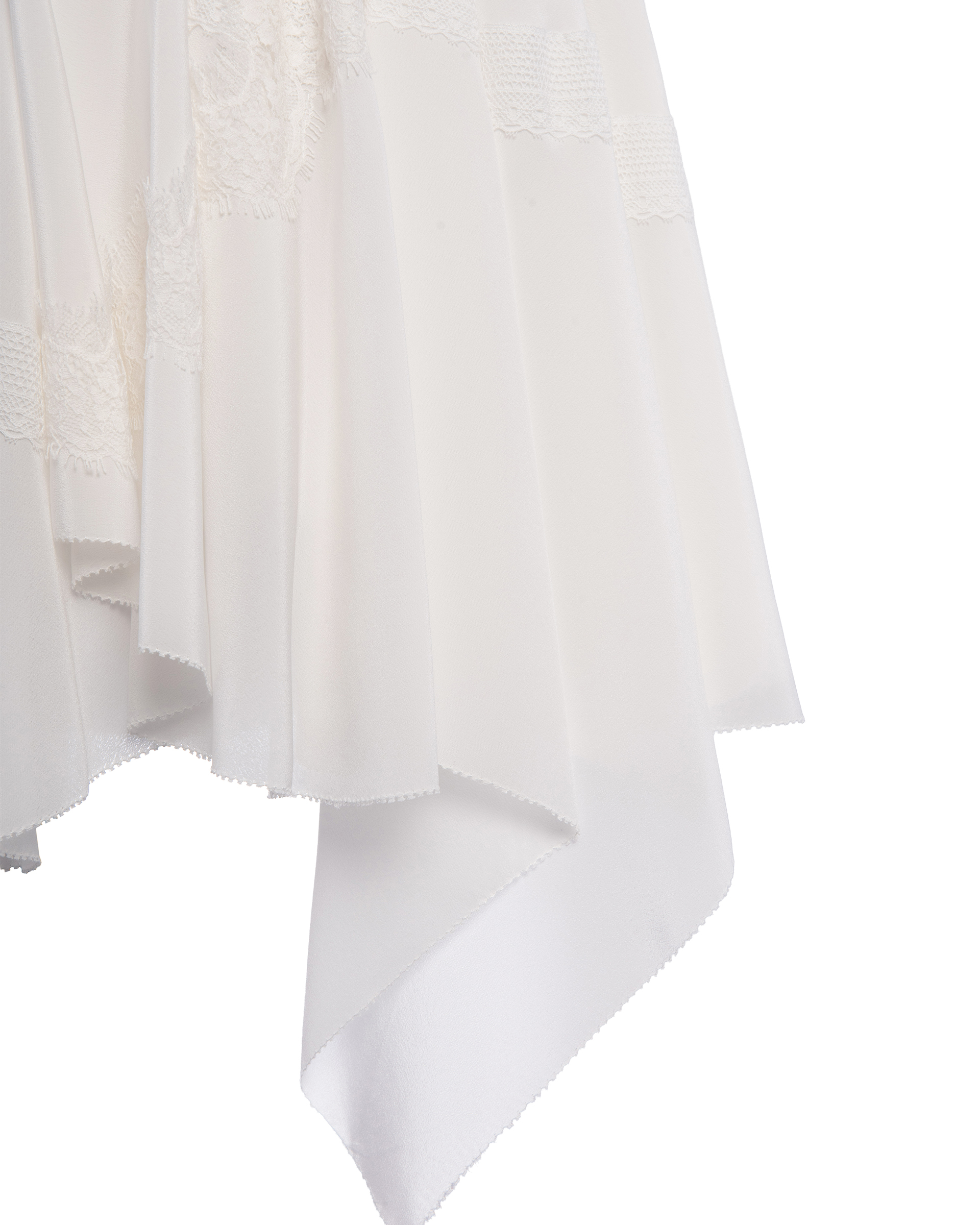 Lace ribbon outlines a bandana silhouette, with a wavy hem for a lively touch. Silk-like thick organza trim at the hem with eyelet edging for a refined, layered look.