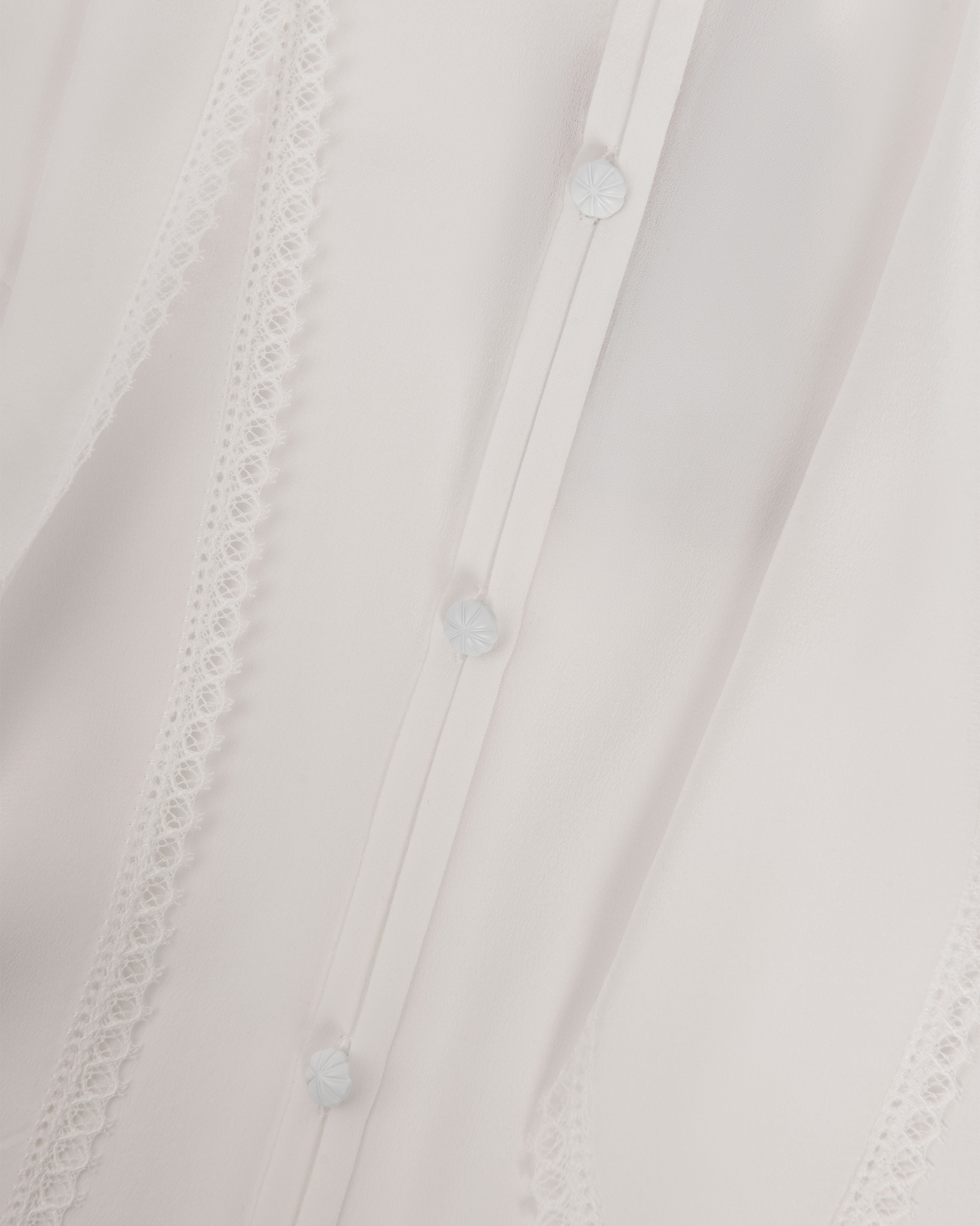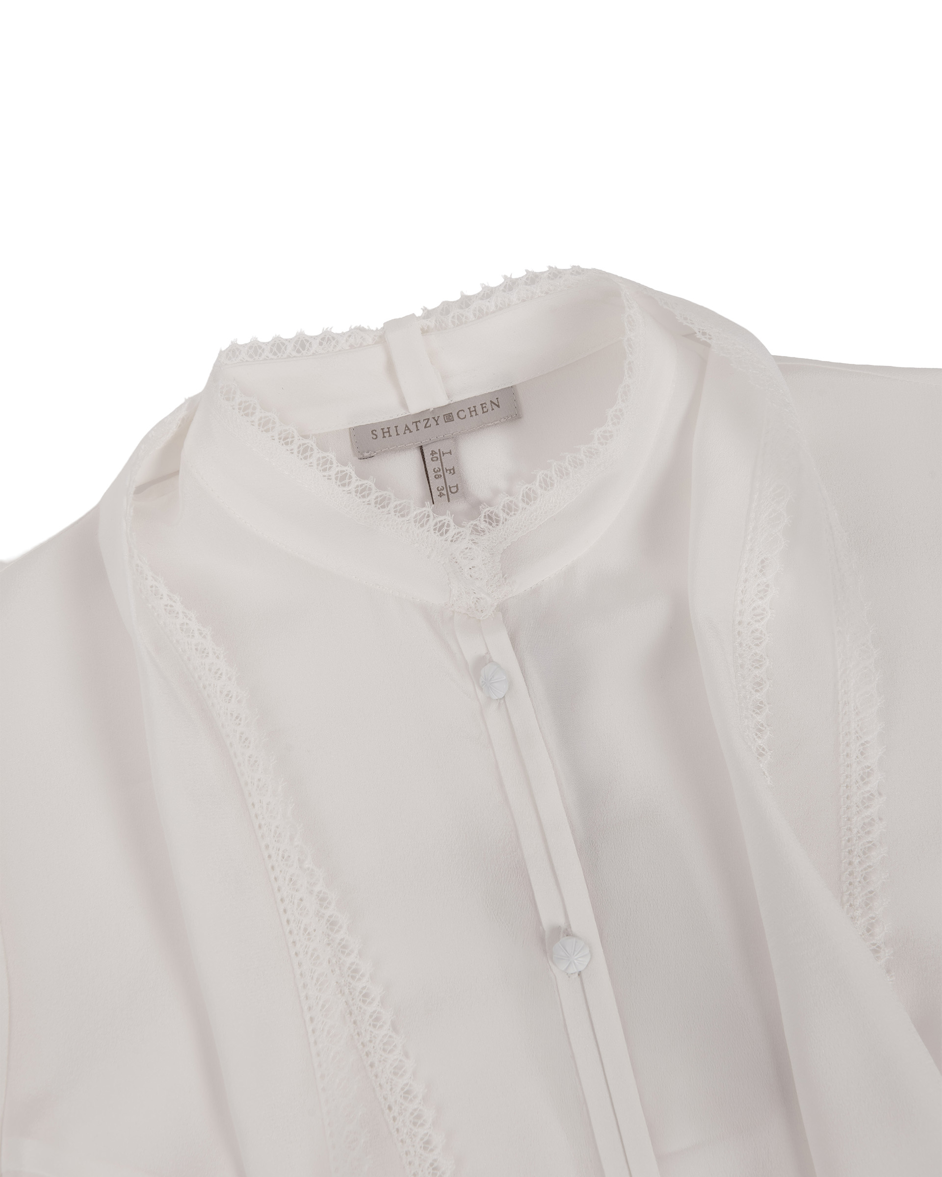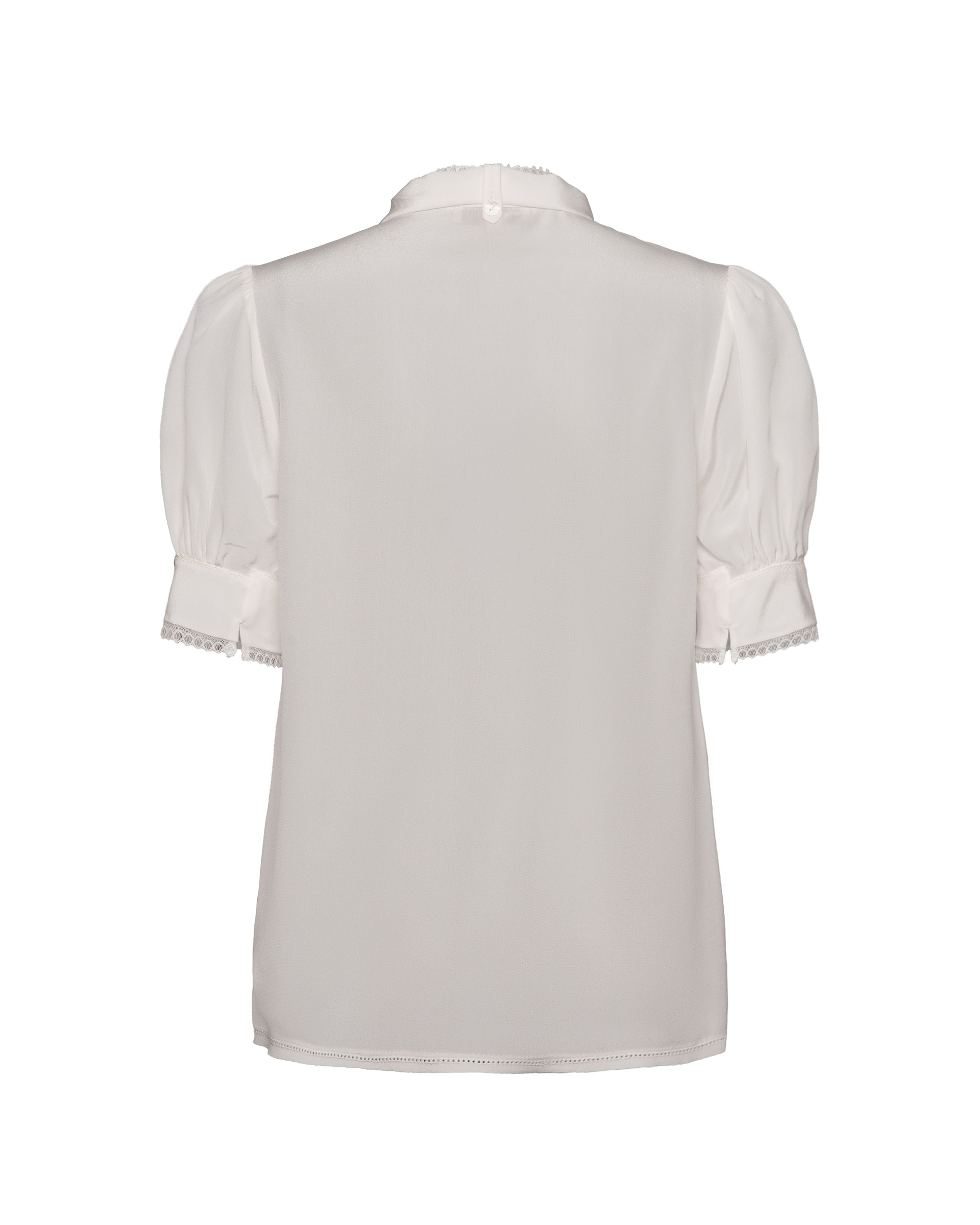 Crafted from 100% mulberry silk. Subtle puff sleeves softly define the shoulders, while cascading ties drape like a silk scarf—effortlessly blending elegance with a crisp, polished edge.