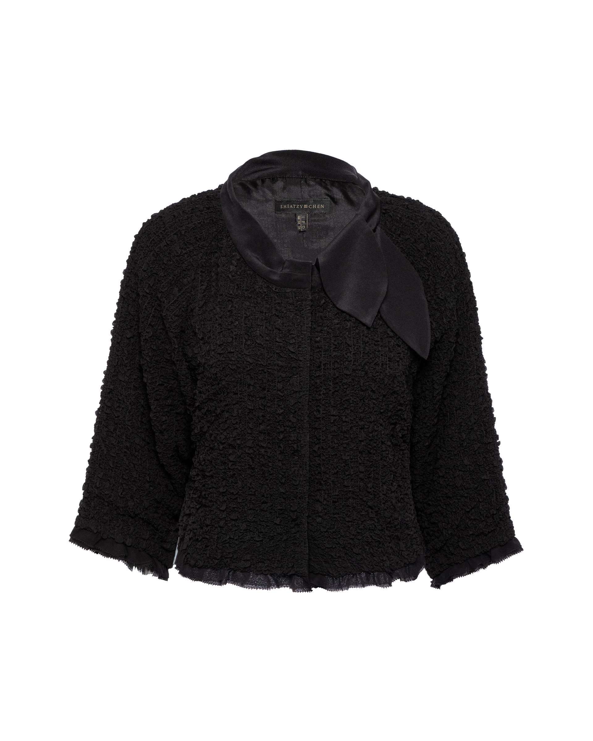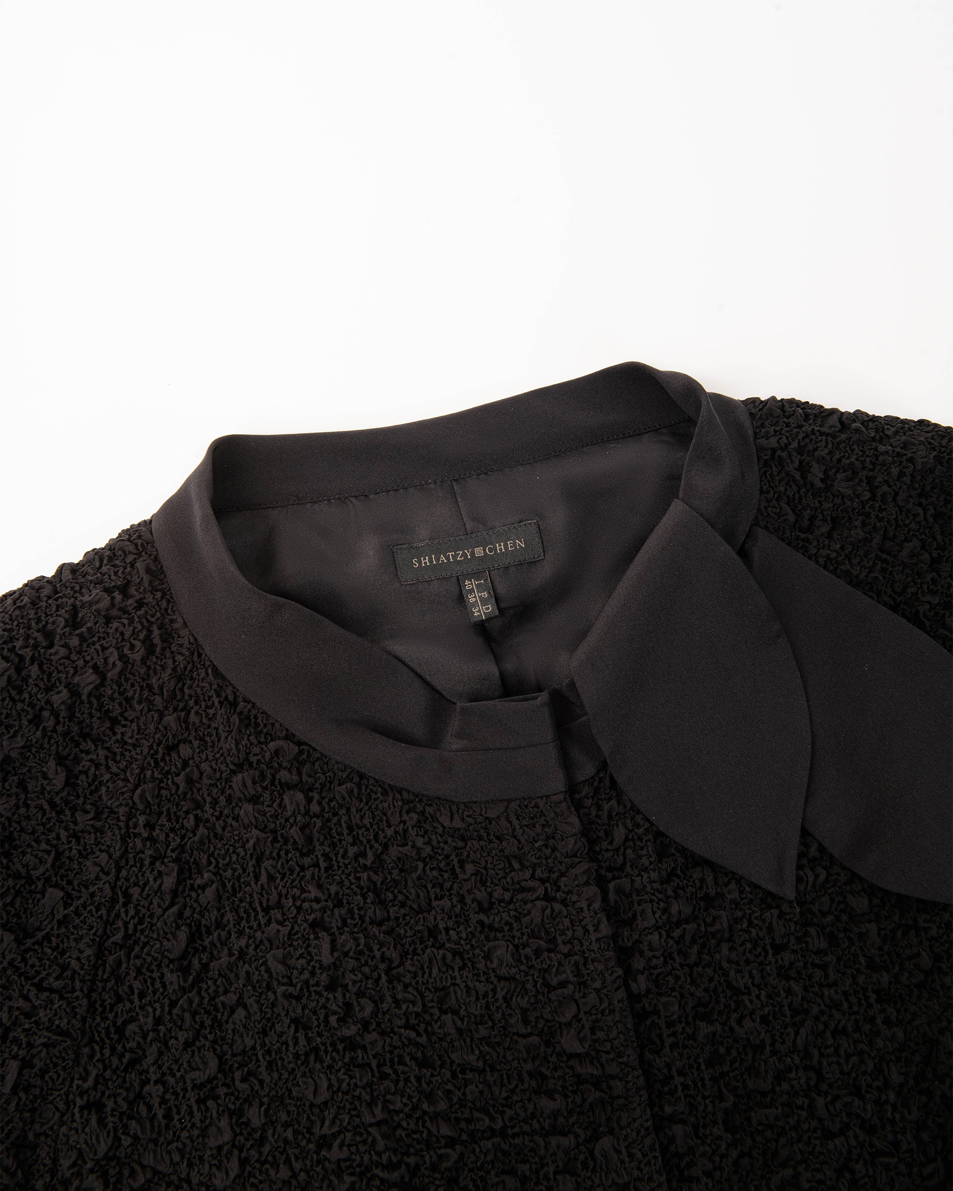 Crafted from 97% silk elastic georgette with a subtle stretch and textured feel—soft, breathable, and easy to care for. A scarf-style bow at the side of the neckline adds a touch of relaxed elegance.