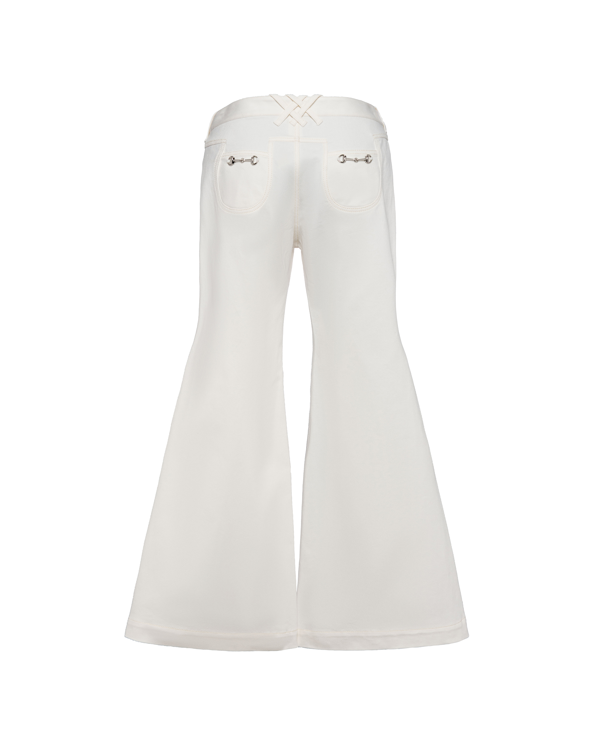 The flared silhouette creates a flowing, graceful arc as you walk, visually elongating the legs. The overall look is both vintage and modern — a stylish piece that balances design with everyday wearability.